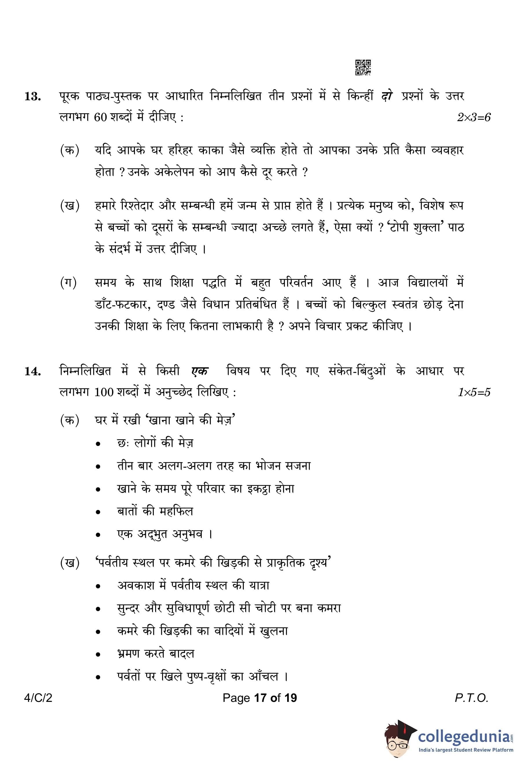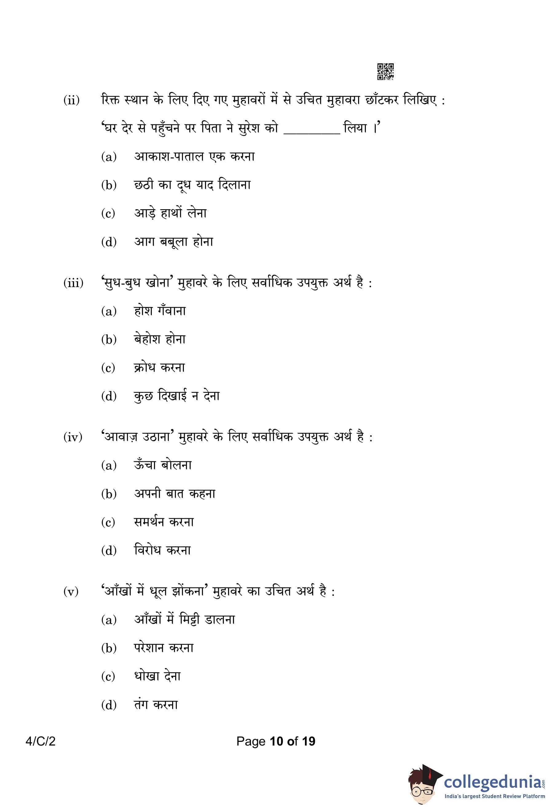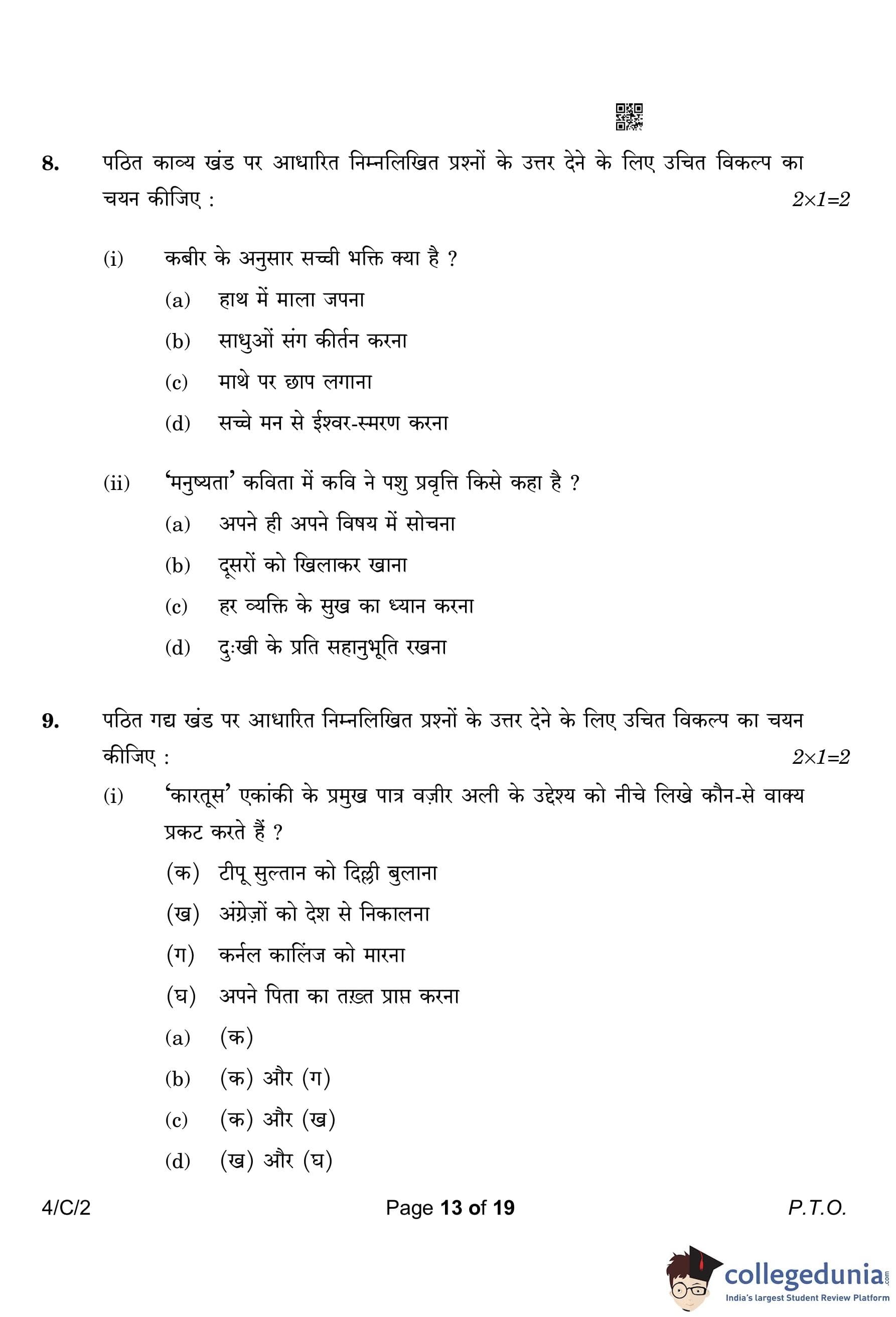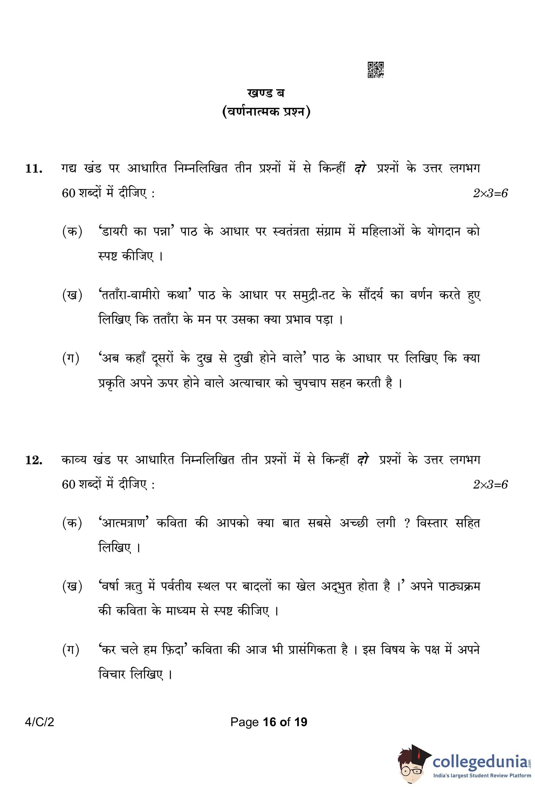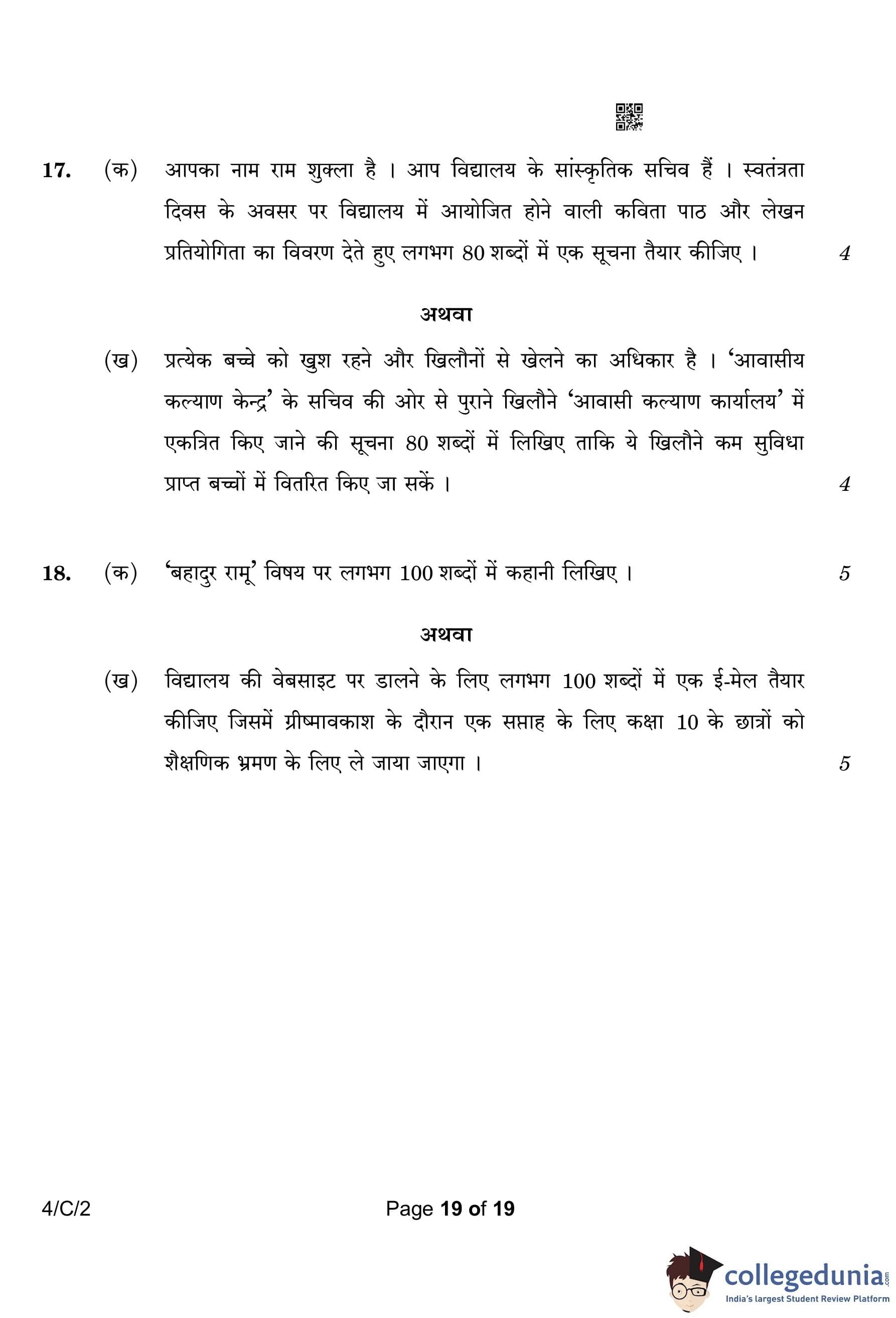 CBSE Class 10 Hindi B (Set 2- 4/C/2) Compartment Question Paper 2023 with Answer Key