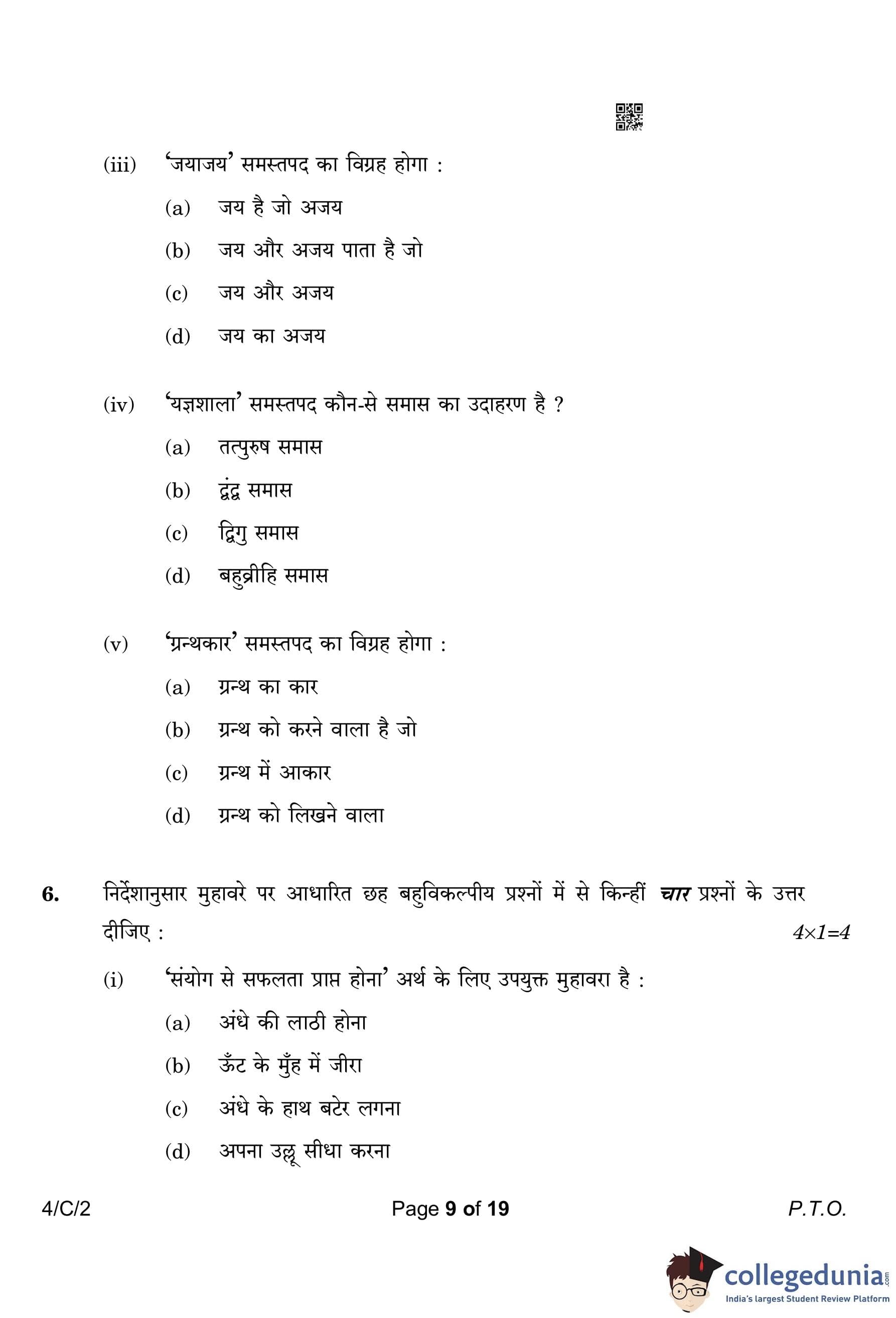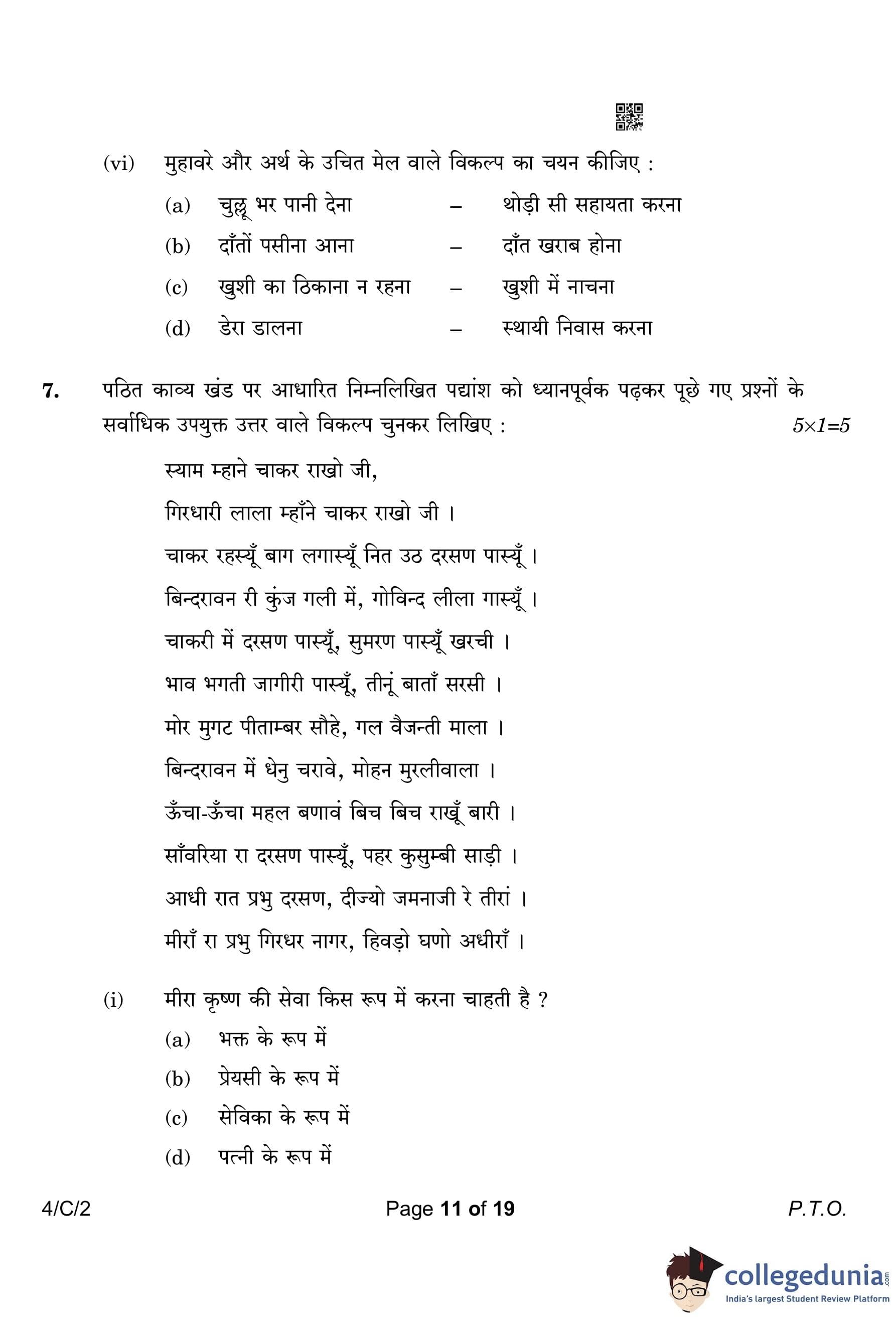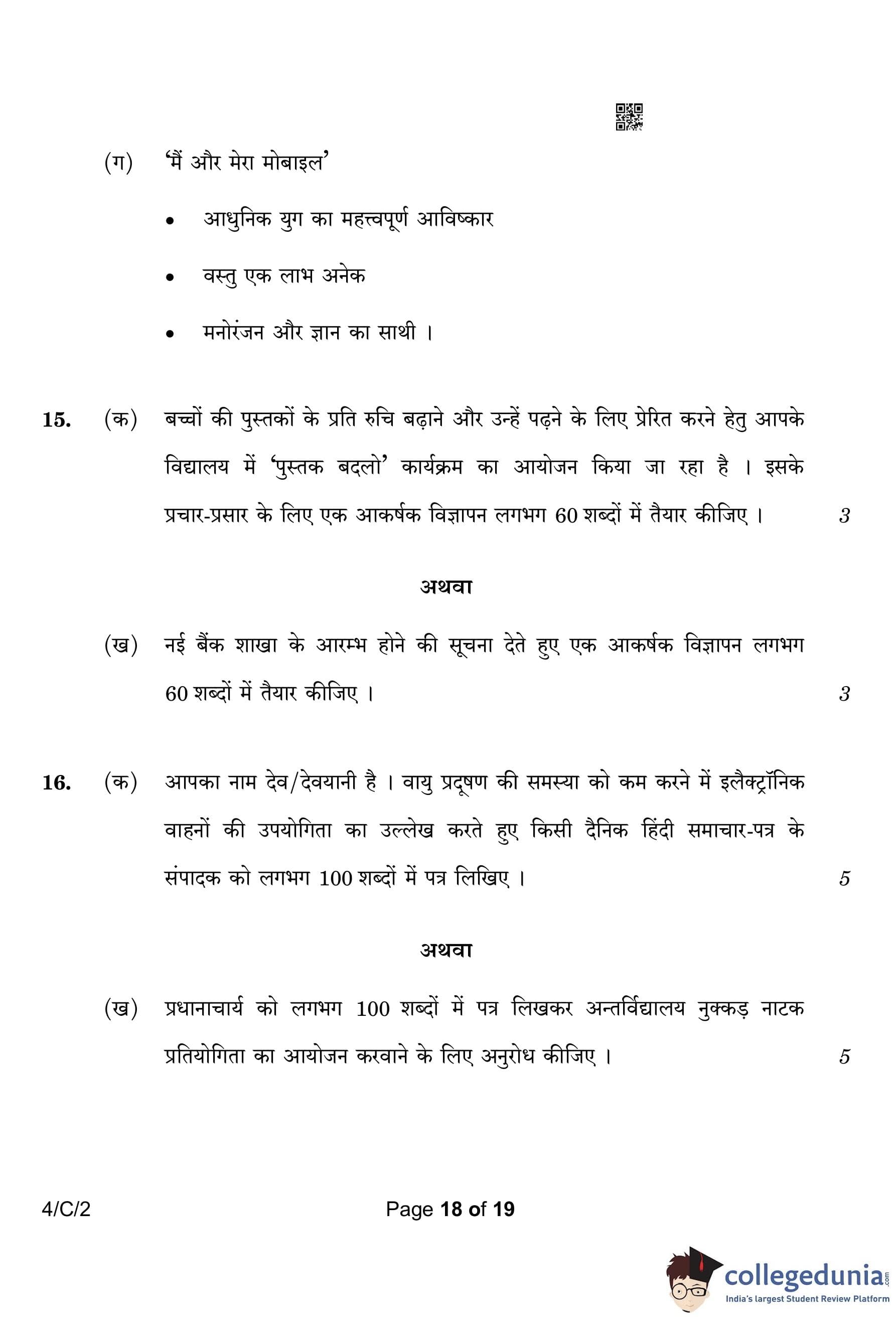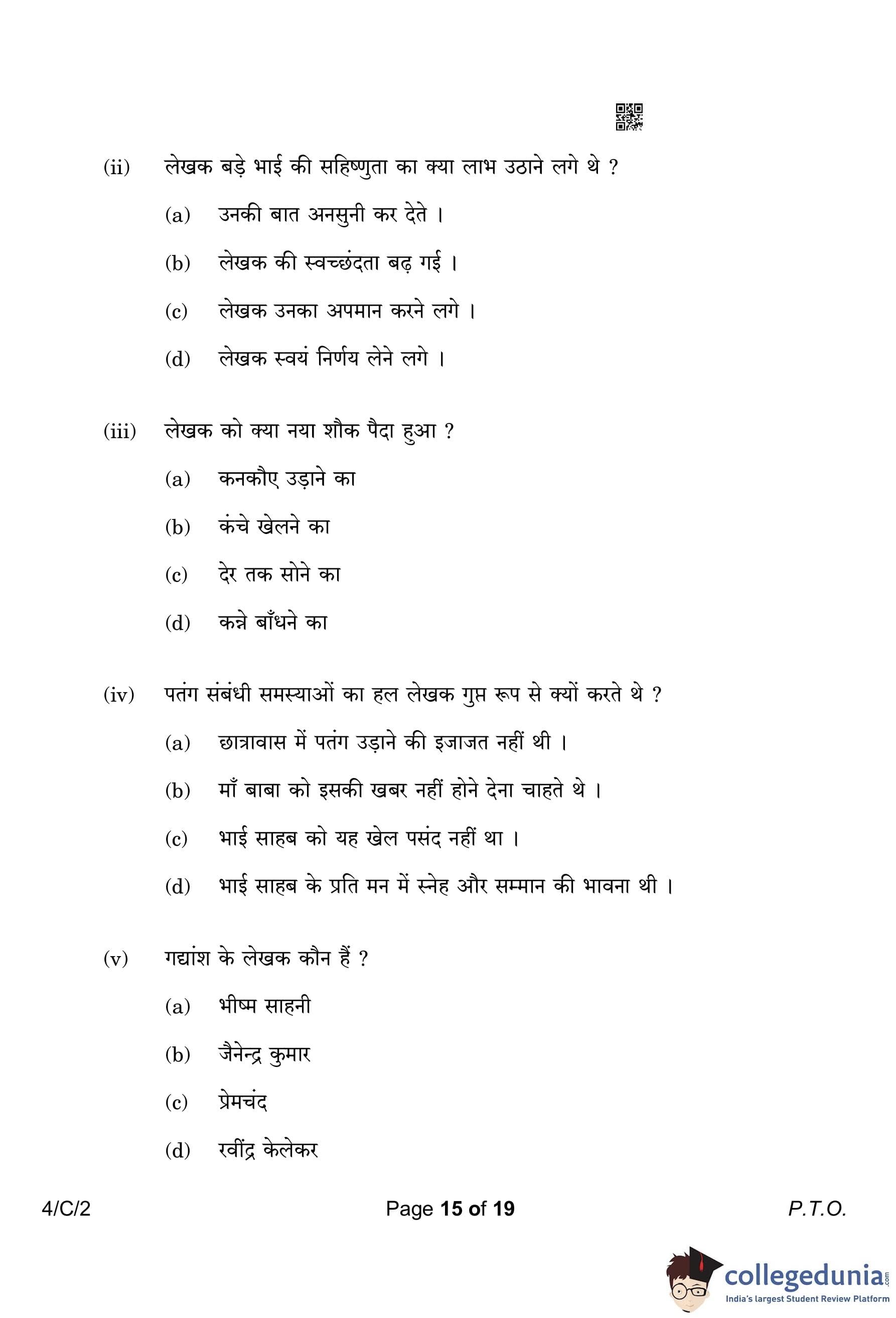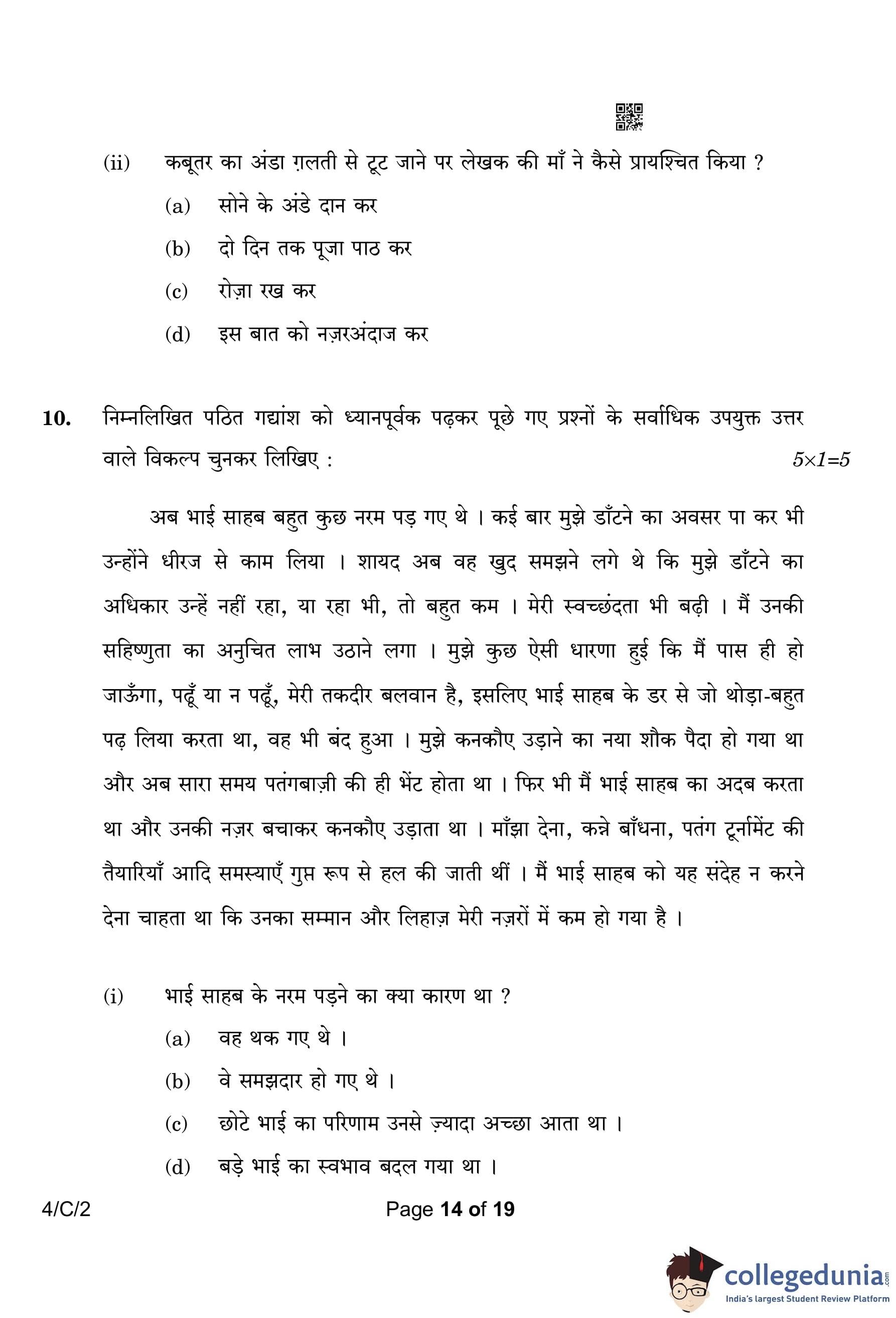 CBSE Class 10 Hindi B (Set 2- 4/C/2) Compartment Question Paper 2023 with Answer Key