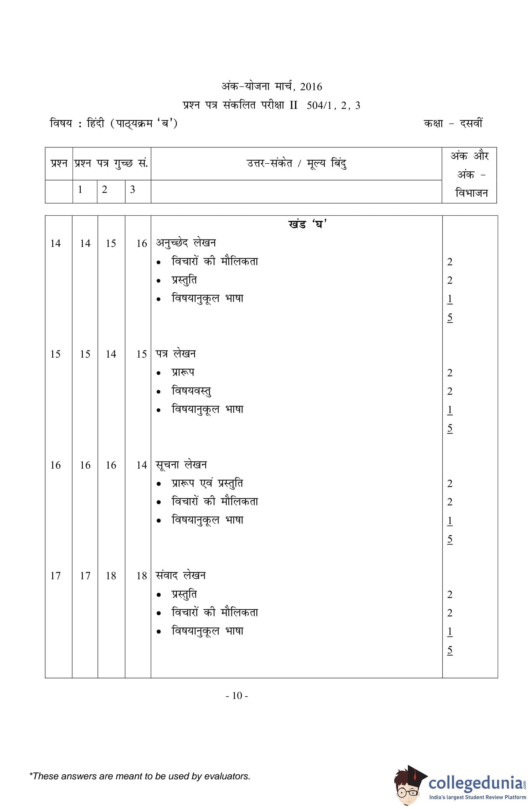 | CBSE Class 10 Hindi B Question Paper 2016 PDF | CBSE Class 10 Hindi B Answer Key 2016 PDF | Detailed Solutions |