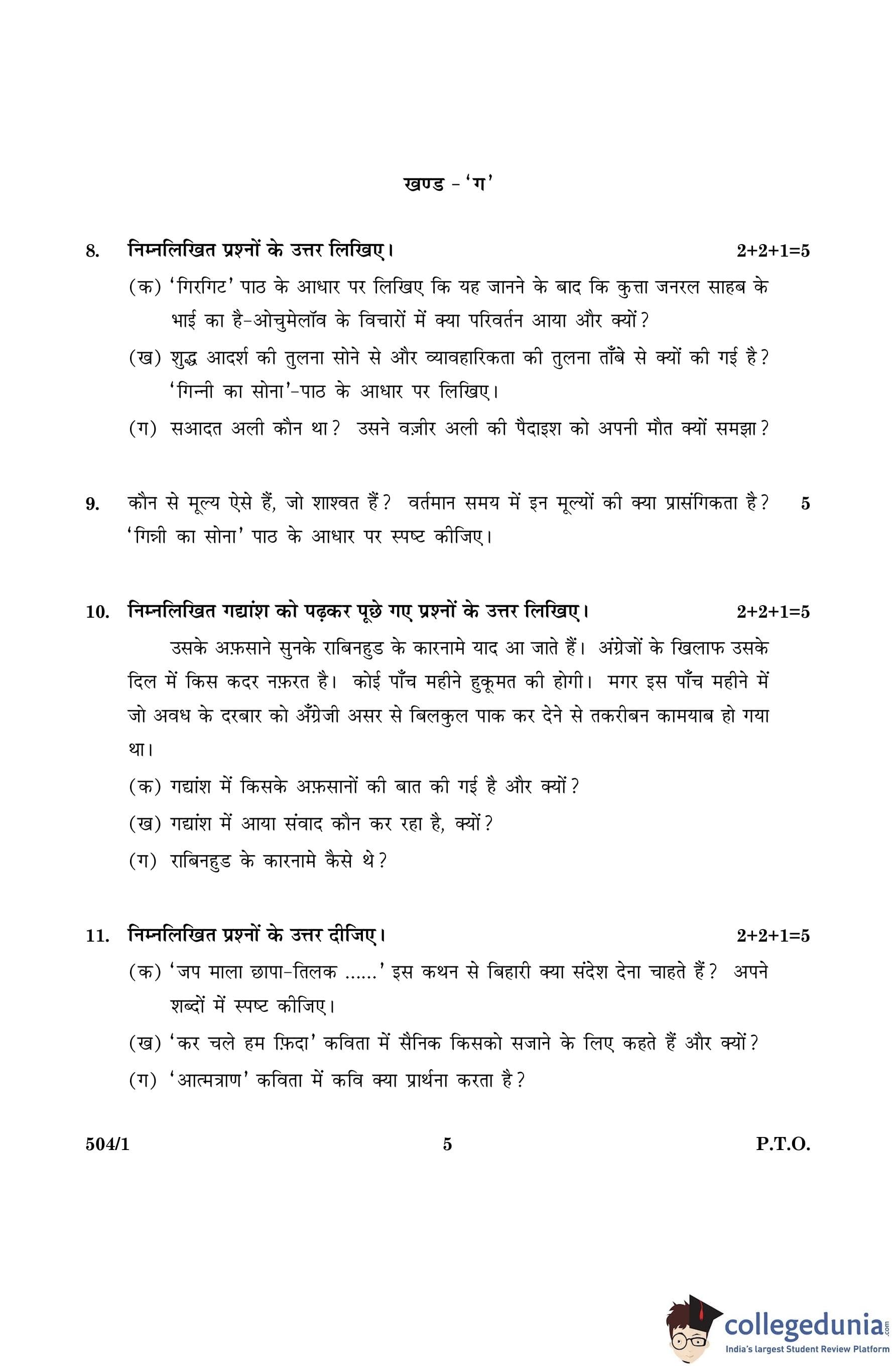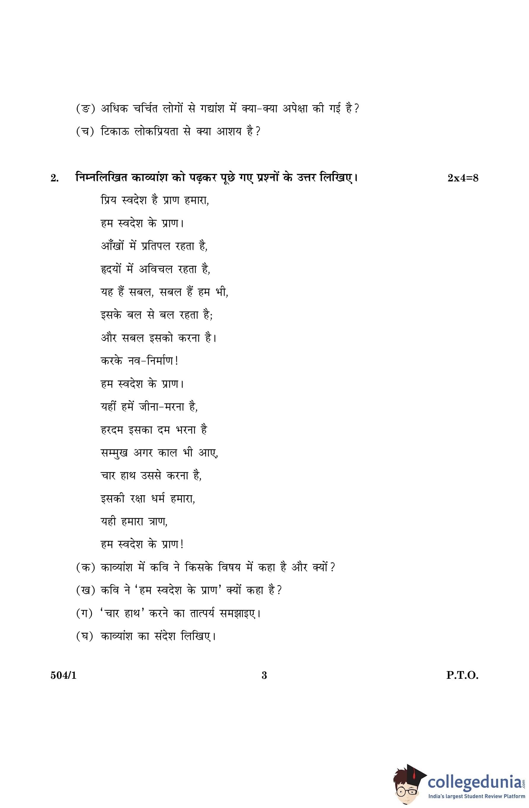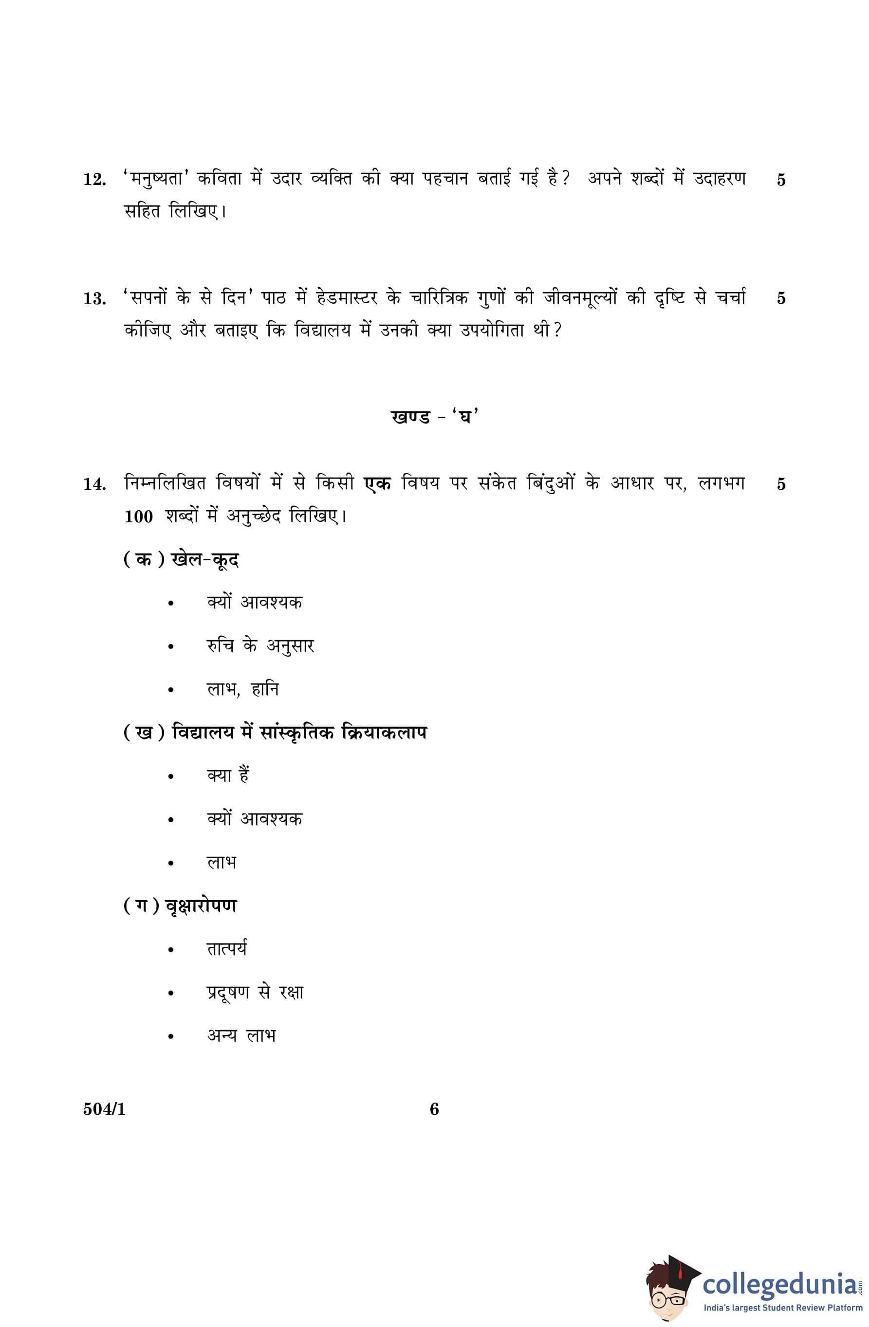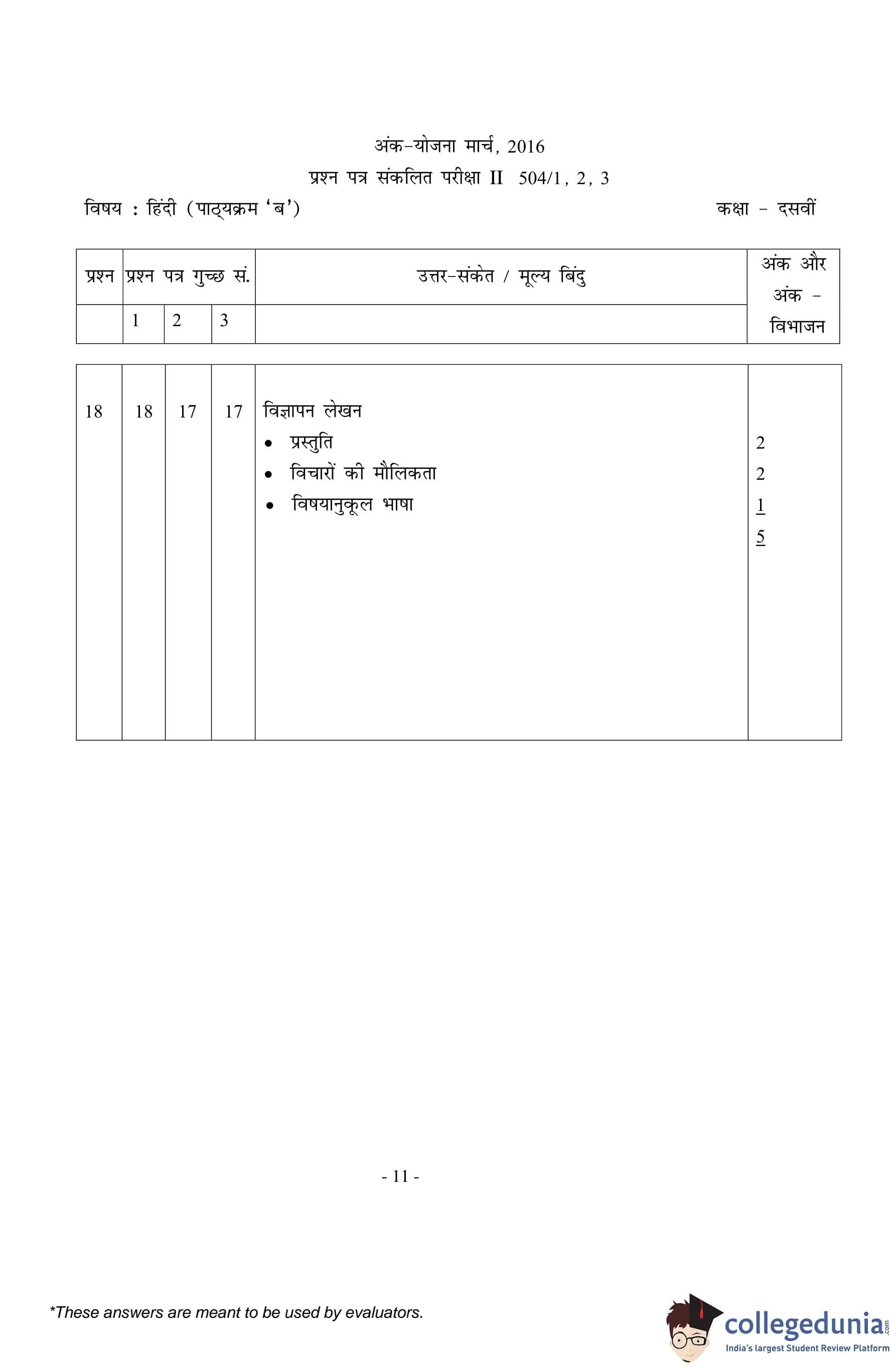 CBSE Class 10 Hindi B Set 1- 504/1 Question Paper 2016 with Answer Key (March 8)