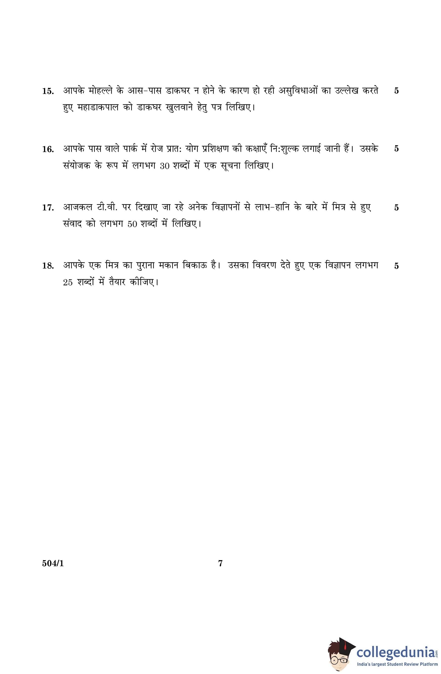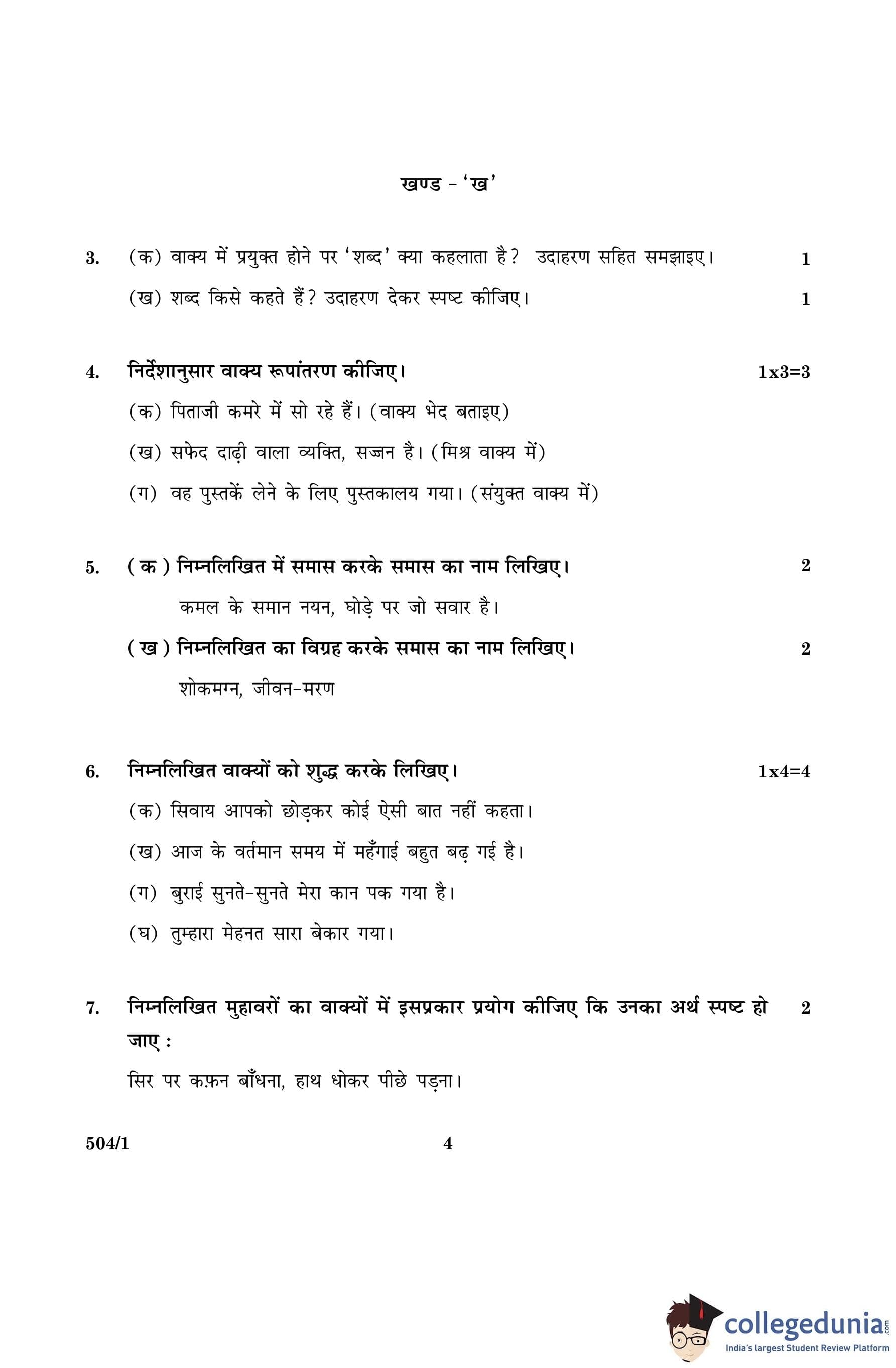 CBSE Class 10 Hindi B Question Paper 2016 with Answer Key Set 1- 504/1 is available for download. The exam was conducted by the Central Board of Secondary Education on March 8, 2016 in the Morning Session 10:30 AM to 1:30 PM. The medium of paper was Hindi. The question paper comprised a total of 18 questions divided among 4 sections.