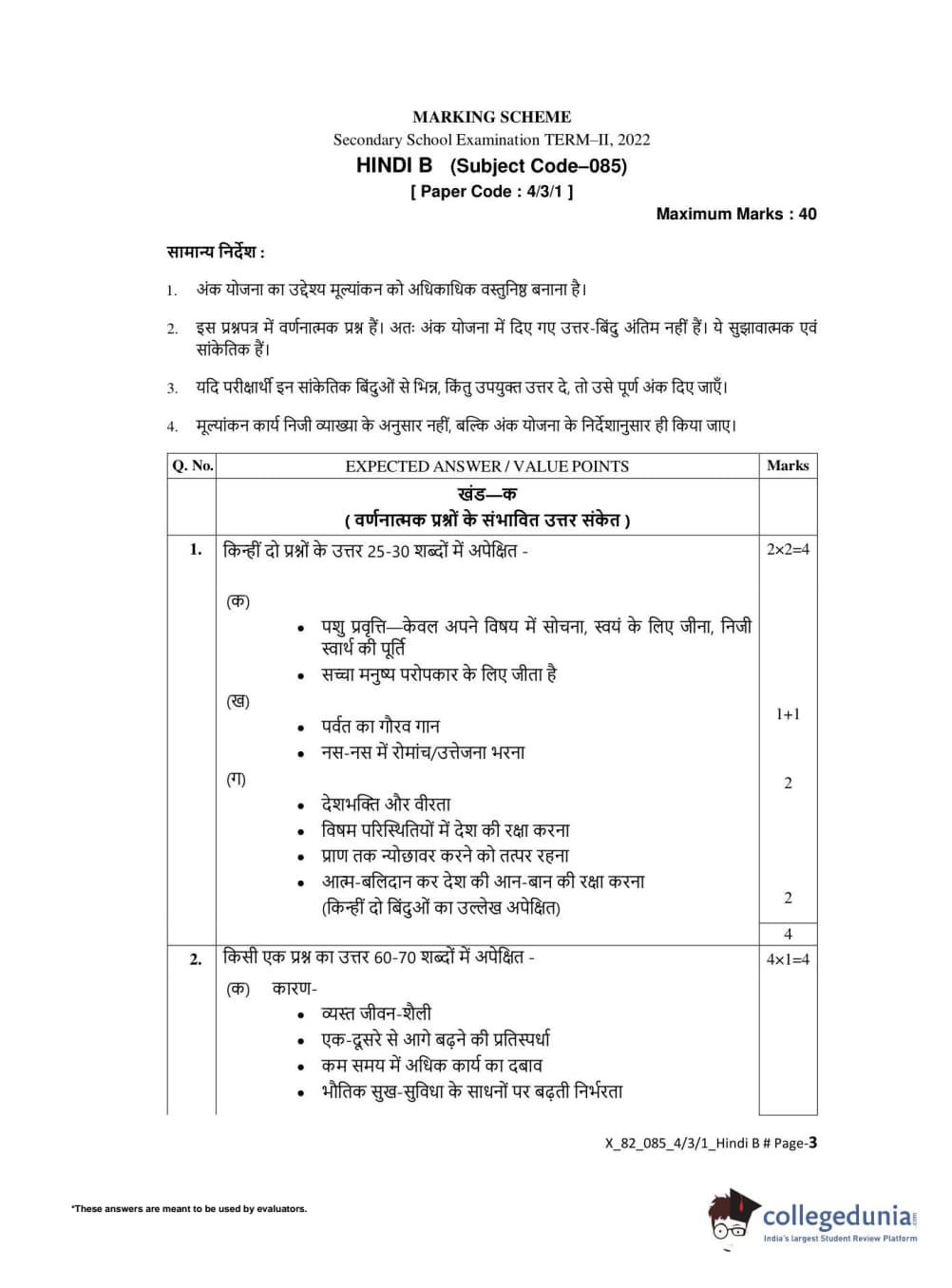 | CBSE Class 10 Hindi B Question Paper 2022 PDF | CBSE Class 10 Hindi B Answer Key 2022 PDF | Detailed Solutions |