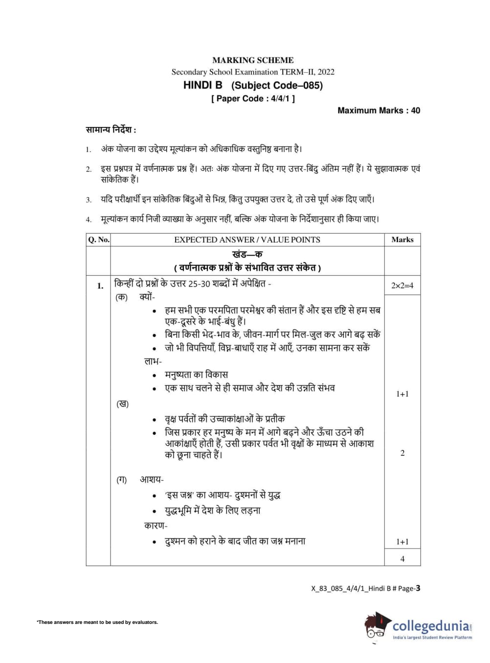 | CBSE Class 10 Hindi B Question Paper 2022 PDF | CBSE Class 10 Hindi B Answer Key 2022 PDF | Detailed Solutions |