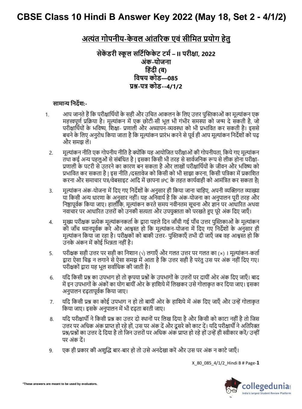 CBSE Class 10 Hindi B Set 2 - 4/1/2 Question Paper 2022 with Answer Key (May 18)