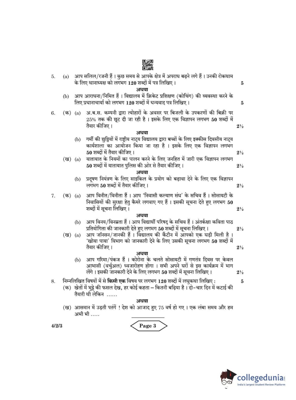 CBSE Class 10 Hindi B Question Paper 2022 with Answer Key Set 3 - 4/2/3 is available for download. The exam was conducted by the Central Board of Secondary Education on May 18, 2022 in the Morning Session 10:30 AM to 12:30 PM. The medium of paper was Hindi. The question paper comprised a total of 8 questions divided among 2 sections.