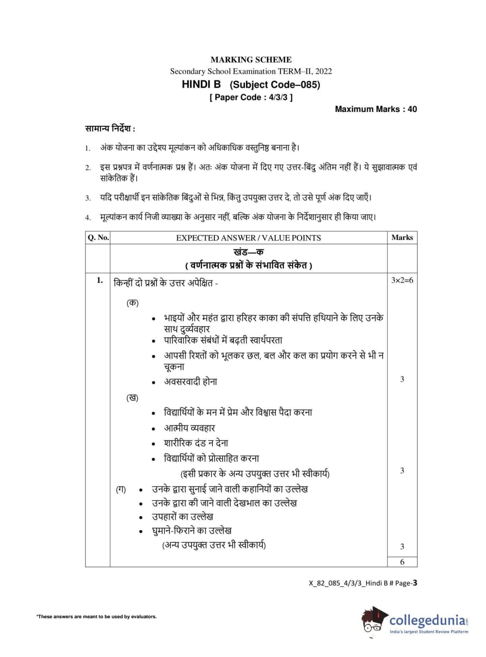 CBSE Class 10 Hindi B Set 3 - 4/3/3 Question Paper 2022 with Answer Key (May 18)