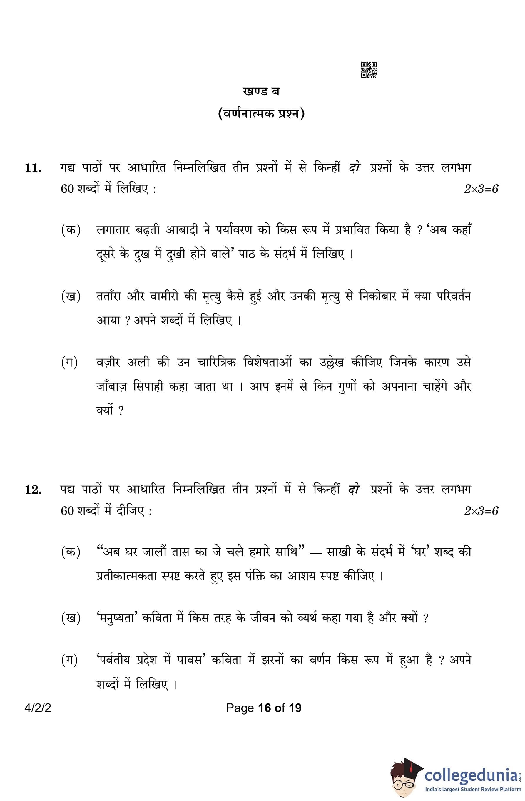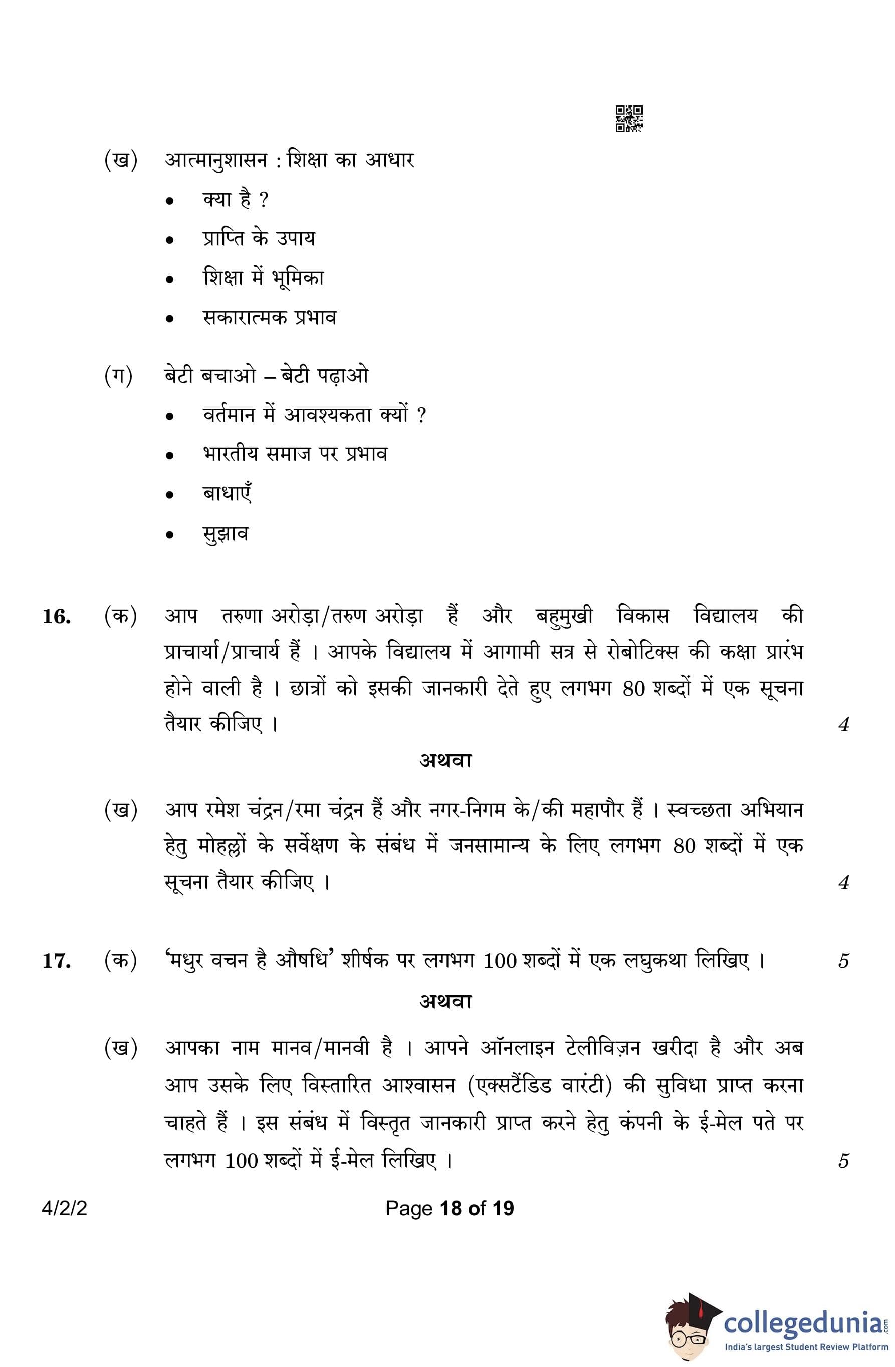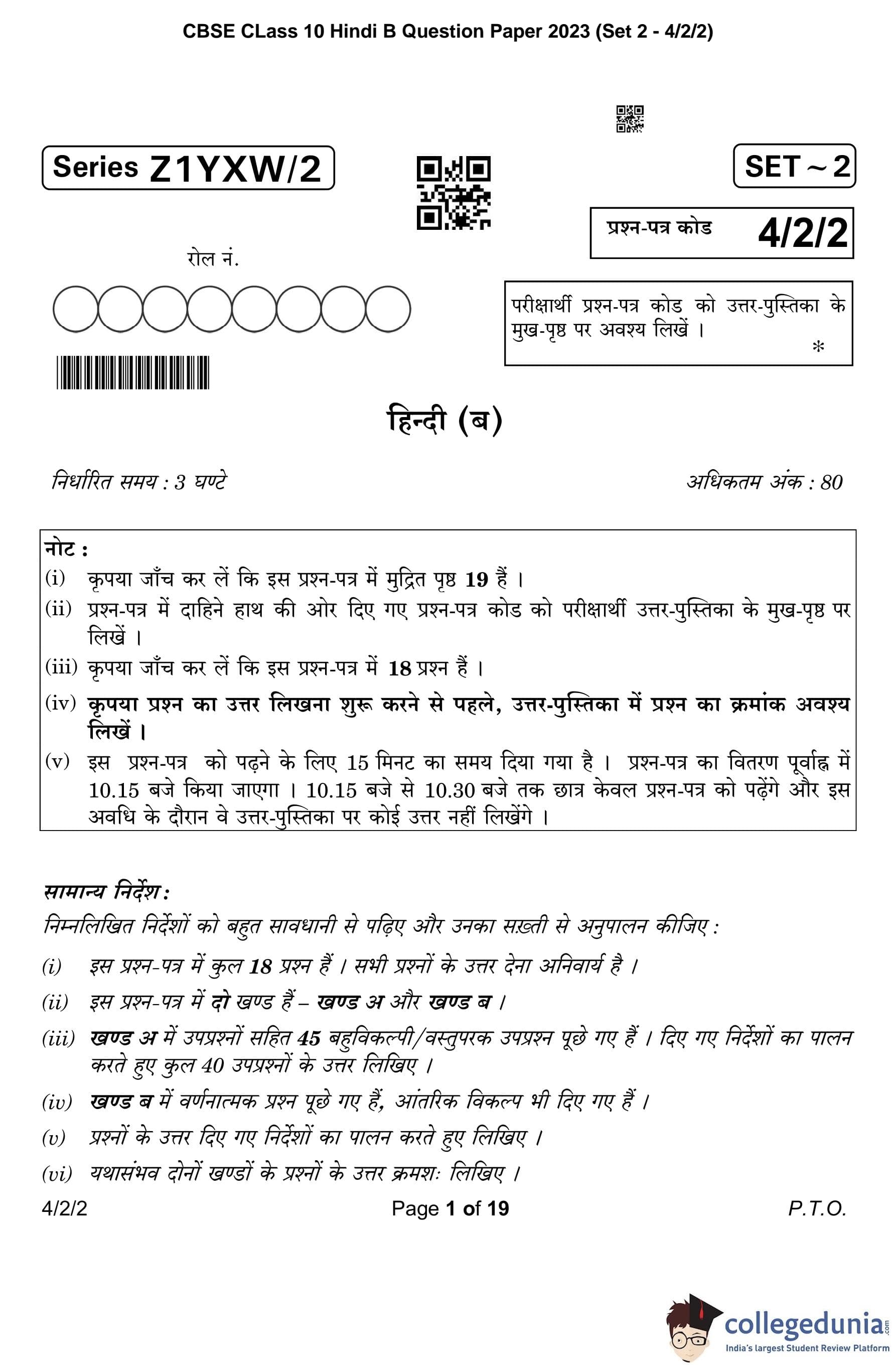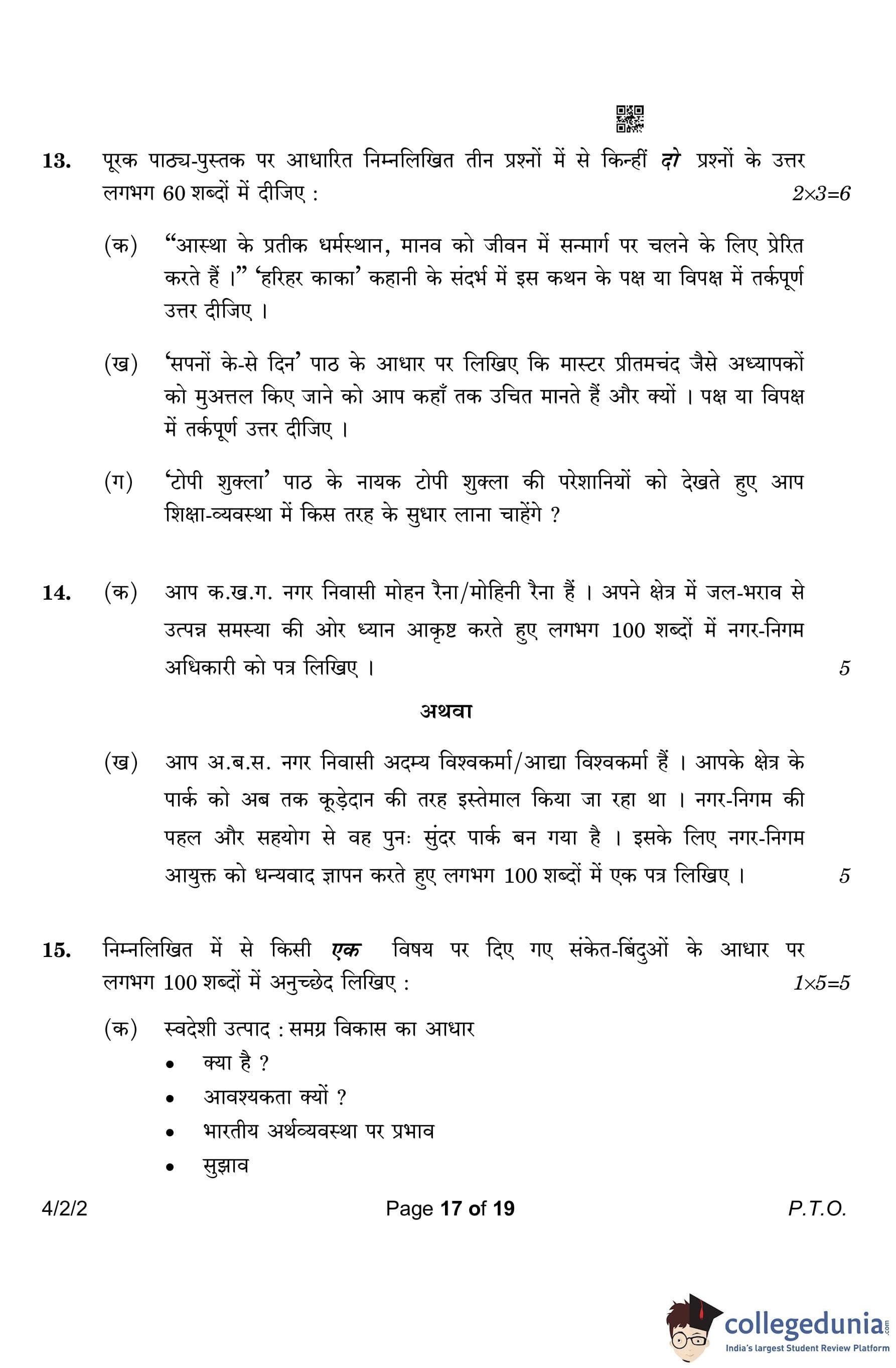 CBSE Class 10 Hindi B (Set 2- 4/2/2) Question Paper 2023 with Answer Key (March 17)