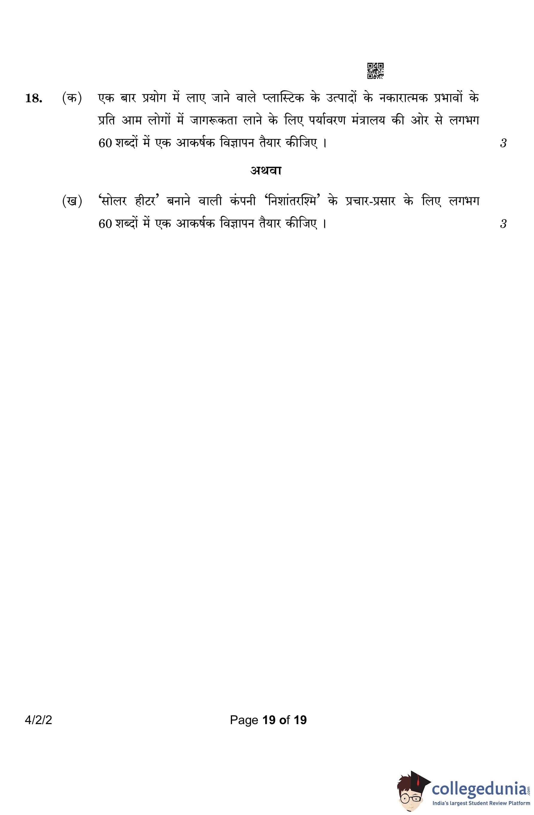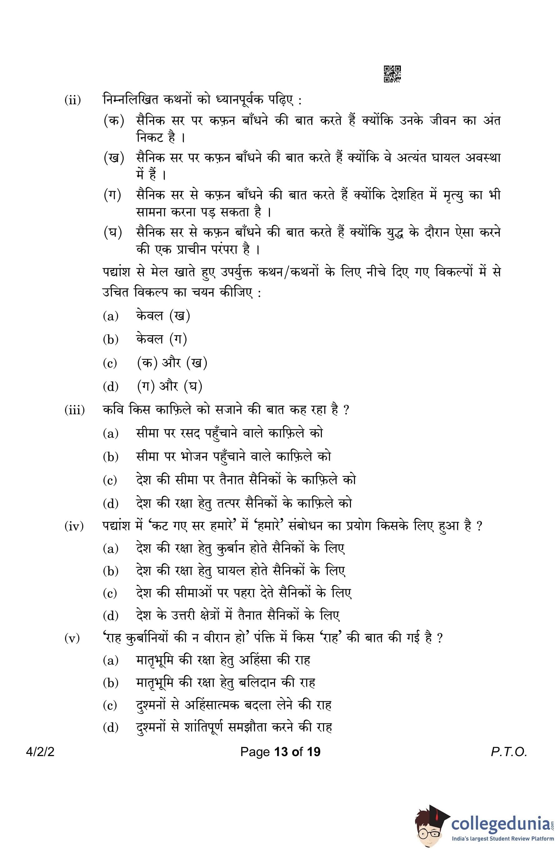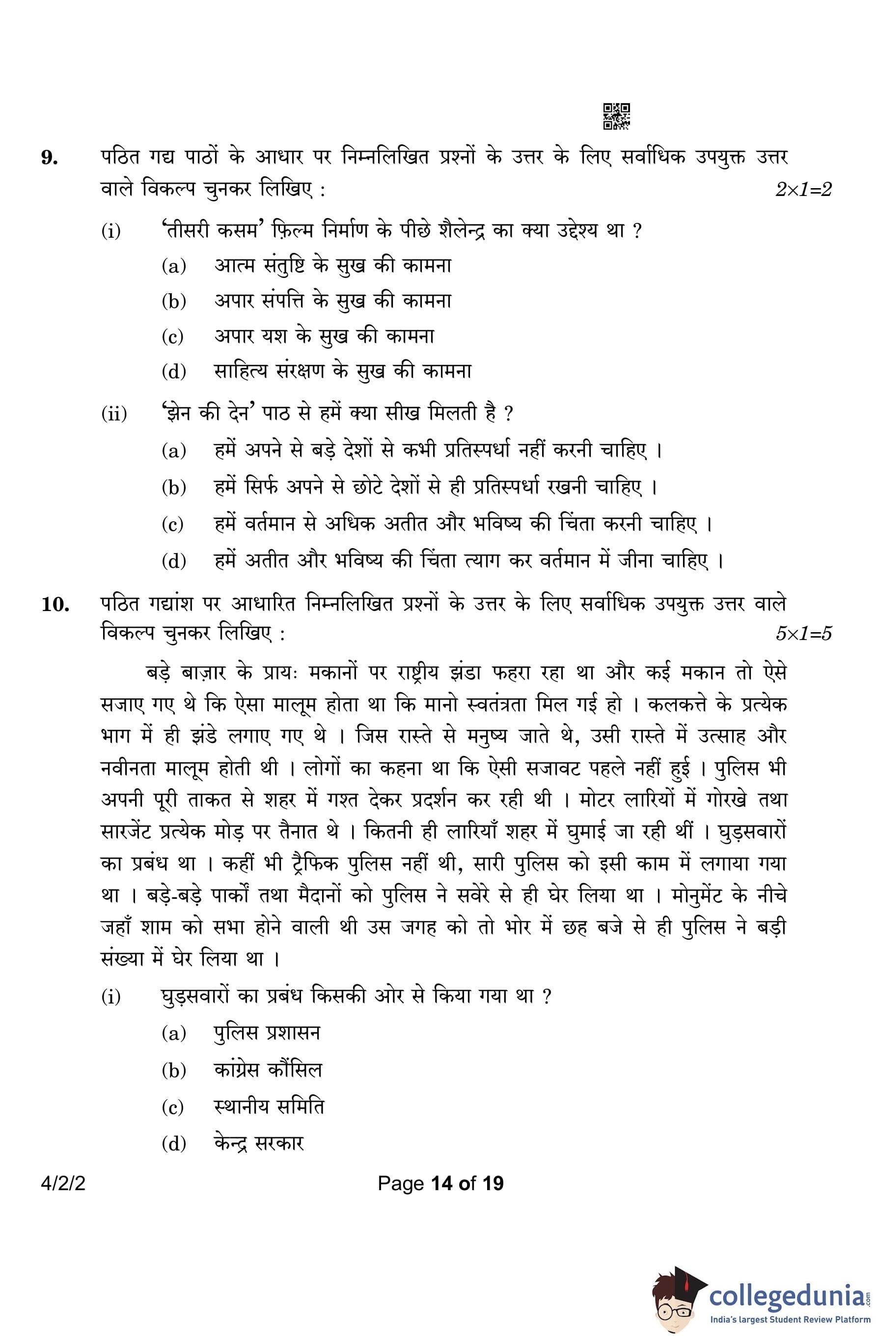 CBSE Class 10 Hindi B (Set 2- 4/2/2) Question Paper 2023 with Answer Key (March 17)
