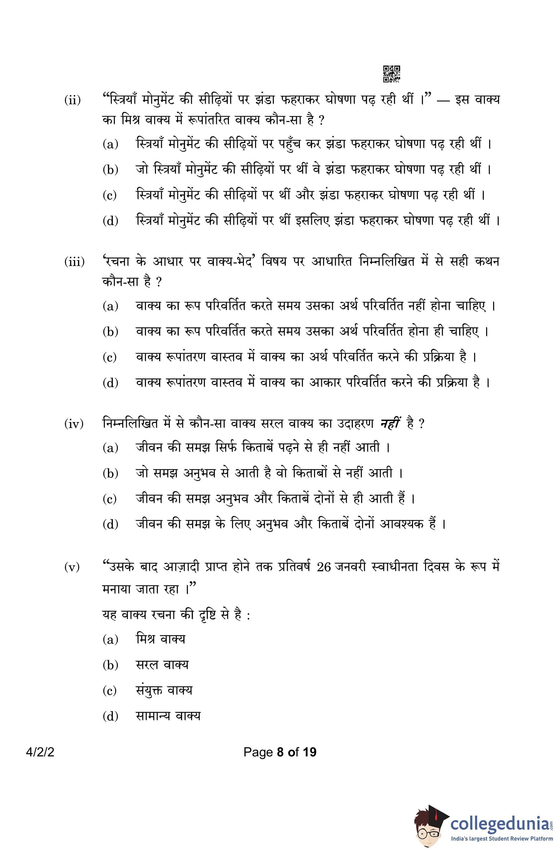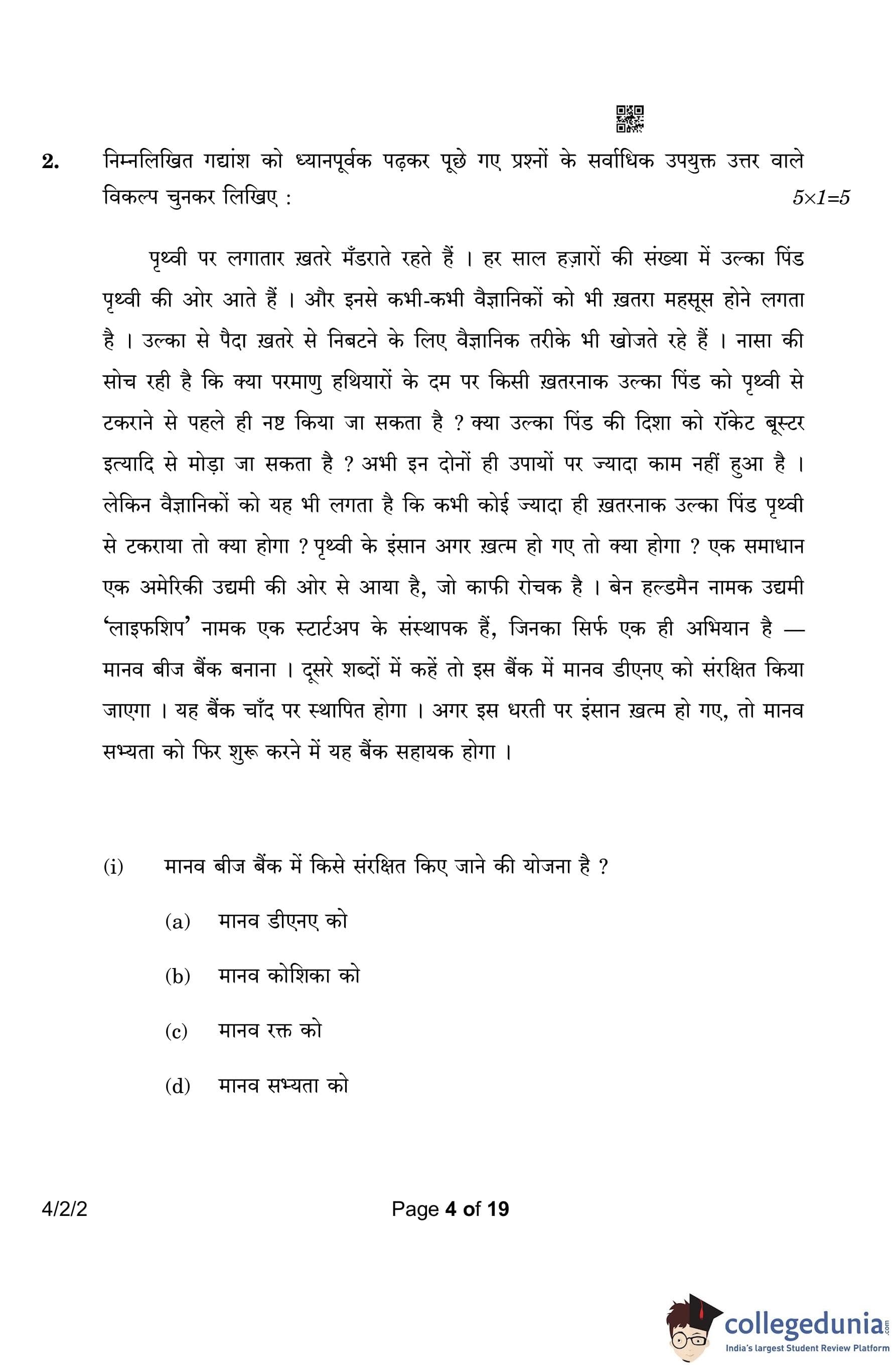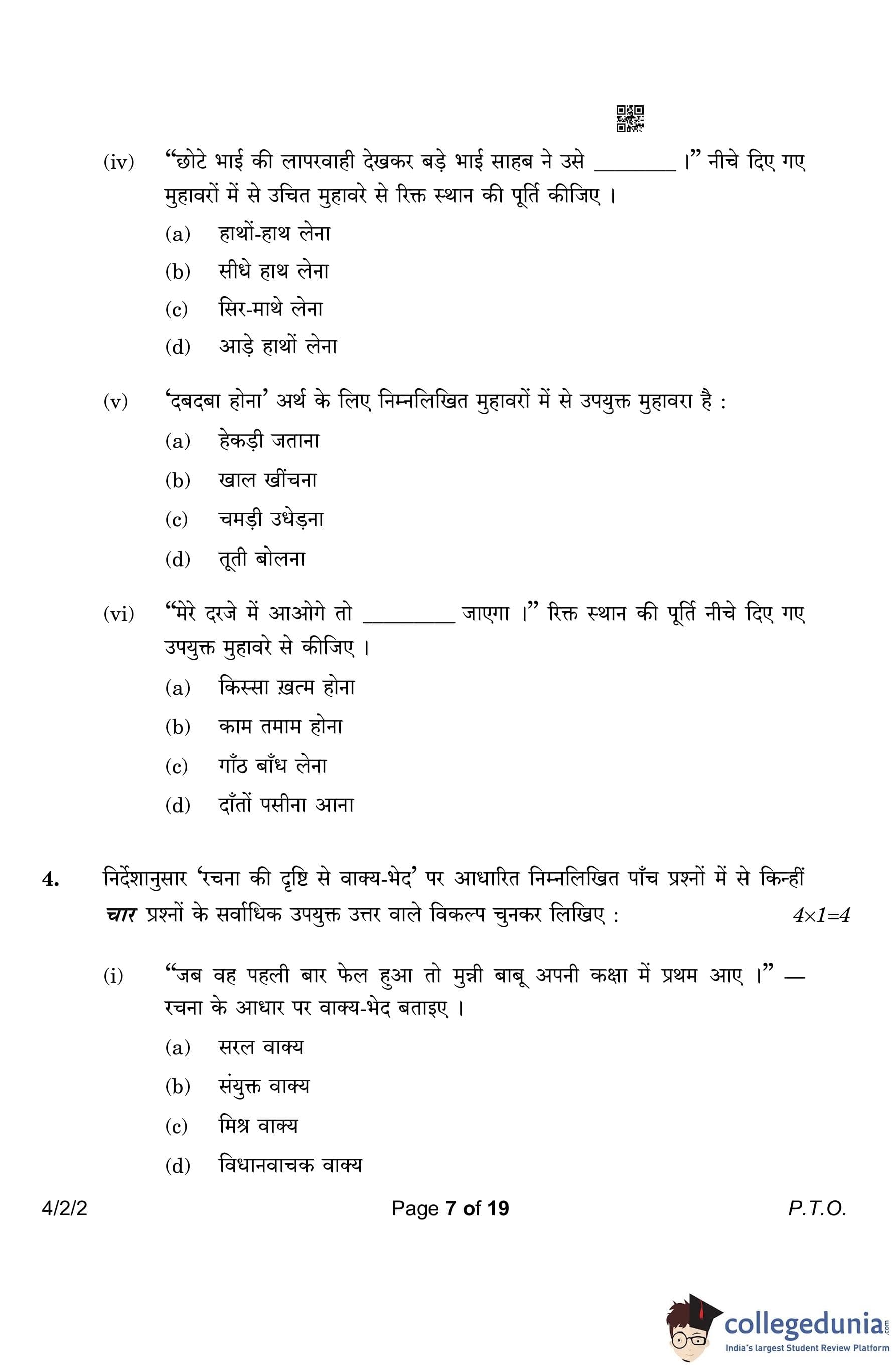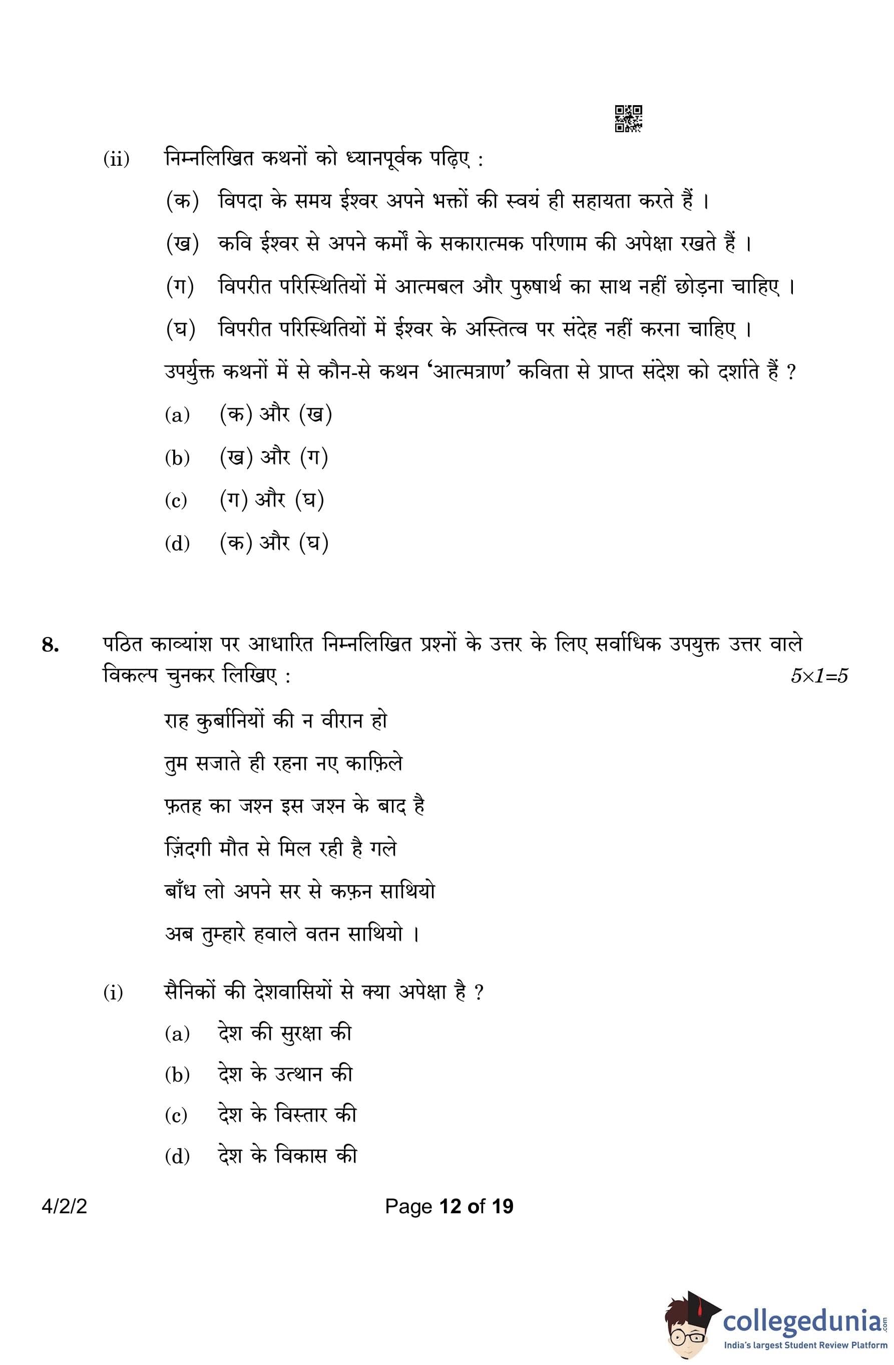 CBSE Class 10 Hindi B (Set 2- 4/2/2) Question Paper 2023 with Answer Key (March 17)