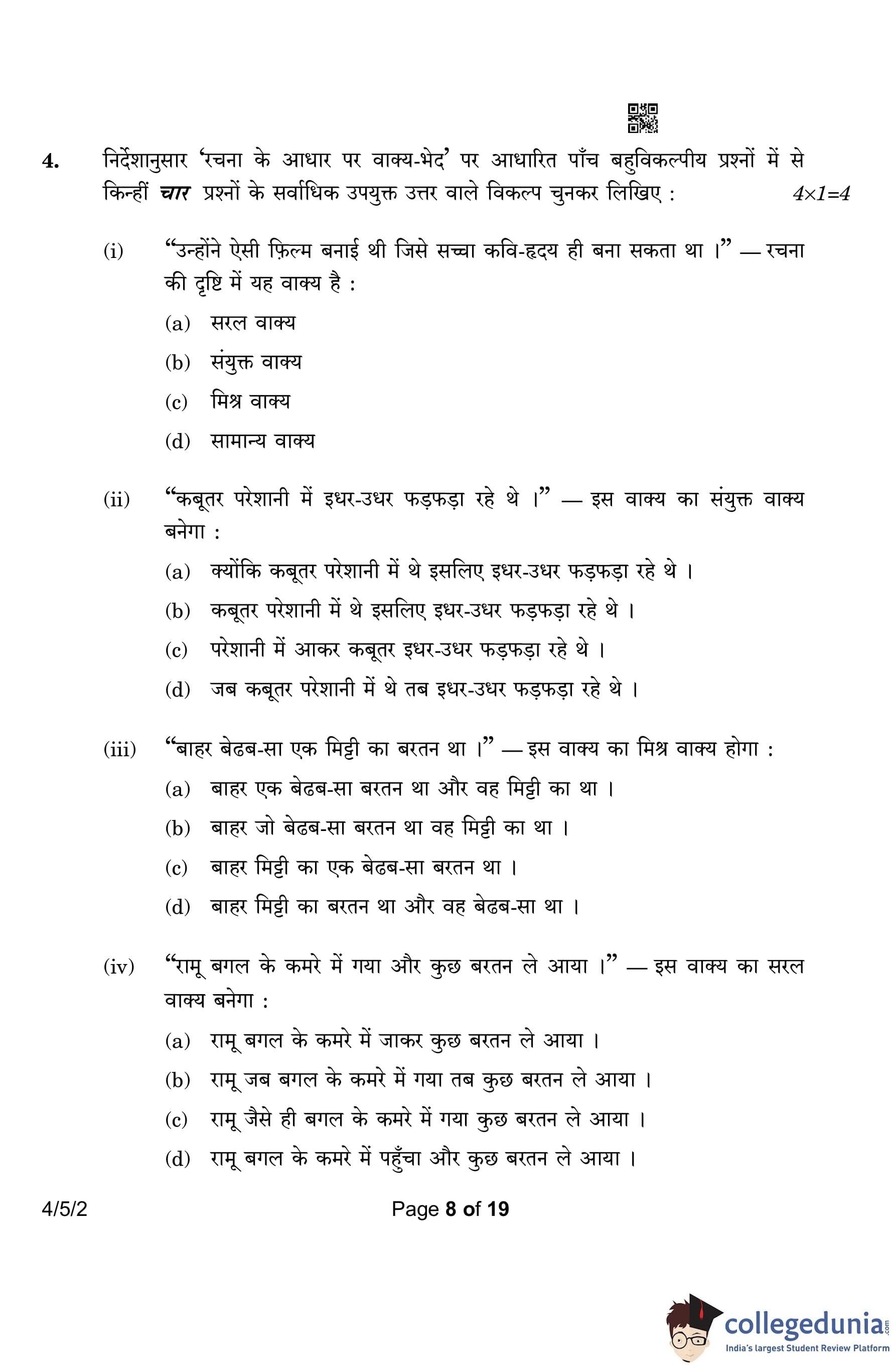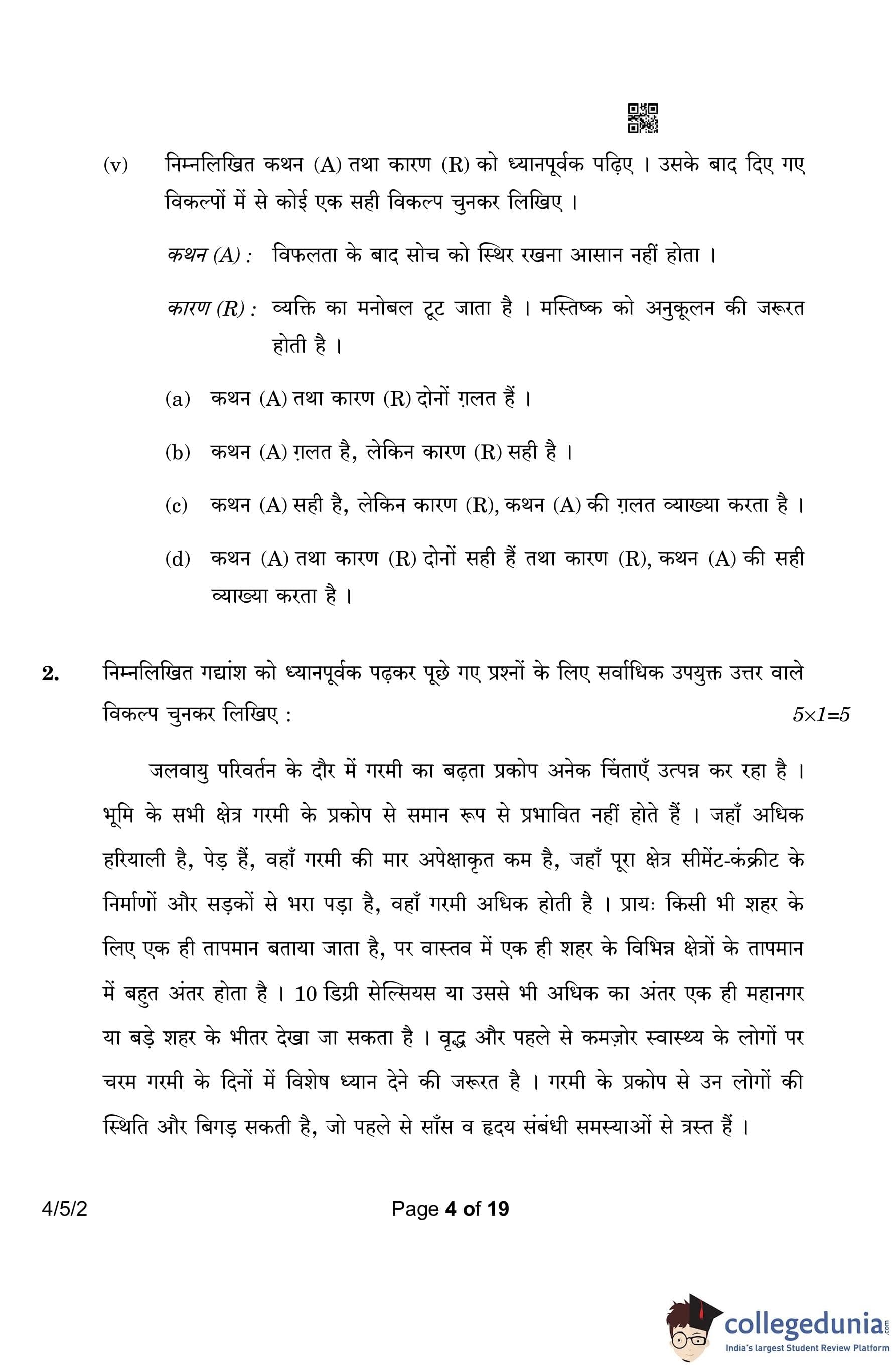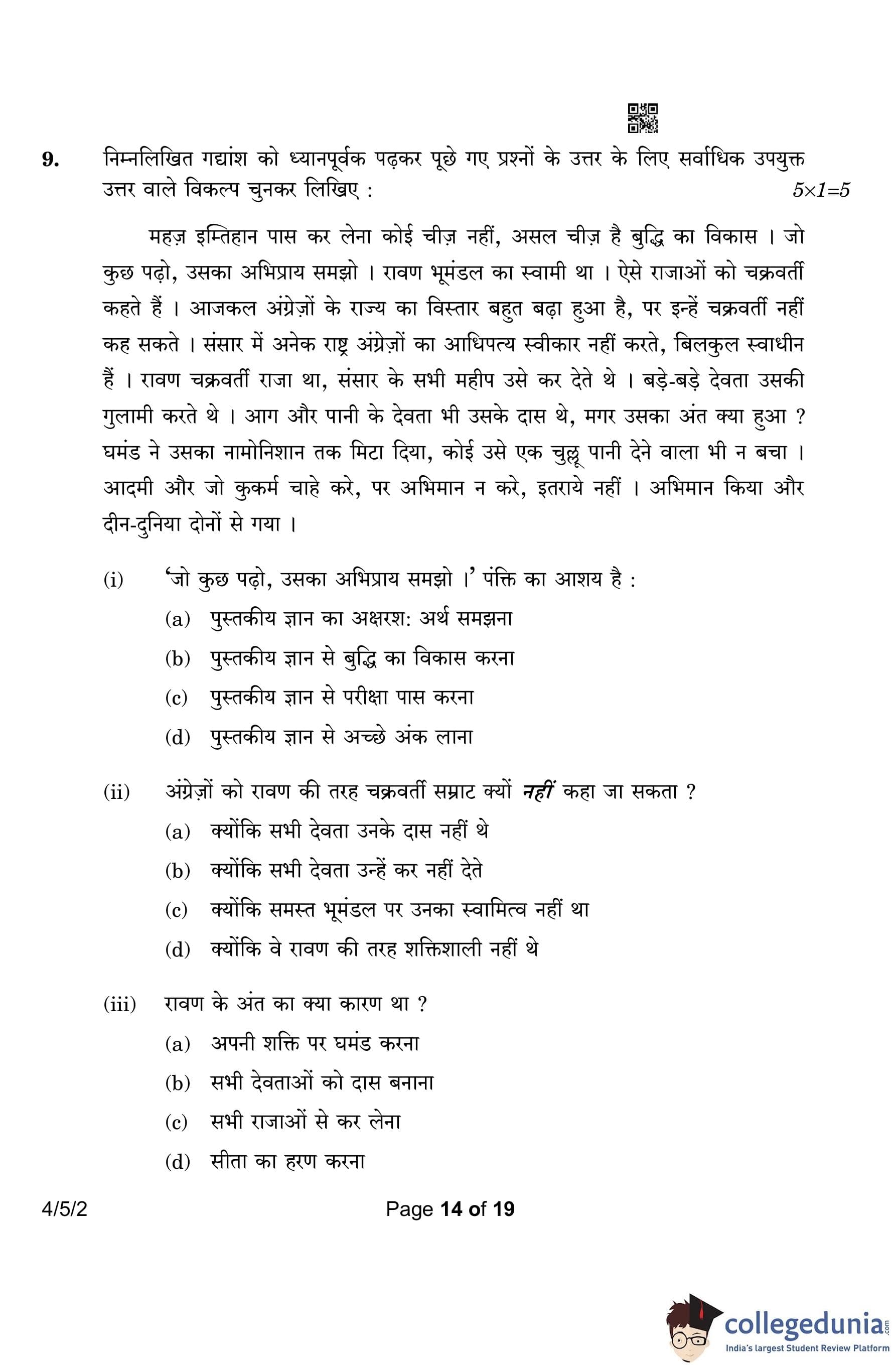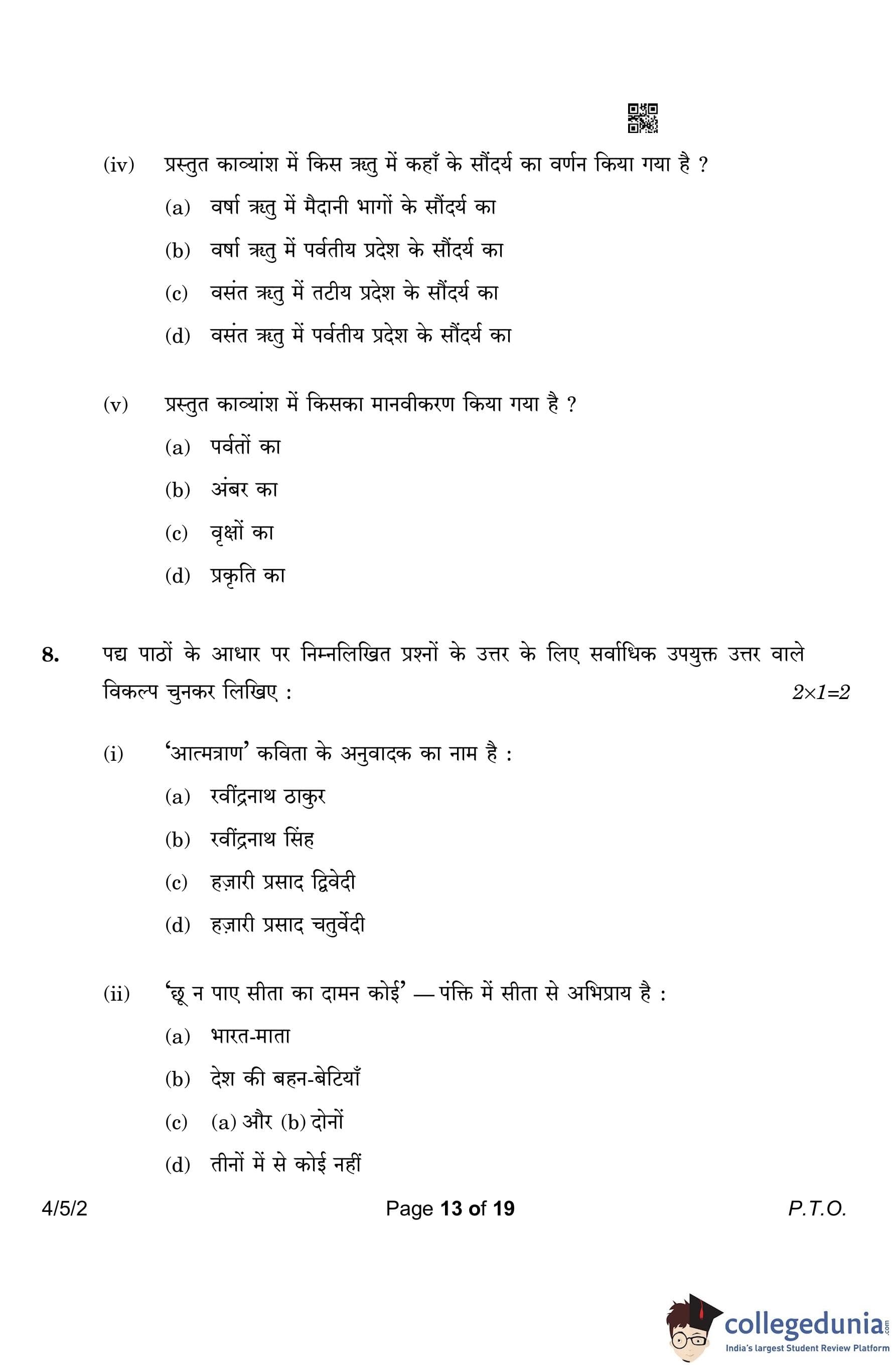 CBSE Class 10 Hindi B Question Paper 2023 with Answer Key (Set 2- 4/5/2) is available for download here. The exam was conducted by the Central Board of Secondary Education on March 17, 2023 in the Morning Session 10:30 AM to 1:30 PM. According to initial student reaction, the CBSE Class 10 Hindi B Paper was rated as Easy in difficulty level. The question paper comprised a total of 17 questions divided among 2 sections.