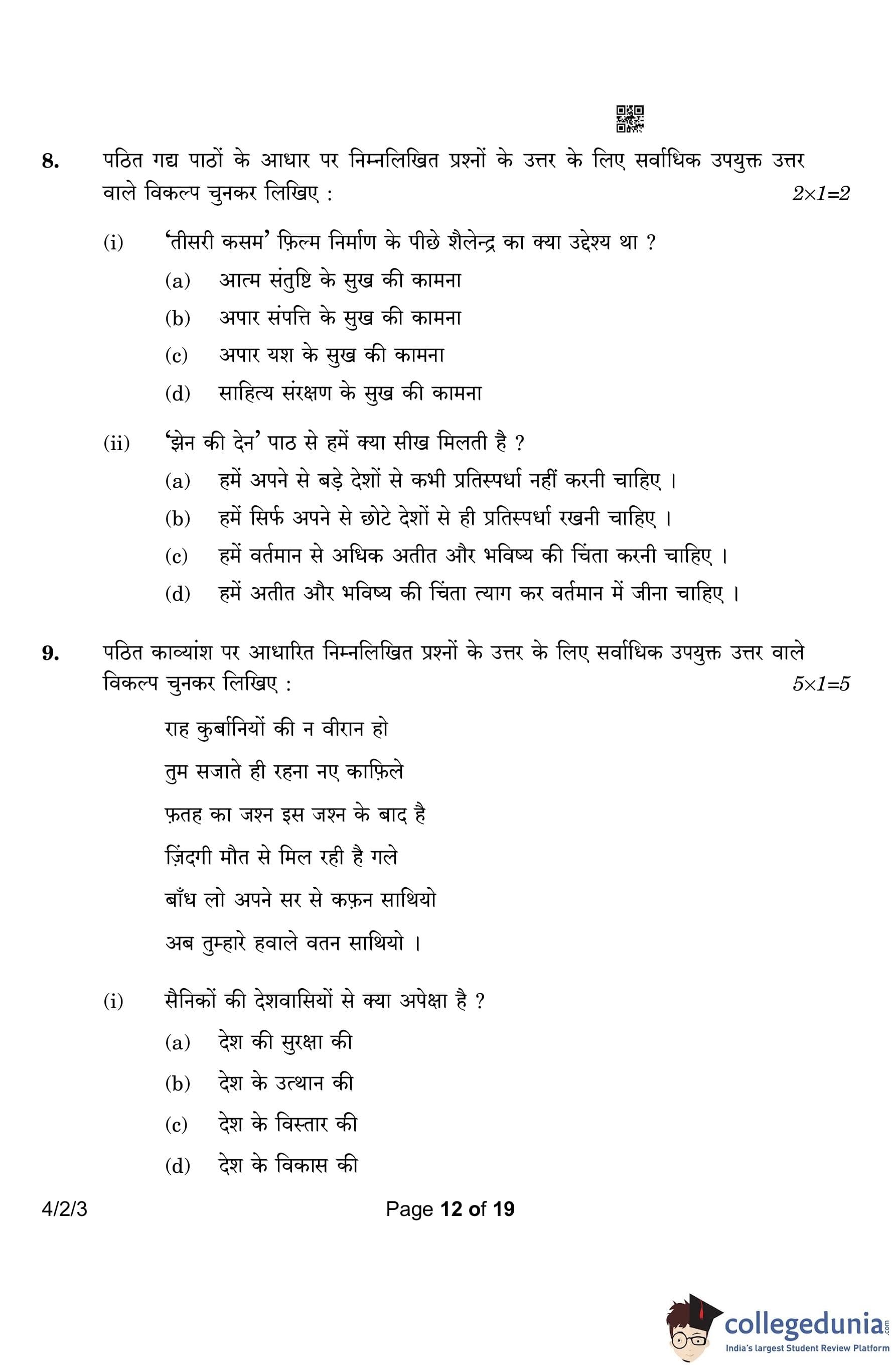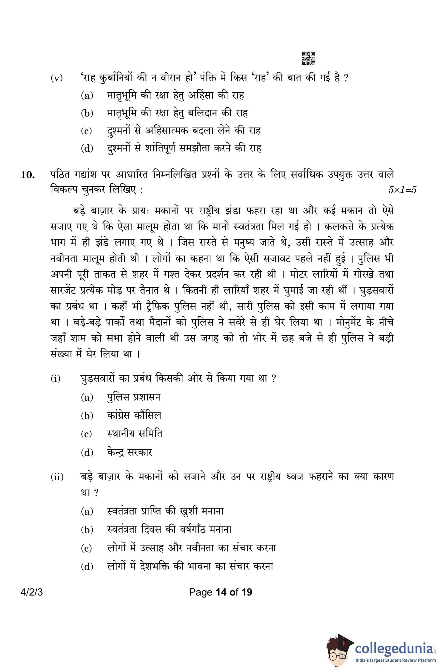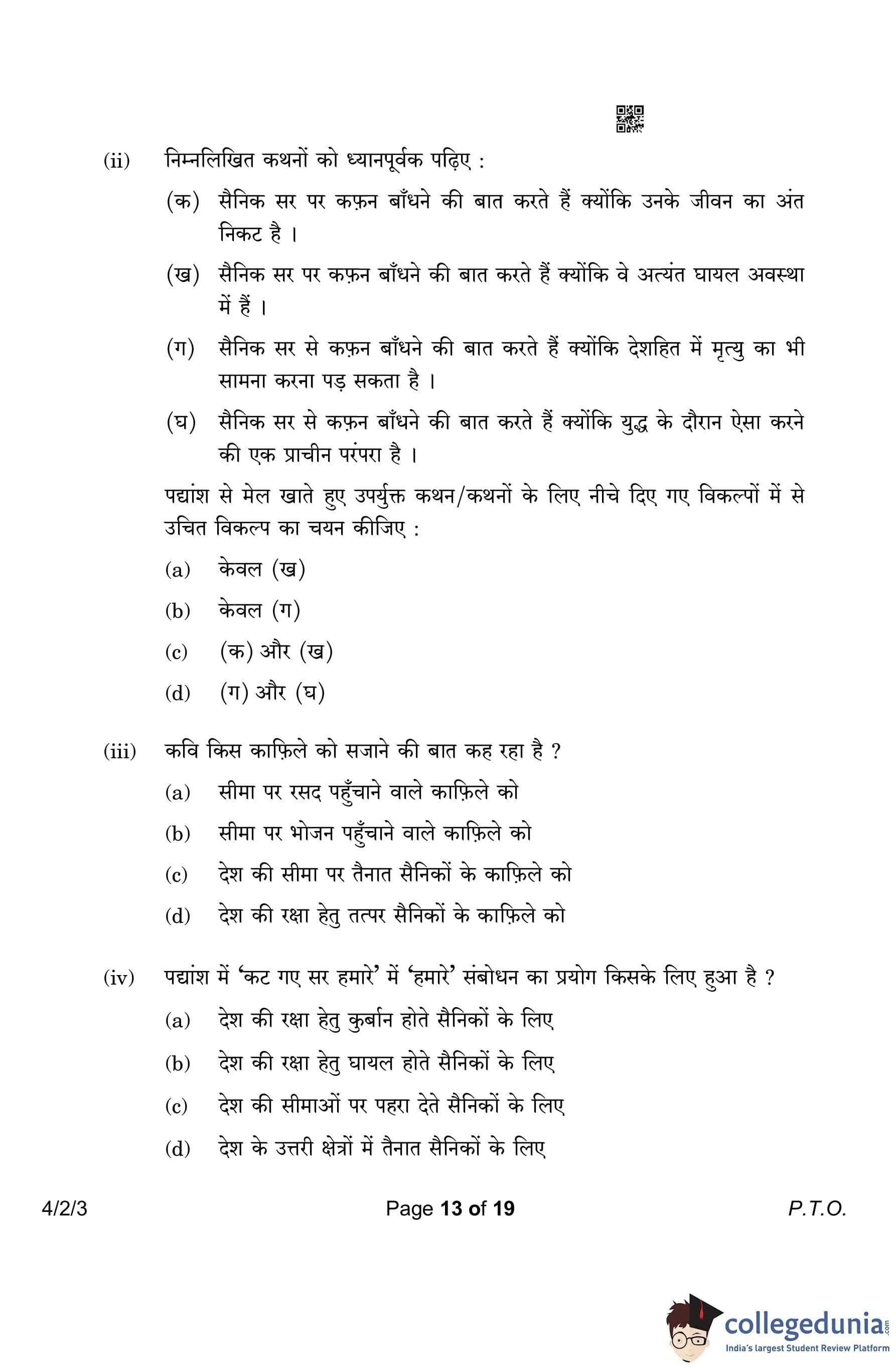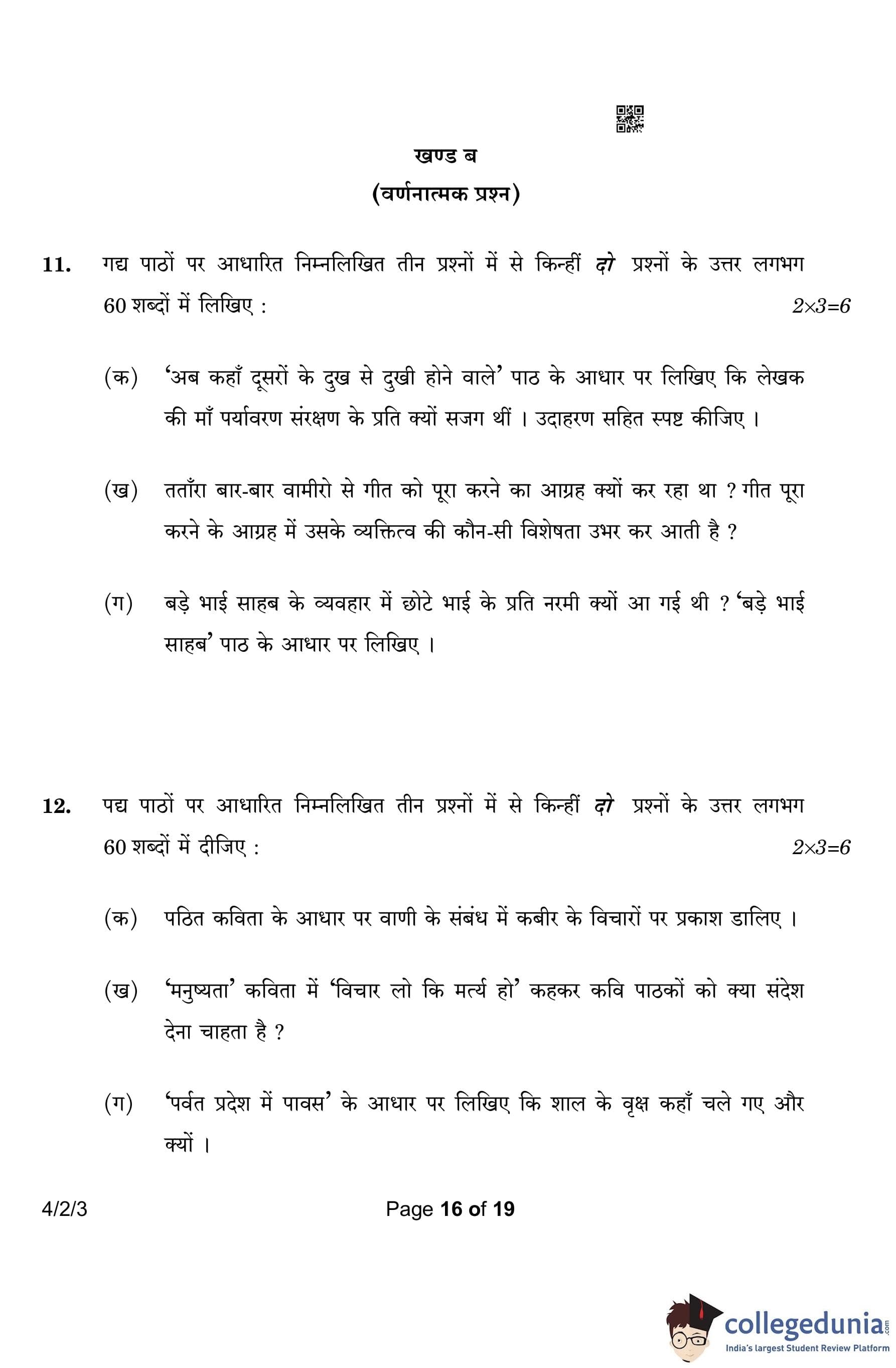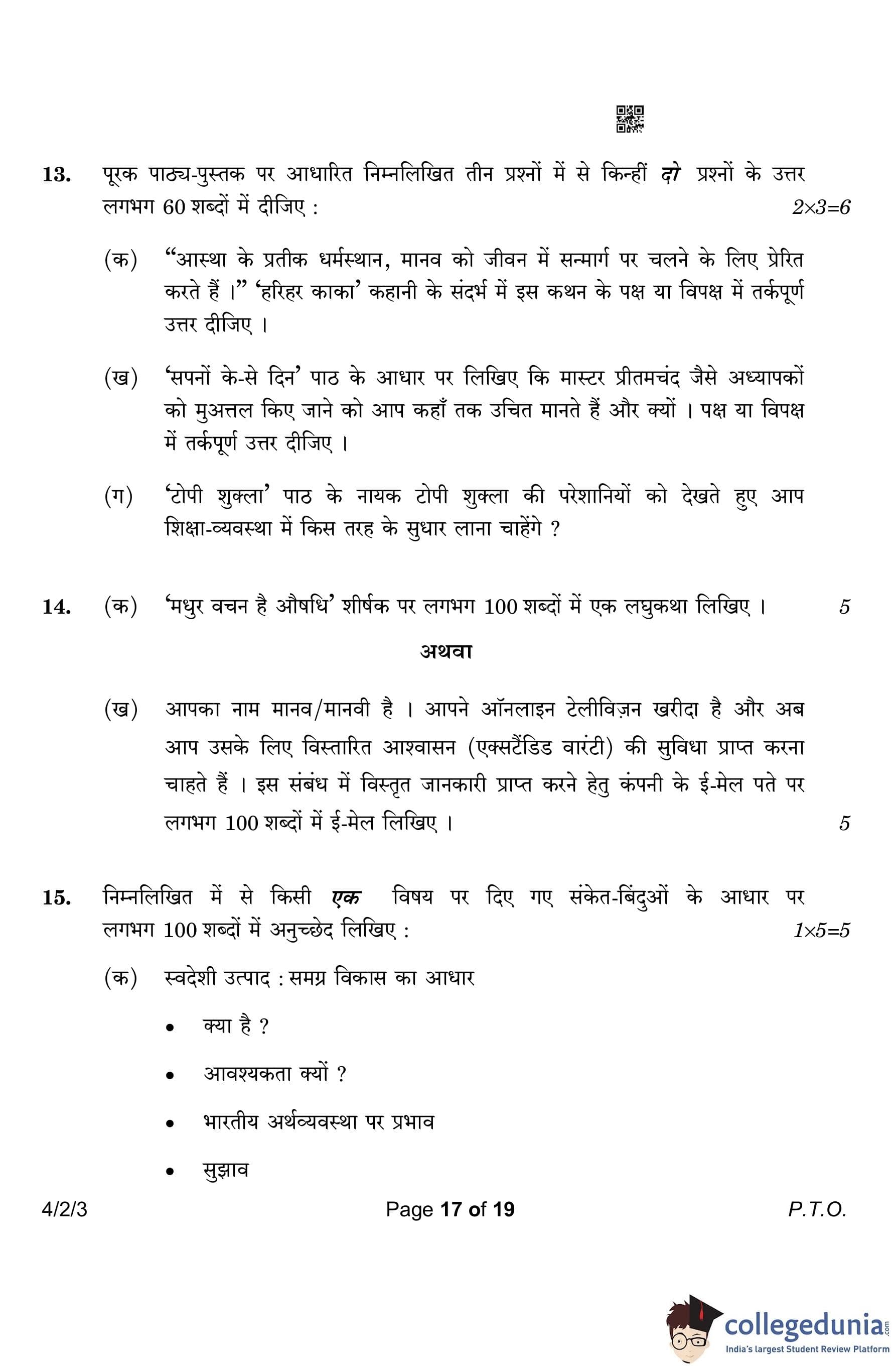 CBSE Class 10 Hindi B (Set 3- 4/2/3) Question Paper 2023 with Answer Key