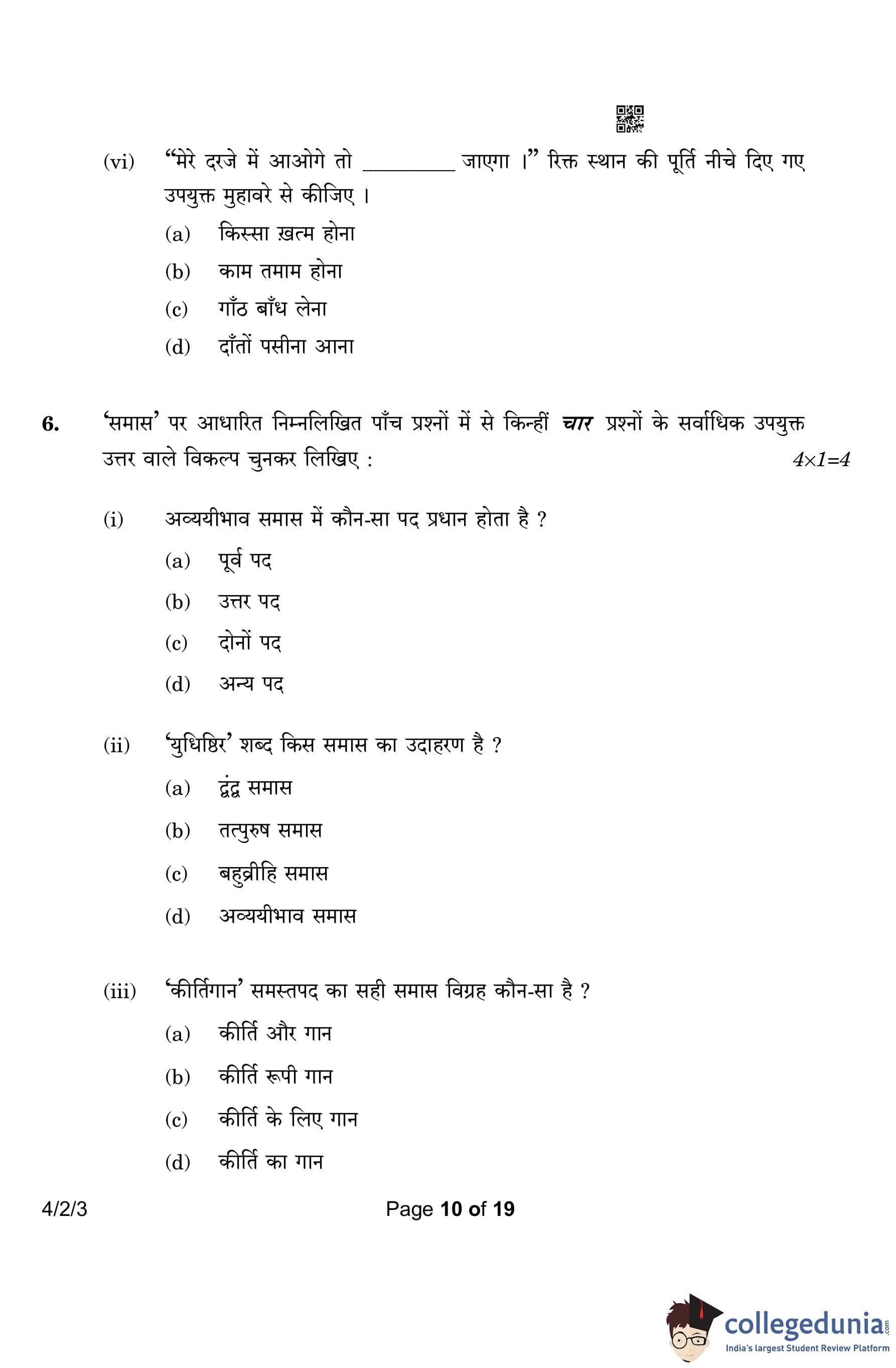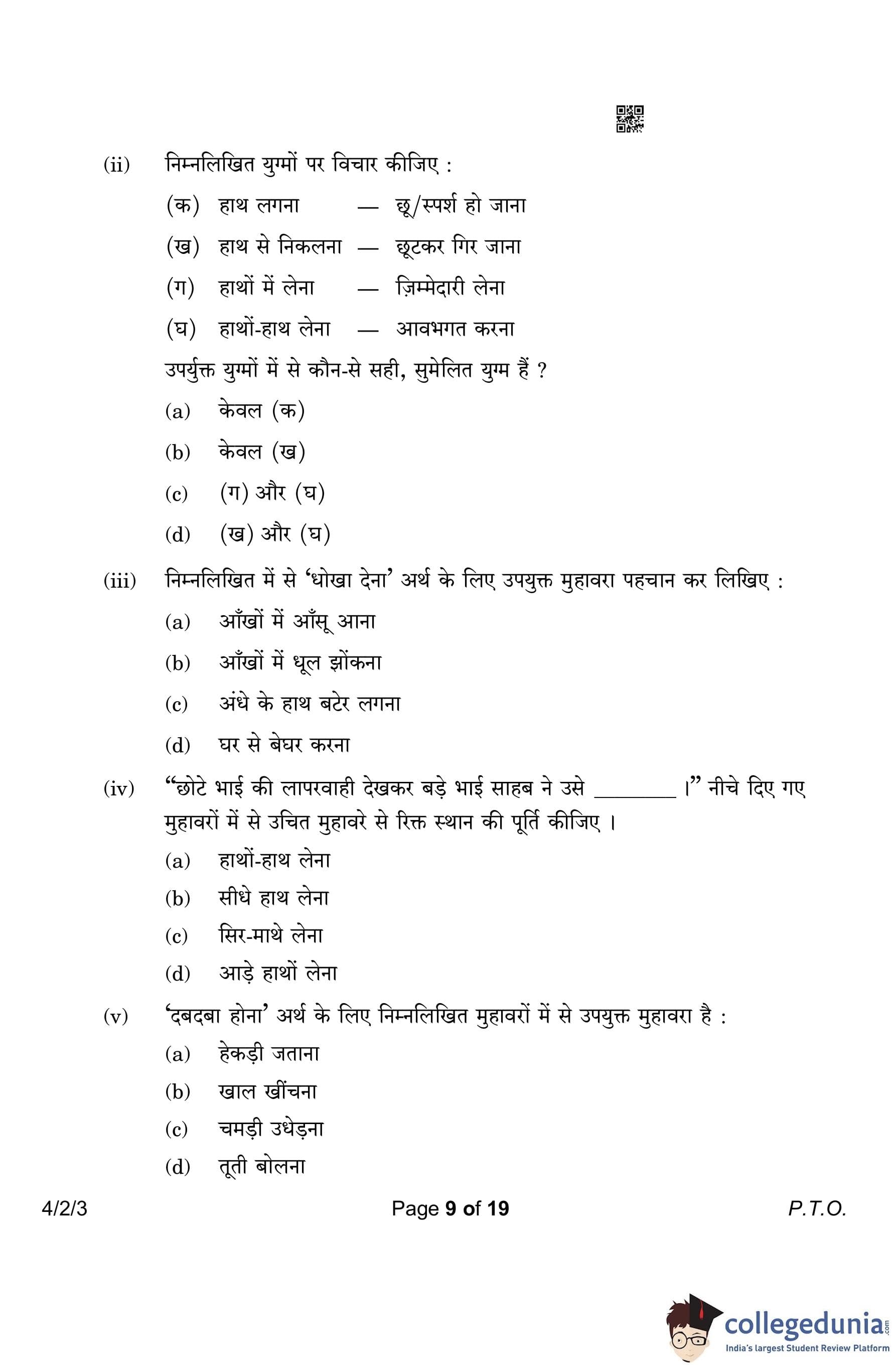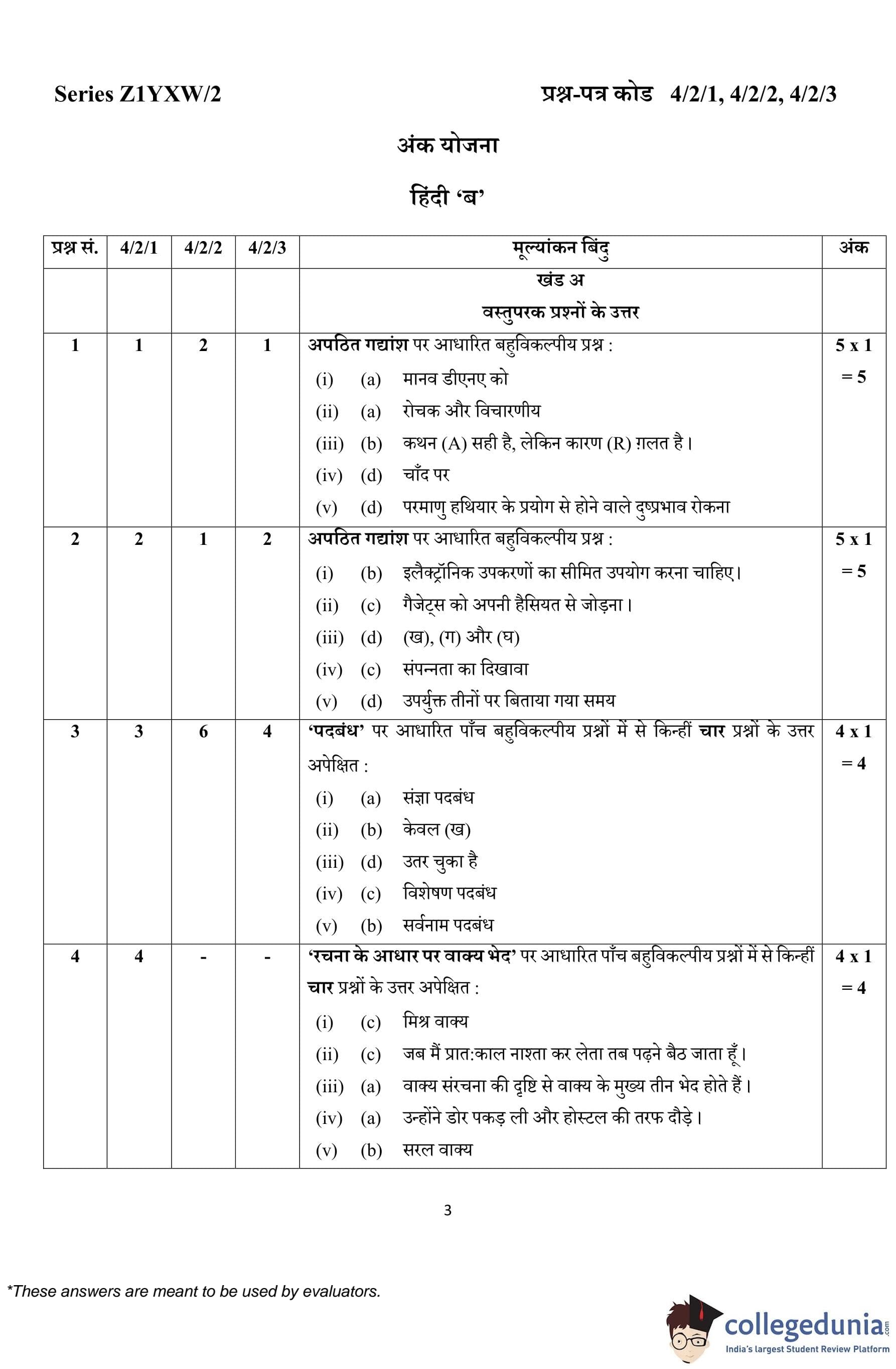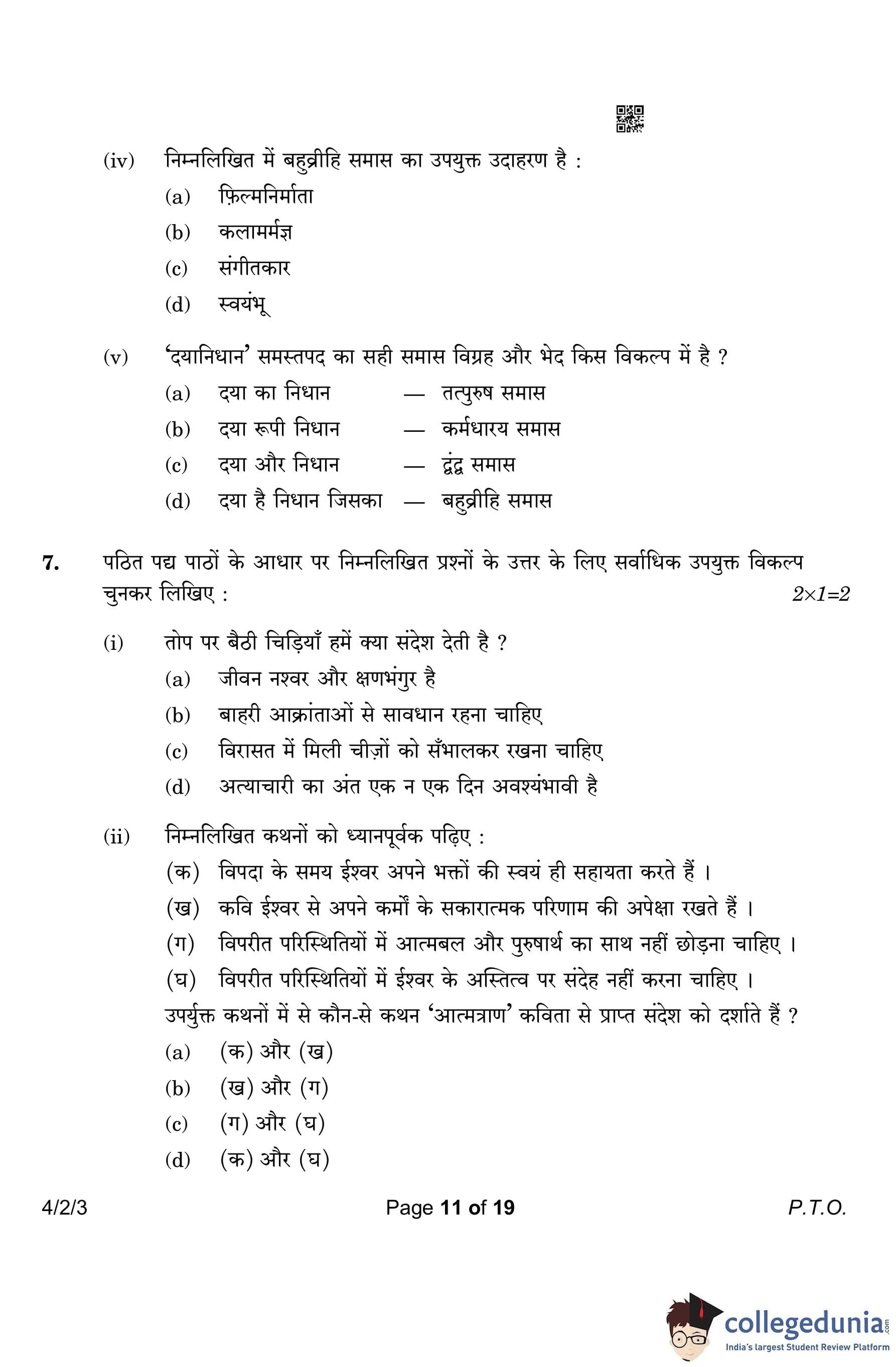 CBSE Class 10 Hindi B (Set 3- 4/2/3) Question Paper 2023 with Answer Key