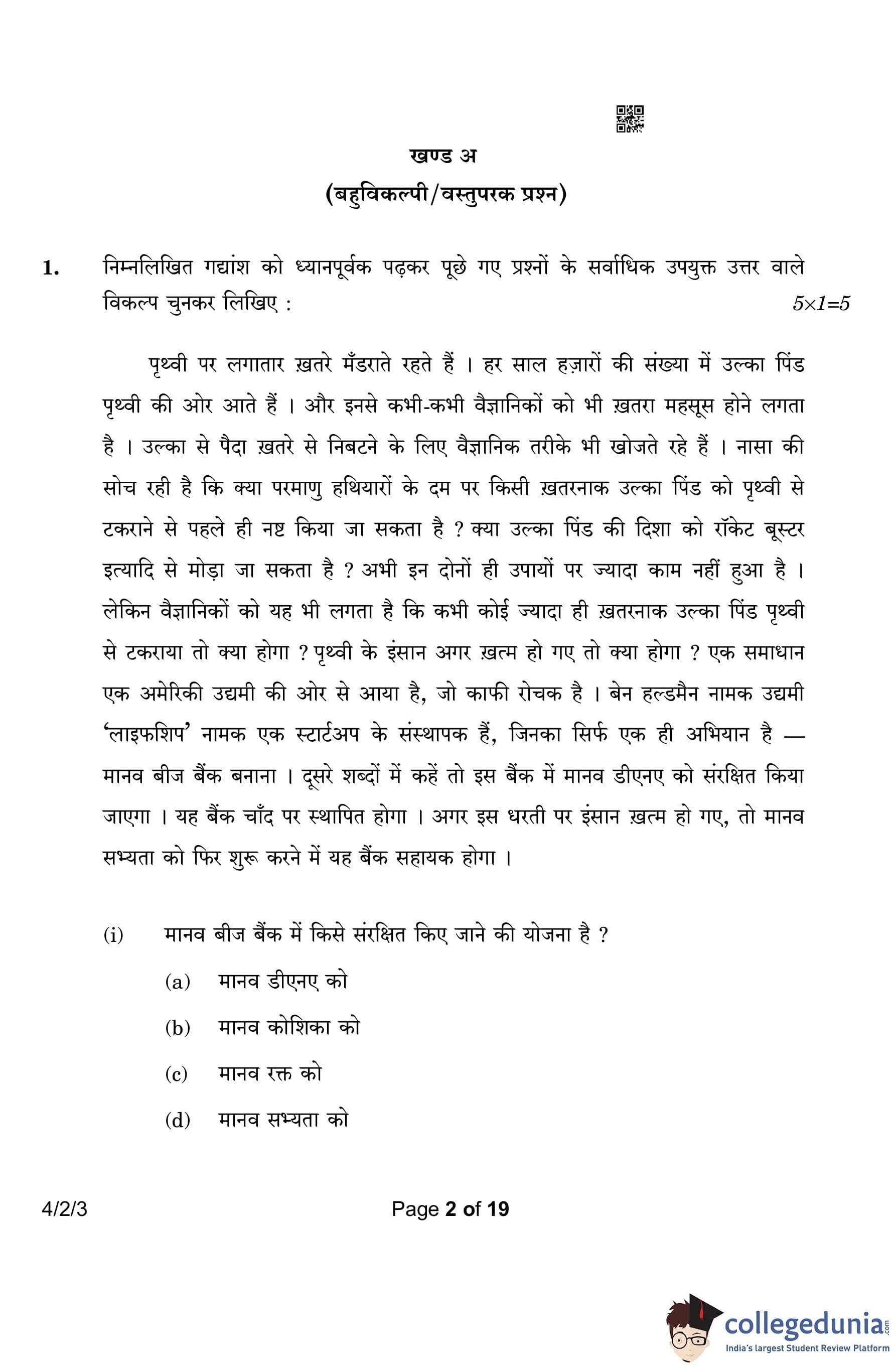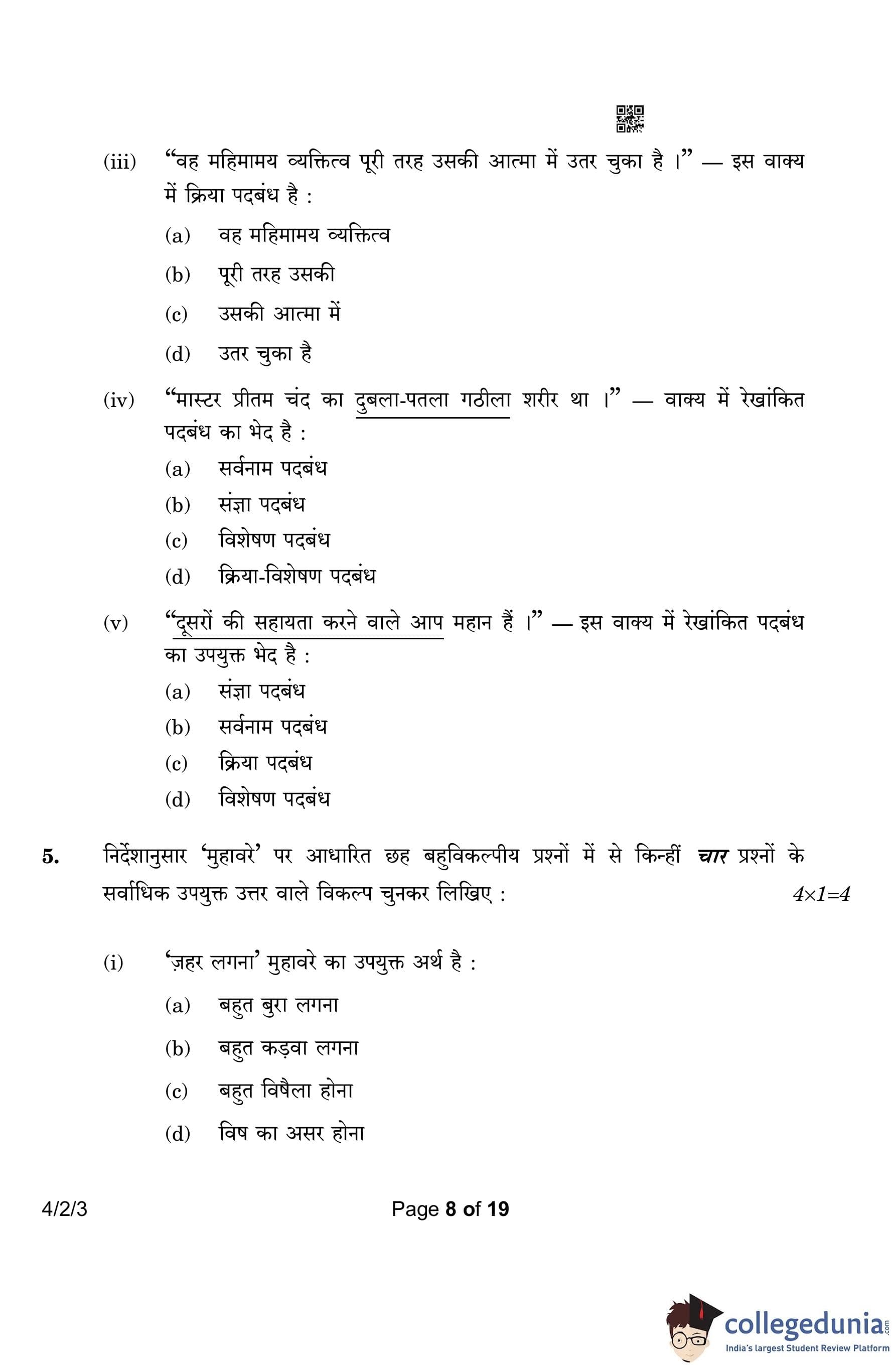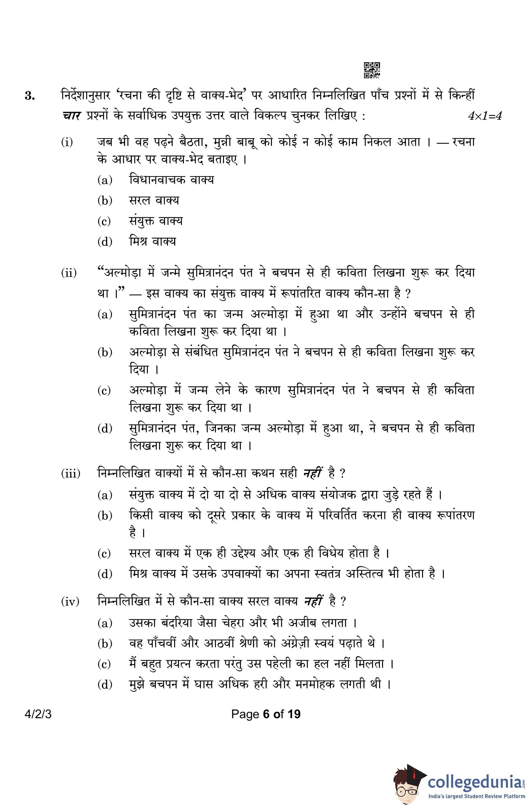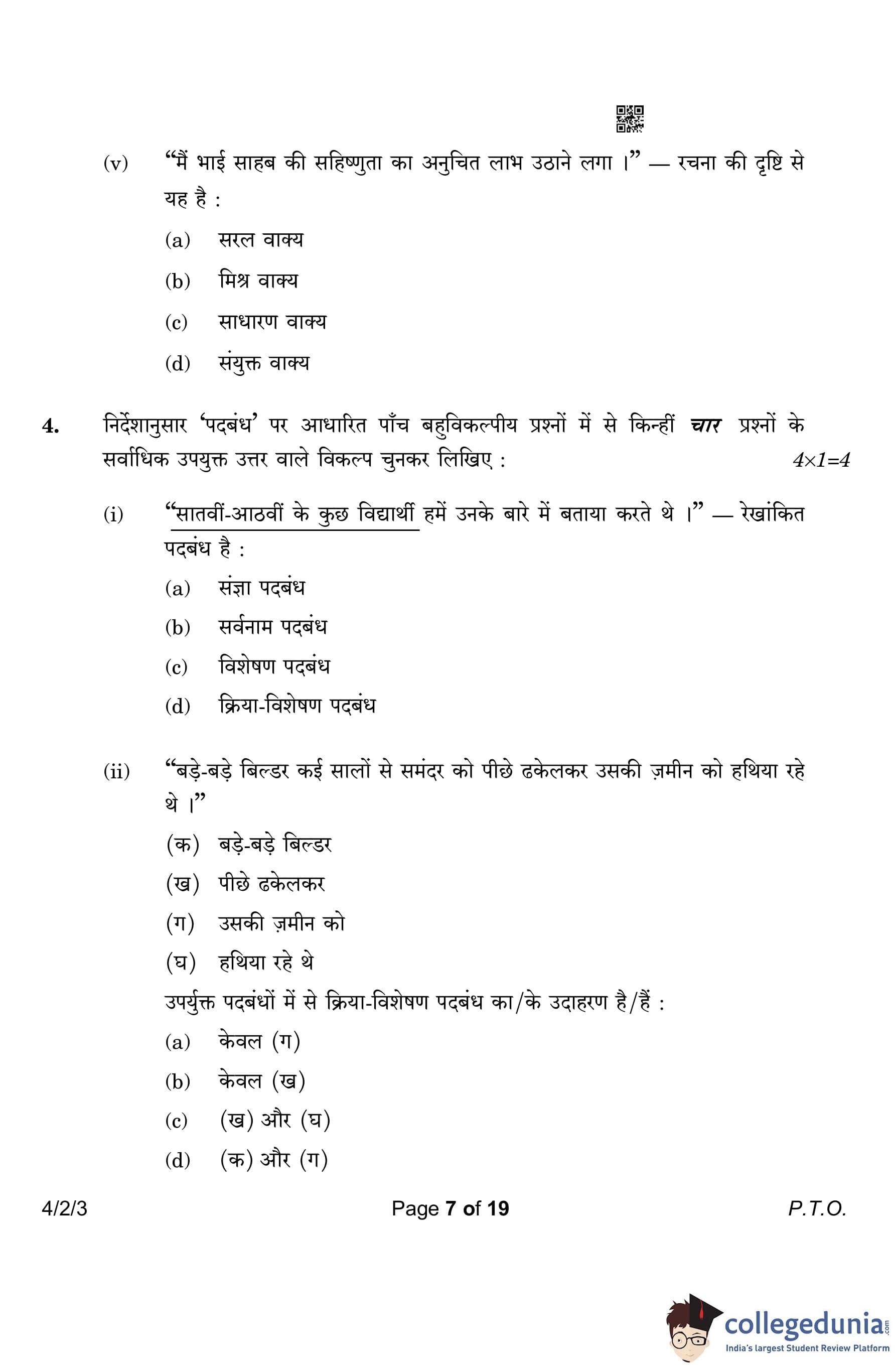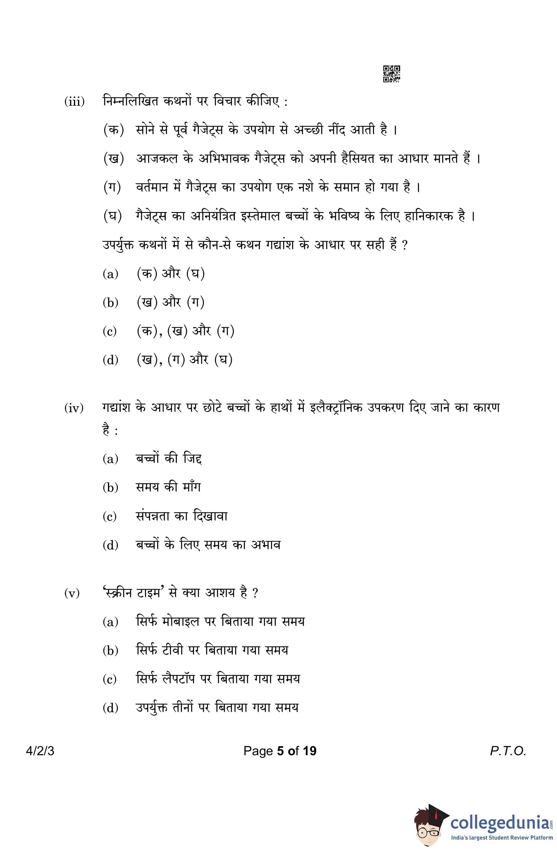CBSE Class 10 Hindi B (Set 3- 4/2/3) Question Paper 2023 with Answer Key