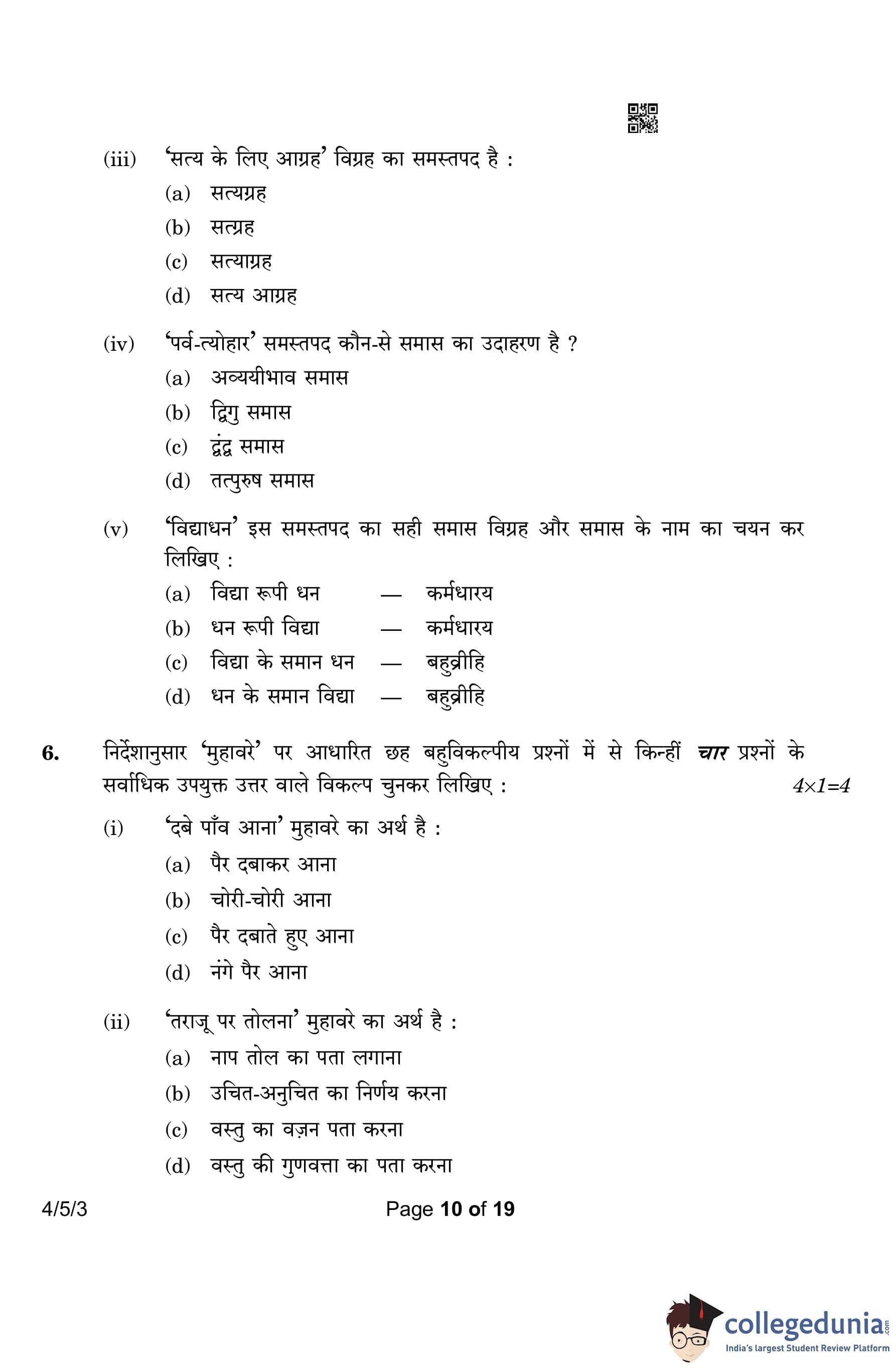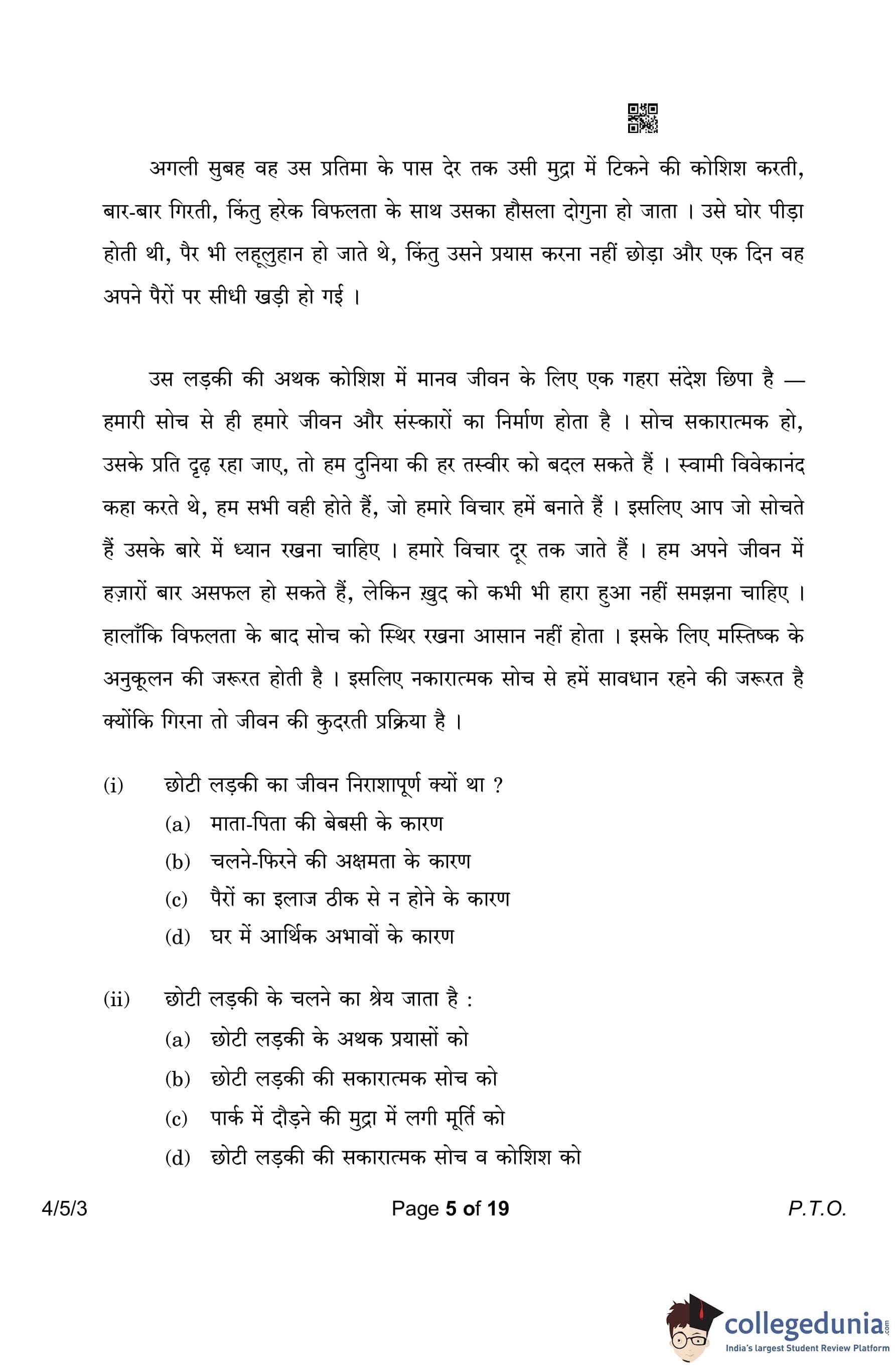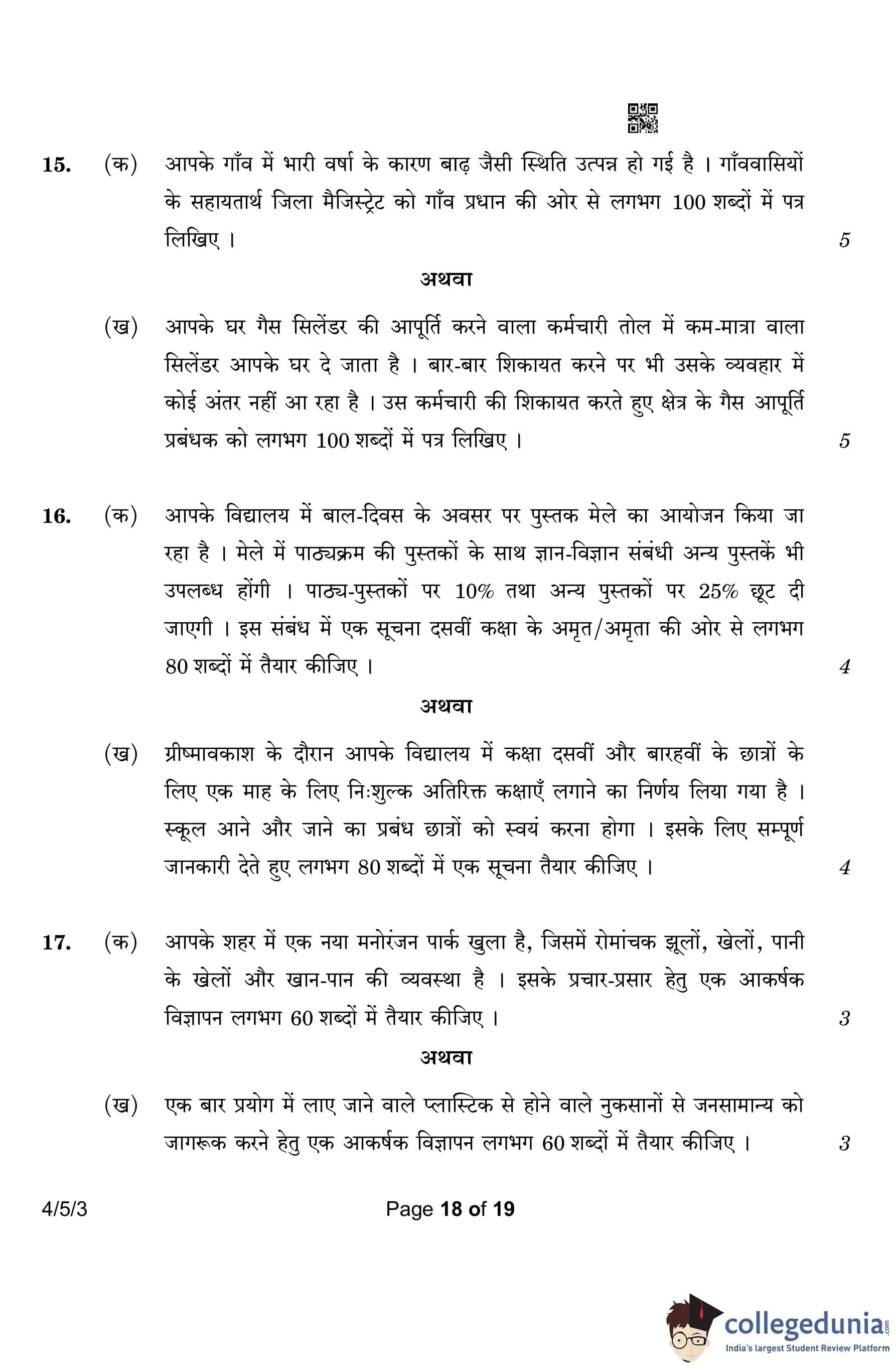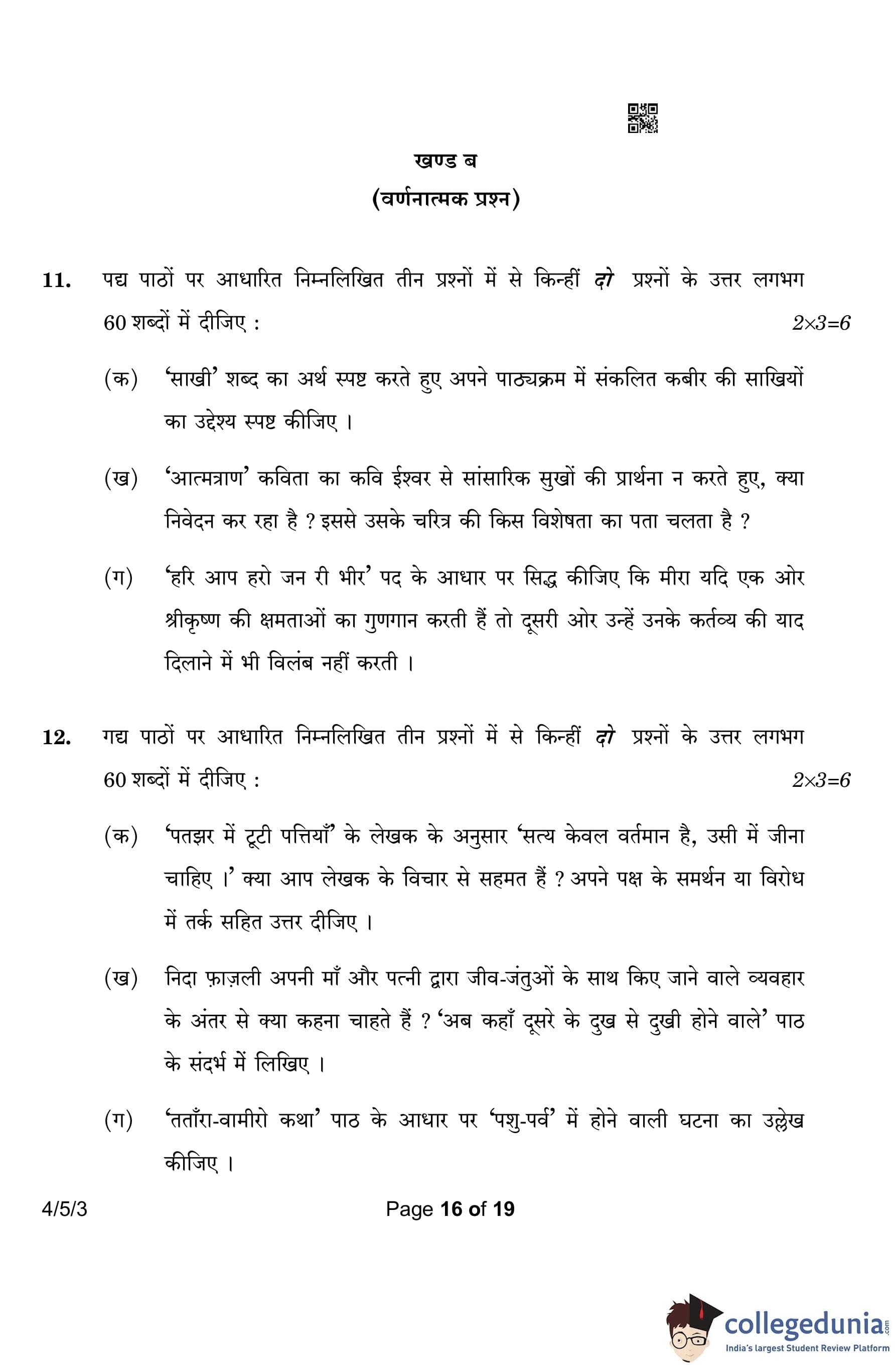 CBSE Class 10 Hindi B (Set 3- 4/5/3) Question Paper 2023 with Answer Key