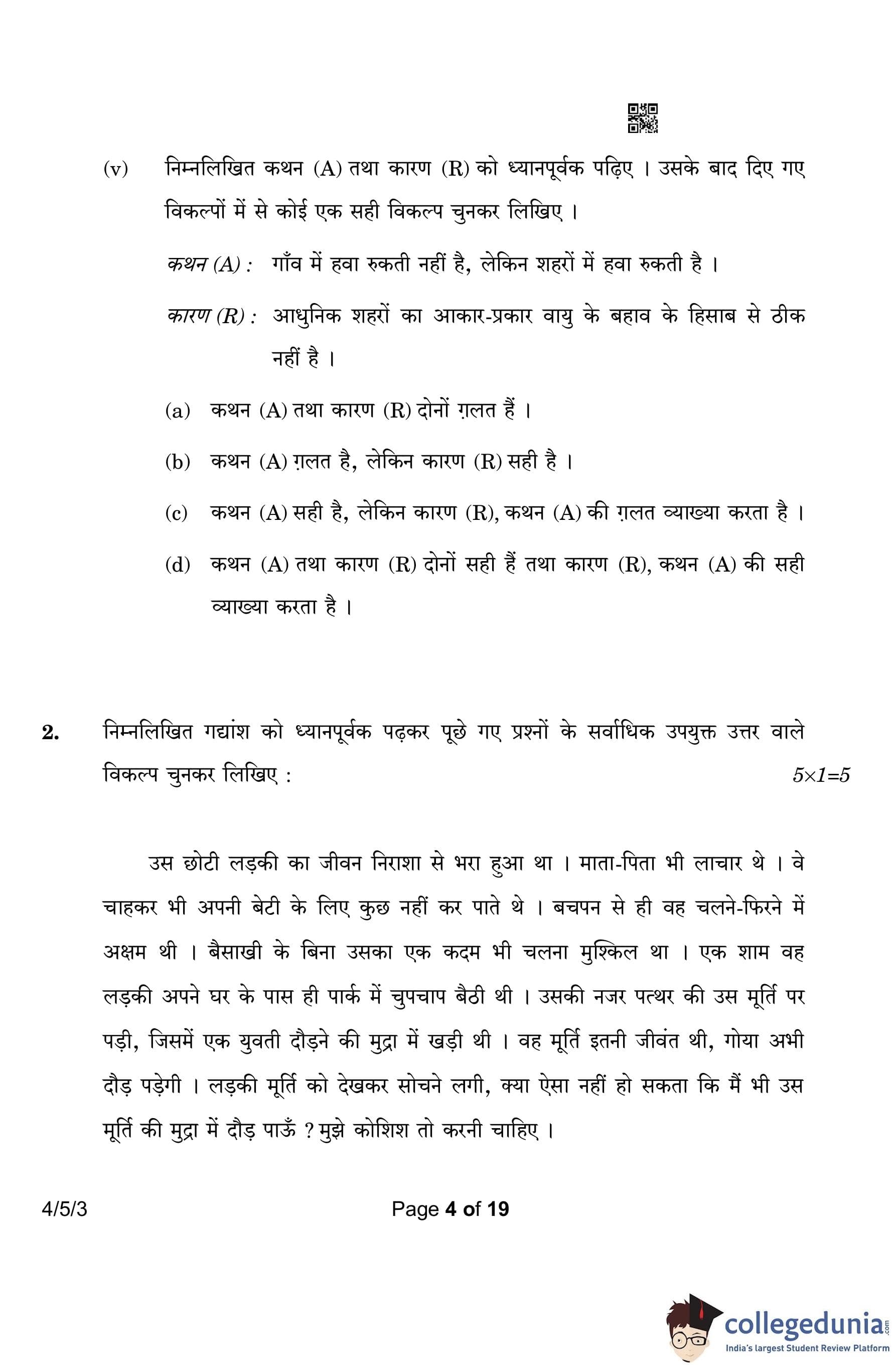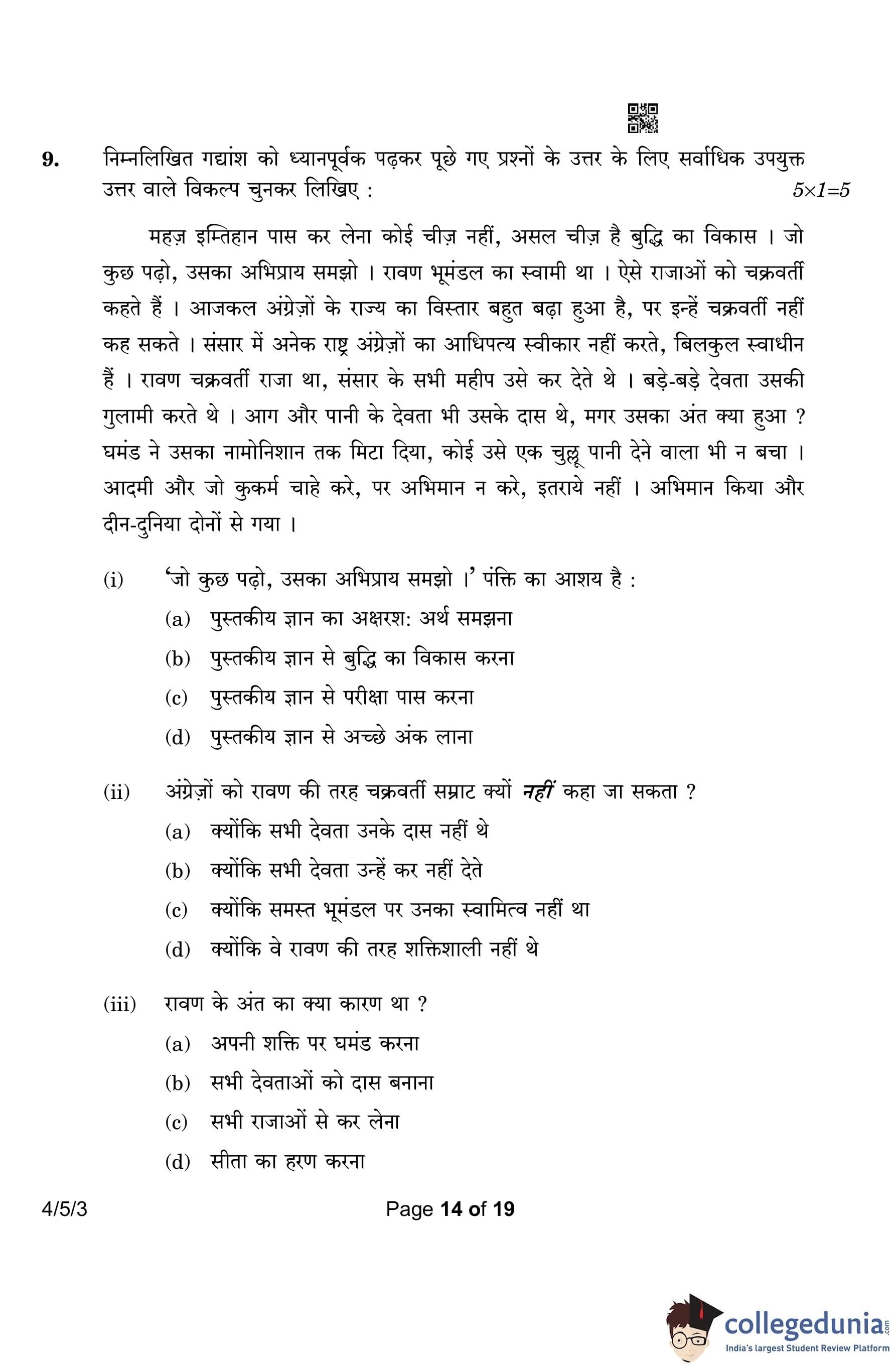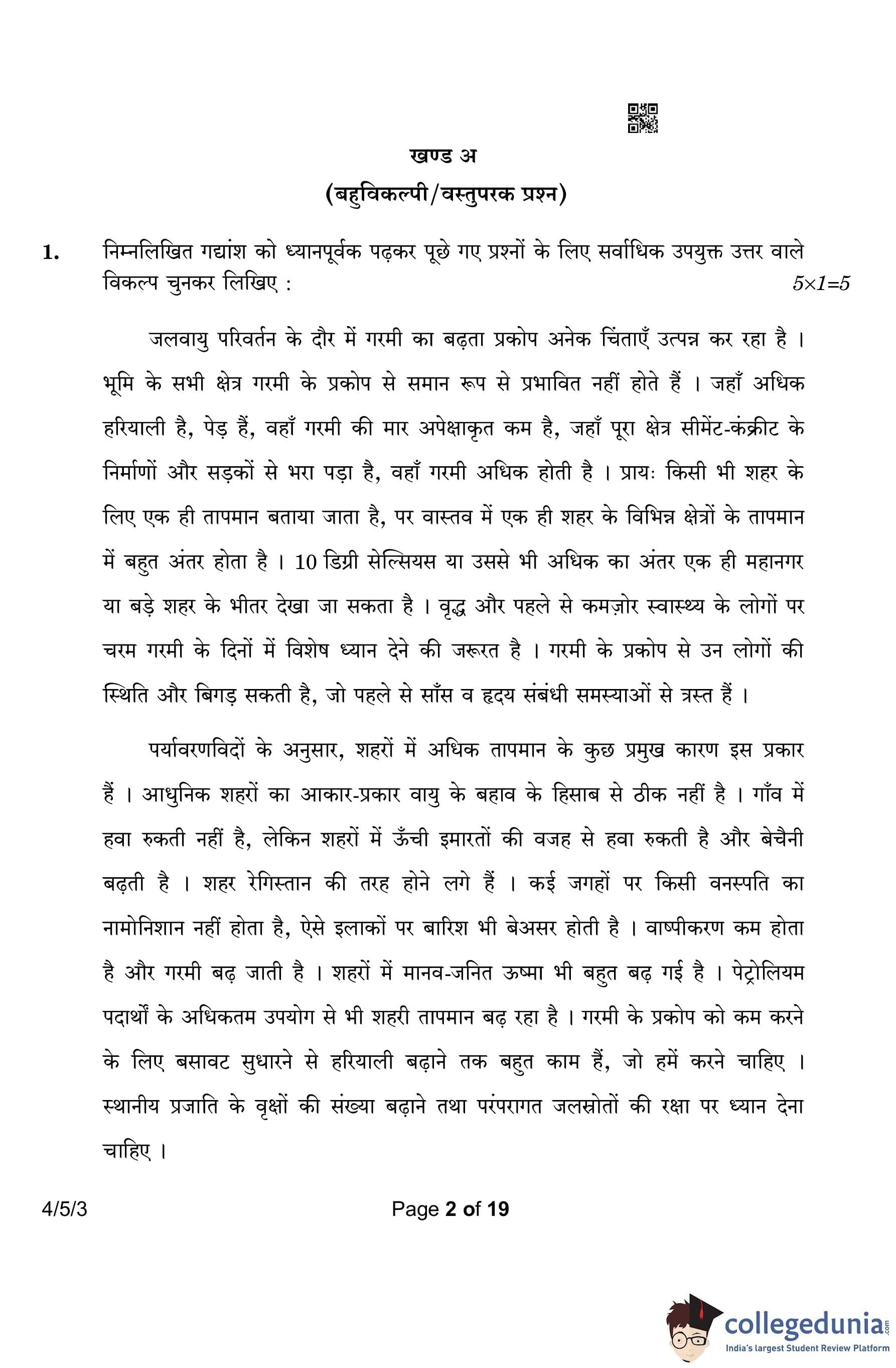 CBSE Class 10 Hindi B (Set 3- 4/5/3) Question Paper 2023 with Answer Key