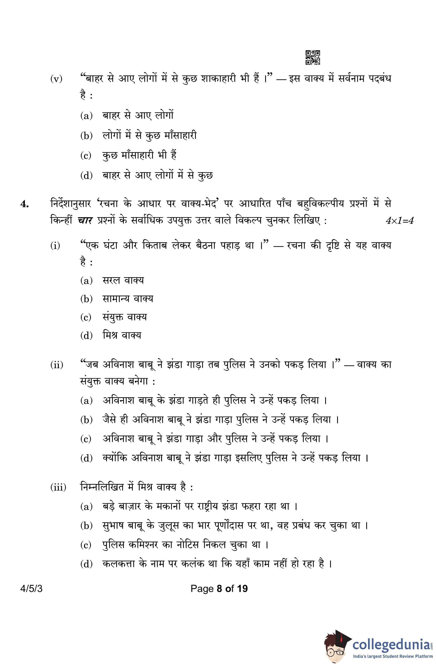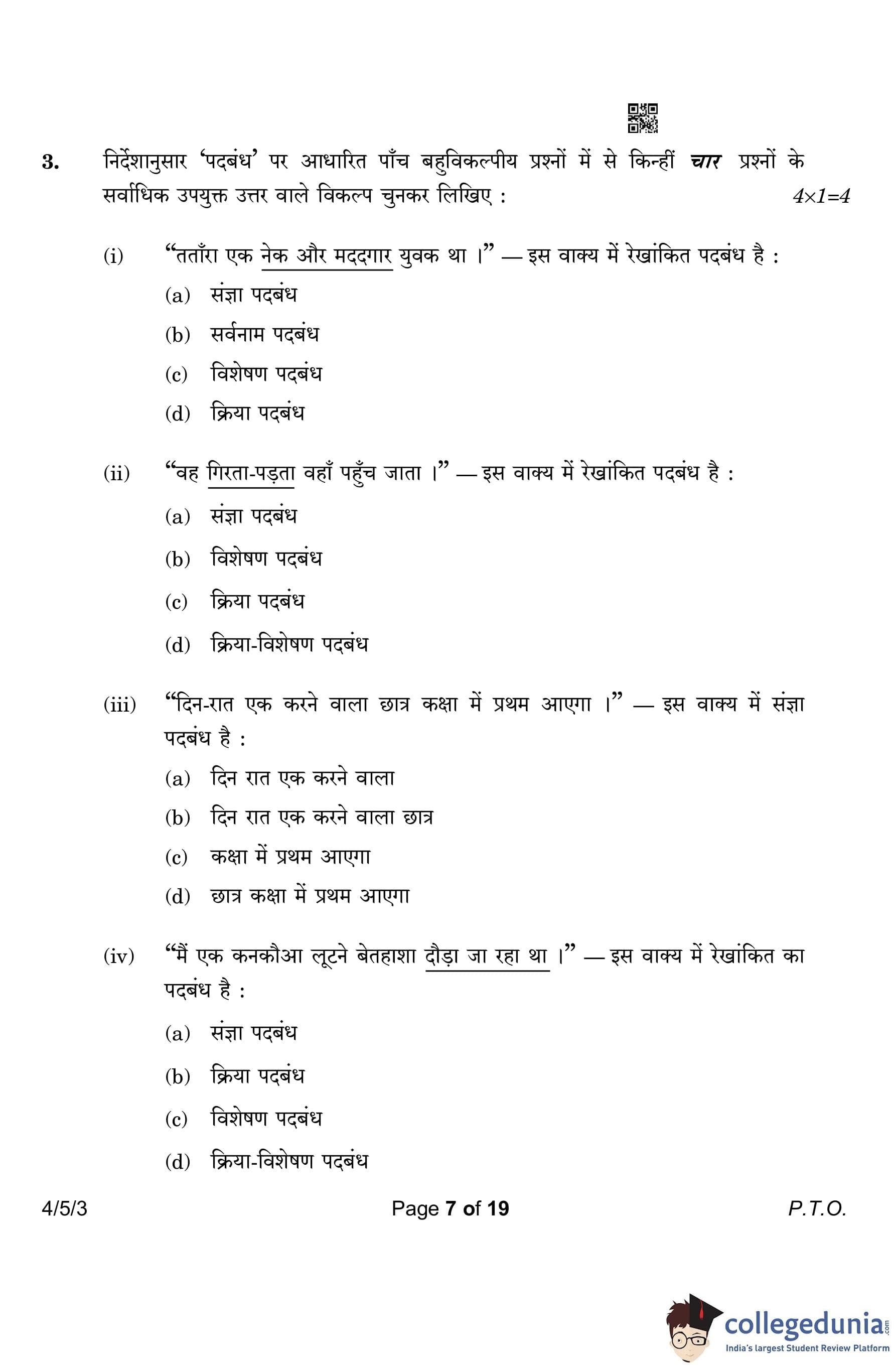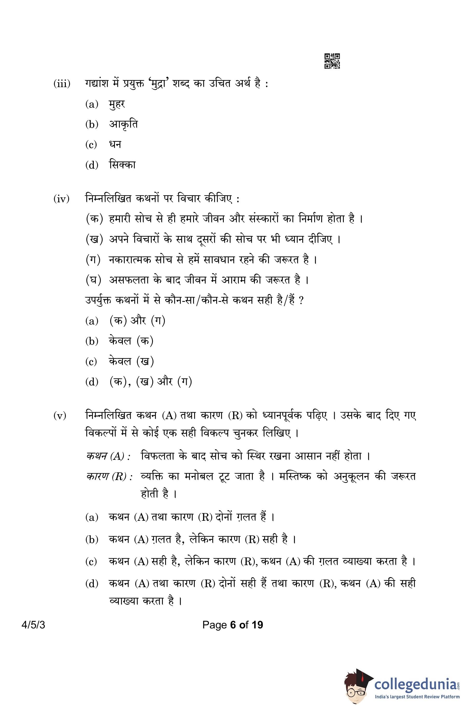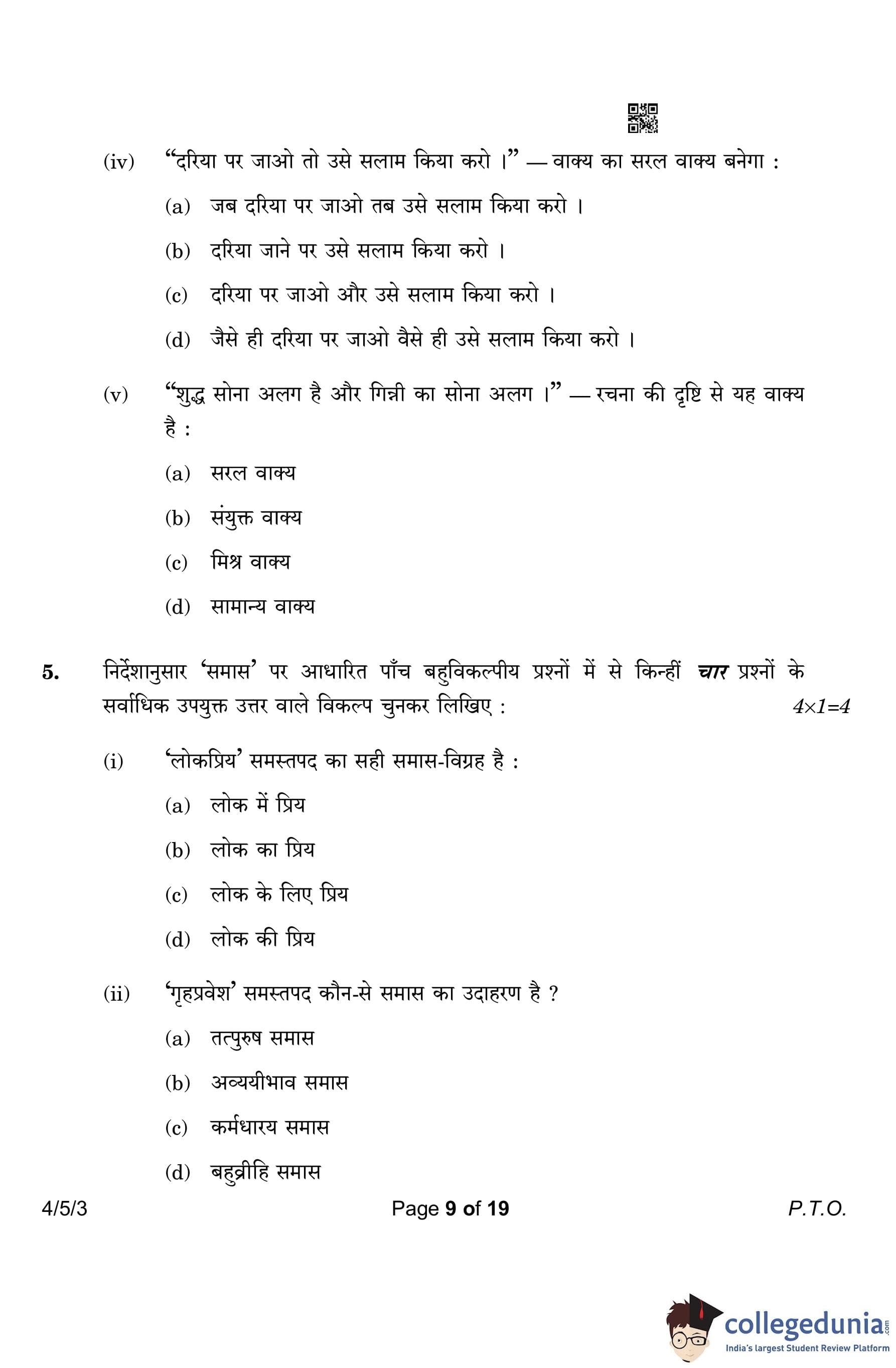 CBSE Class 10 Hindi B (Set 3- 4/5/3) Question Paper 2023 with Answer Key