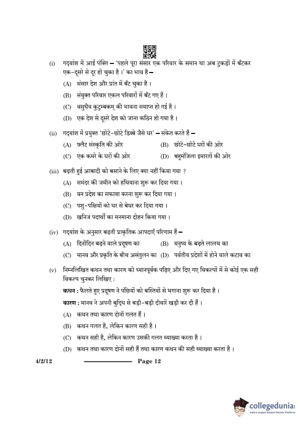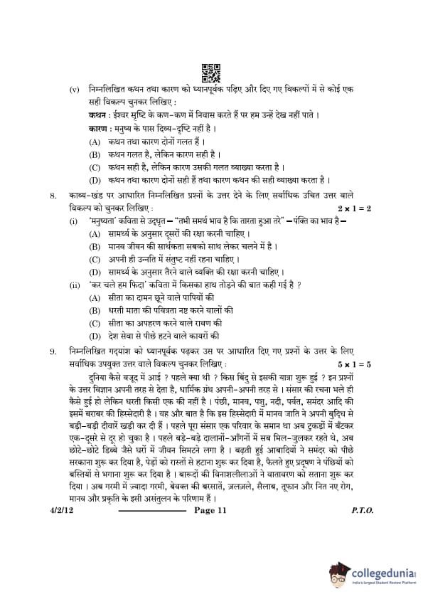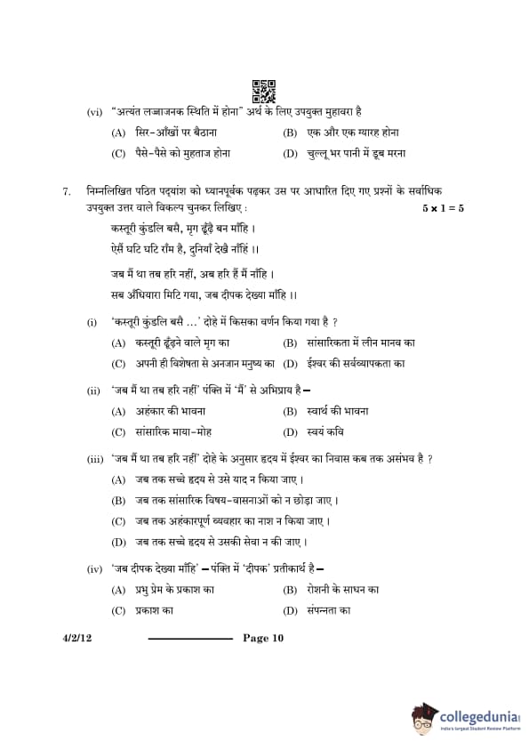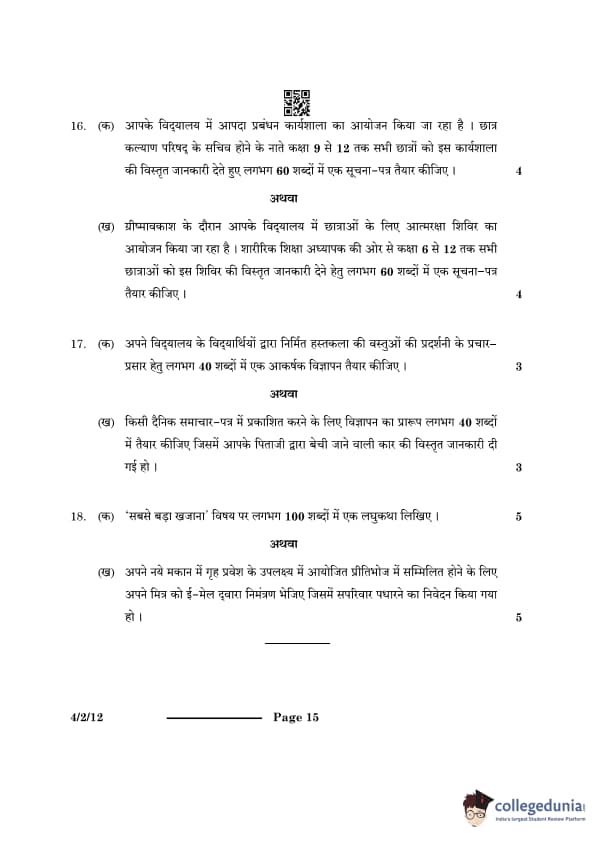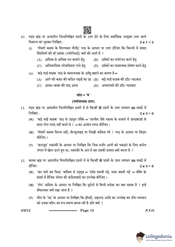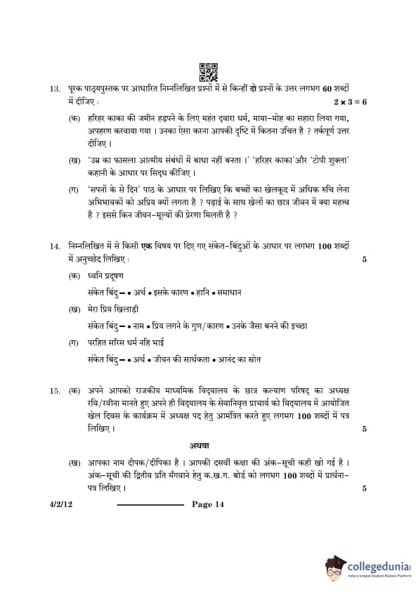 CBSE Class 10 Hindi B Question Paper 2024 PDF (Set 1- 4/2/1) is available for download here. CBSE conducted the Hindi B exam on February 21, 2024 from 10:30 AM to 1:30 PM. The total marks for the theory paper are 80. The question paper contains 20% MCQ-based questions, 40% competency-based questions, and 40% short and long answer type questions.
