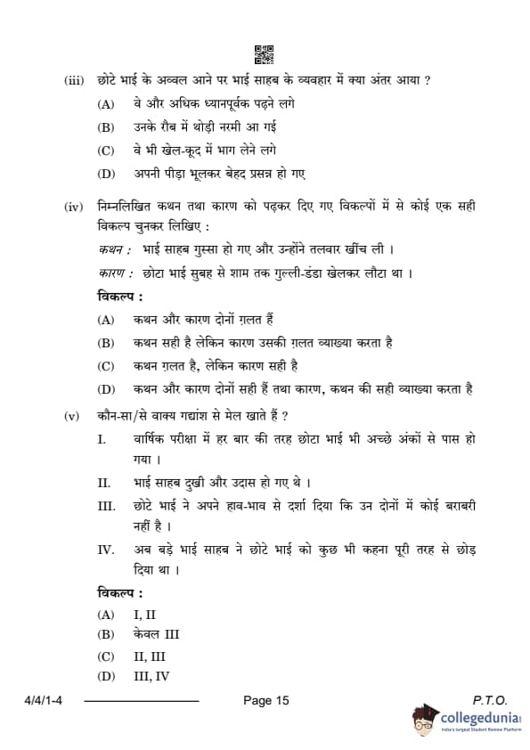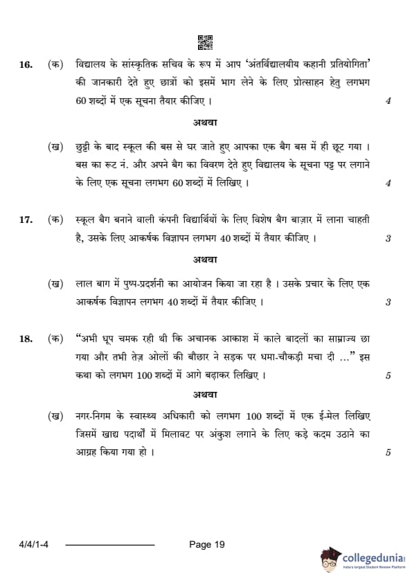 CBSE Class 10 Hindi B Question Paper 2024 (Set 1- 4/4/1) with Answer Key