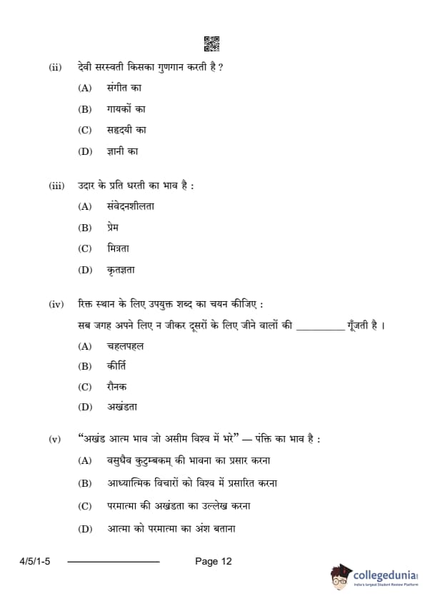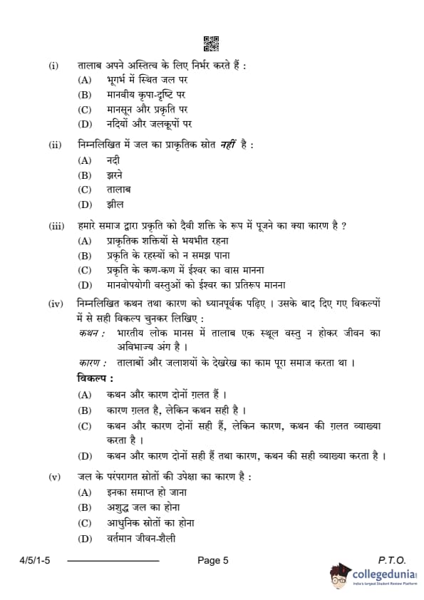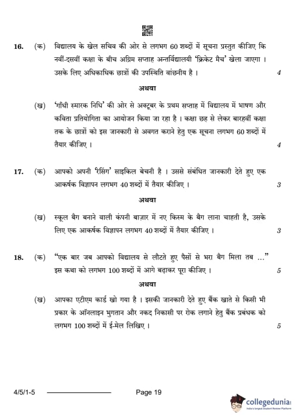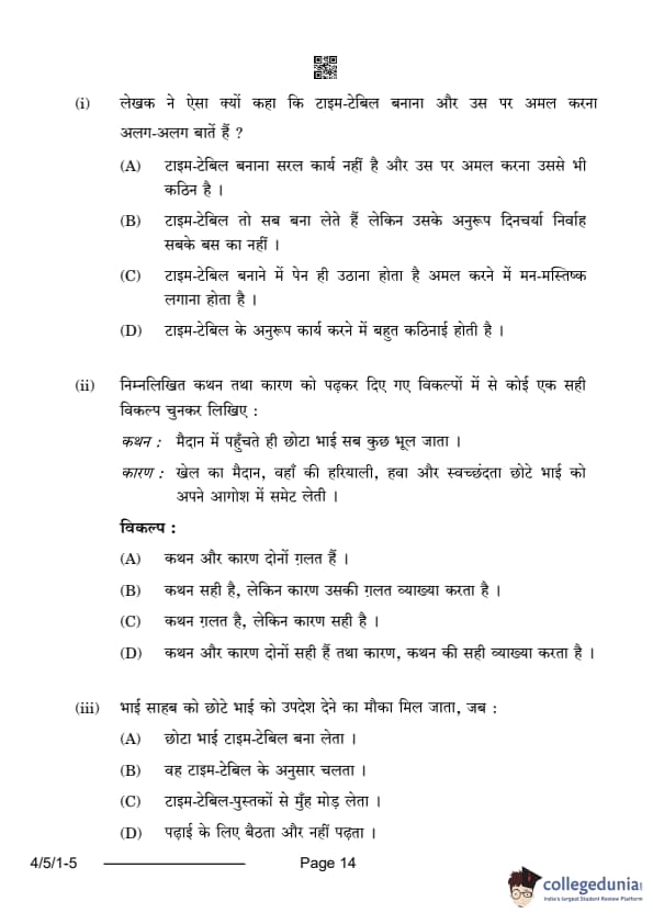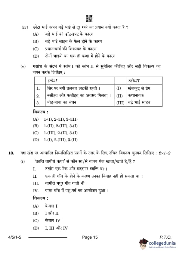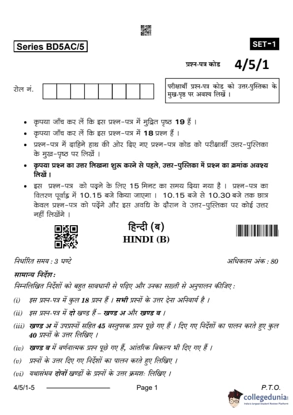 CBSE Class 10 Hindi B Question Paper 2024 PDF (Set 1- 4/5/1) is available for download here. CBSE conducted the Hindi B exam on February 21, 2024 from 10:30 AM to 1:30 PM. The total marks for the theory paper are 80. The question paper contains 20% MCQ-based questions, 40% competency-based questions, and 40% short and long answer type questions.