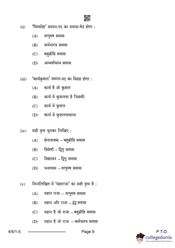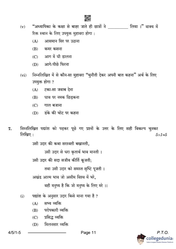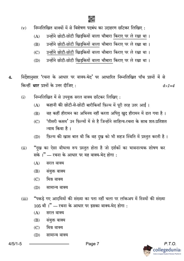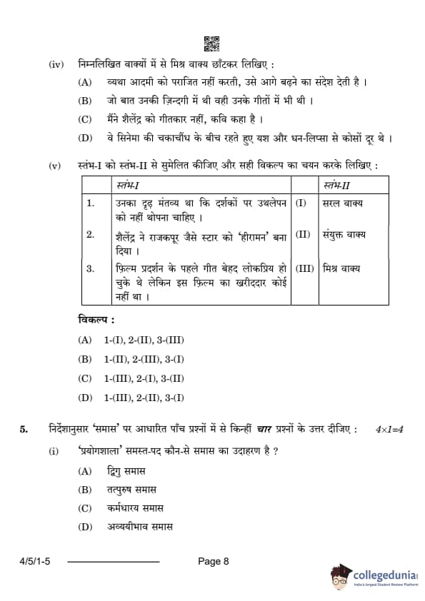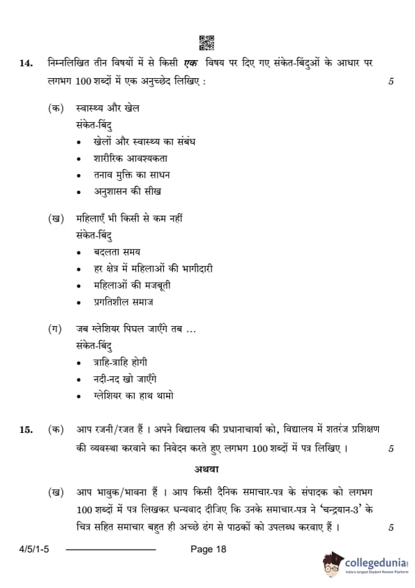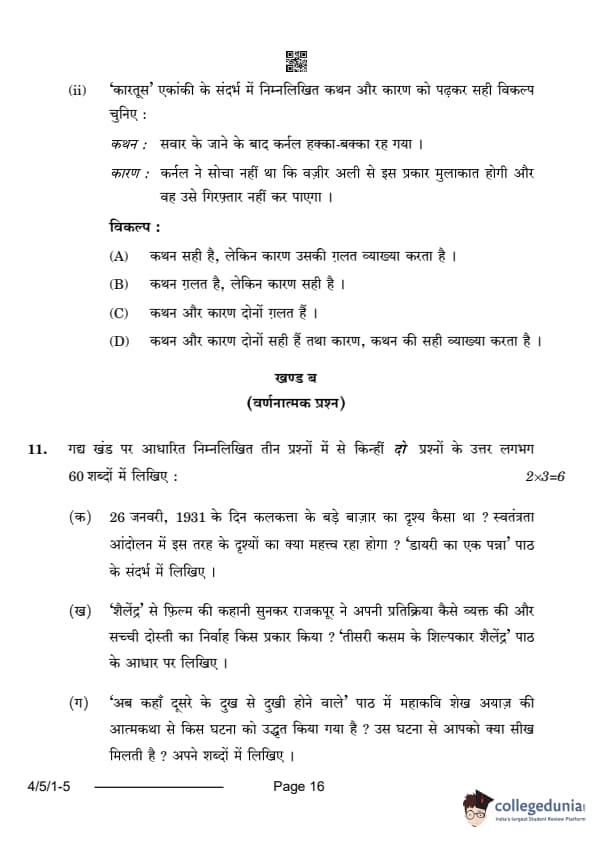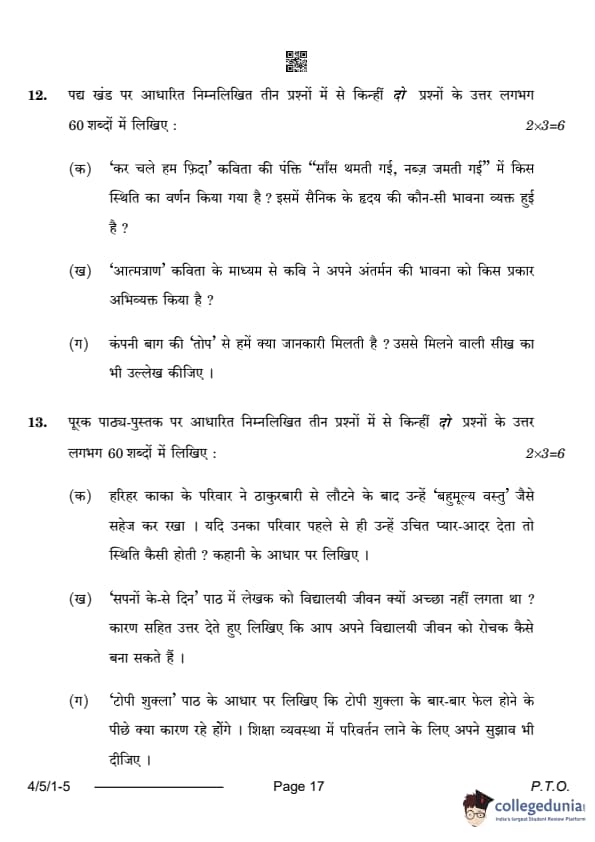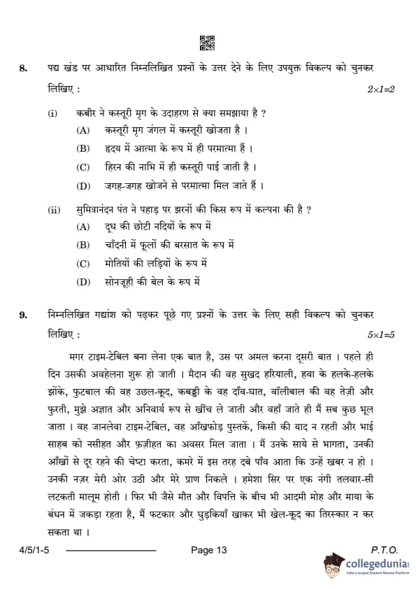CBSE Class 10 Hindi B Question Paper 2024 (Set 1- 4/5/1) with Answer Key