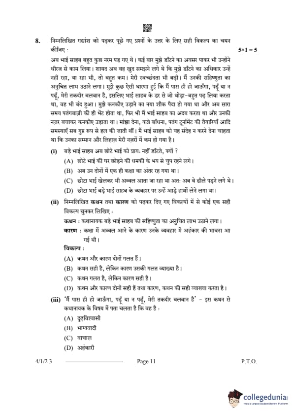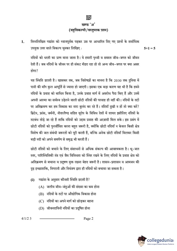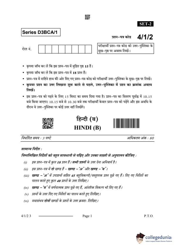 CBSE Class 10 Hindi B Question Paper 2024 PDF (Set 2- 4/1/2) is available for download here. CBSE conducted the Hindi B exam on February 21, 2024 from 10:30 AM to 1:30 PM. The total marks for the theory paper are 80. The question paper contains 20% MCQ-based questions, 40% competency-based questions, and 40% short and long answer type questions.