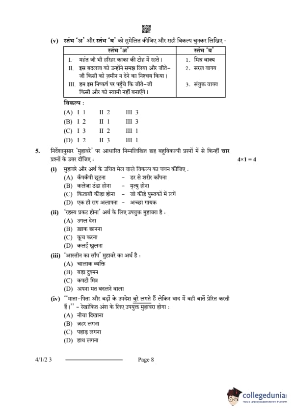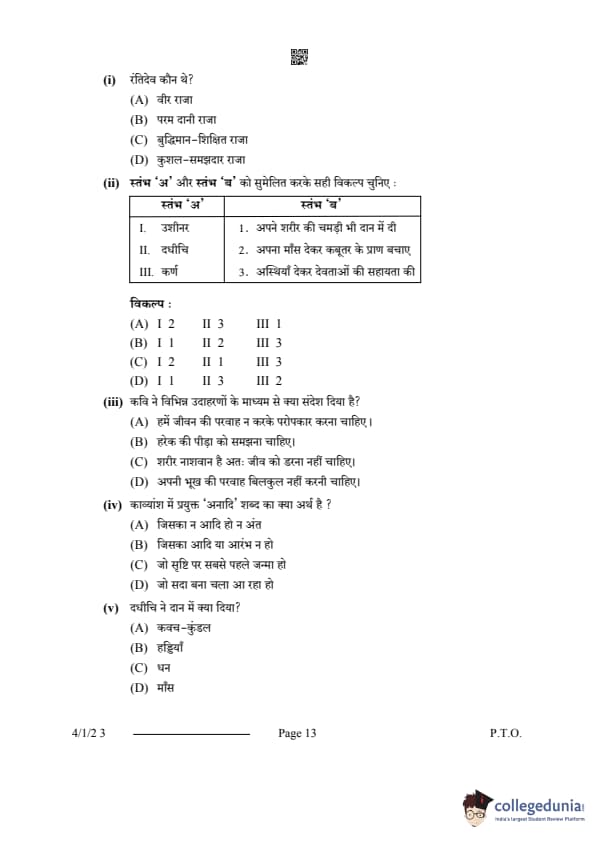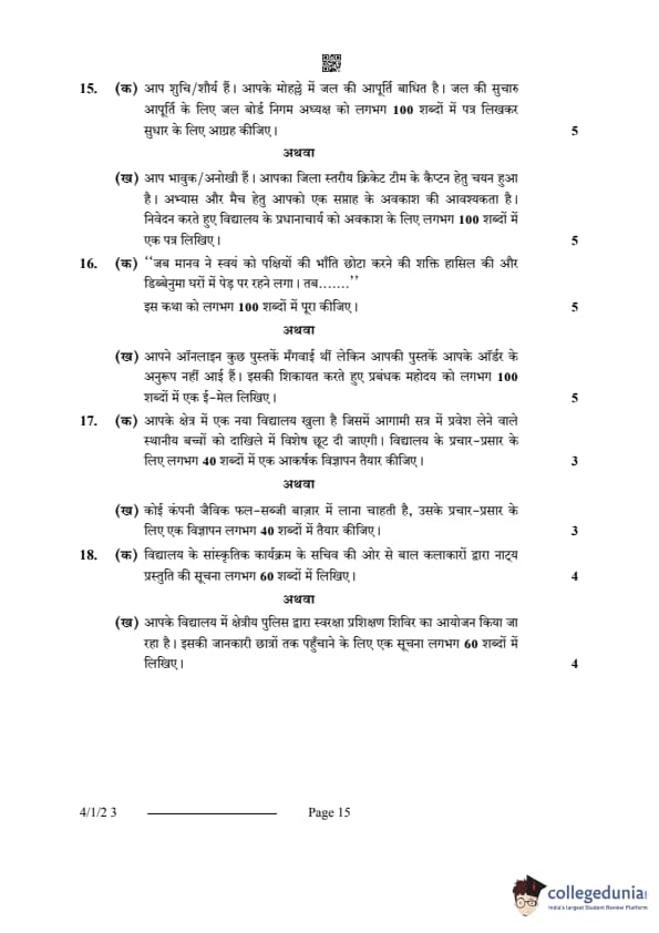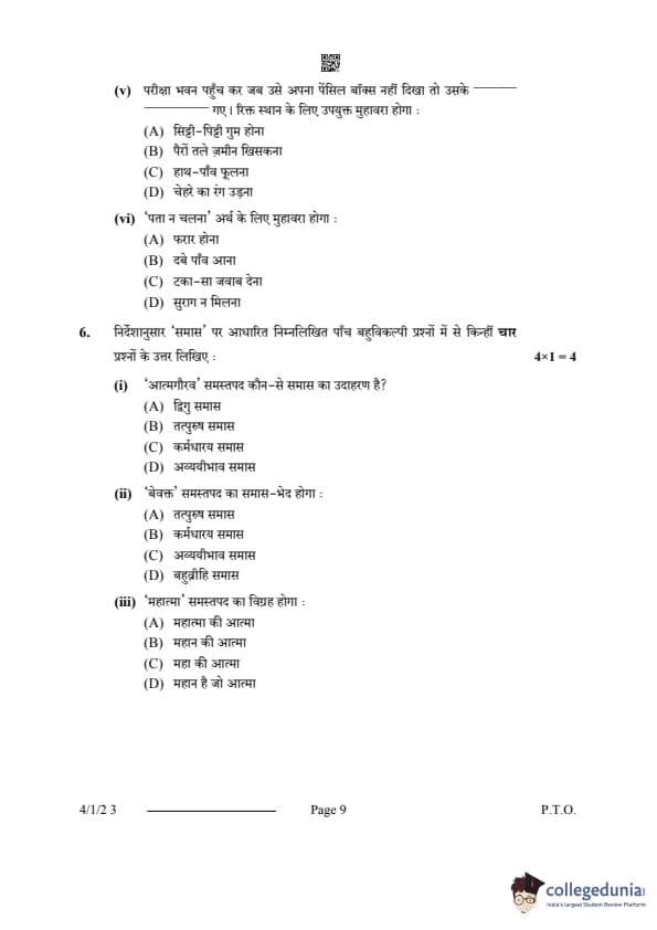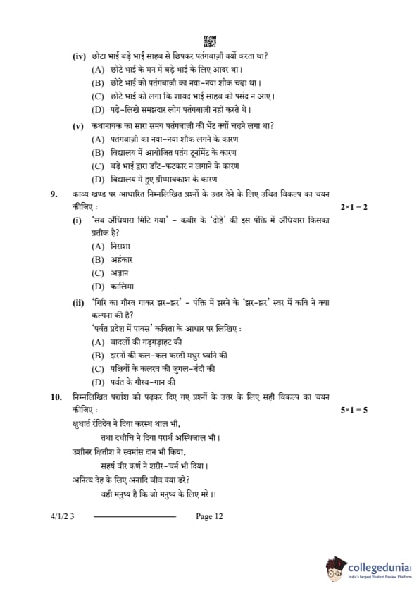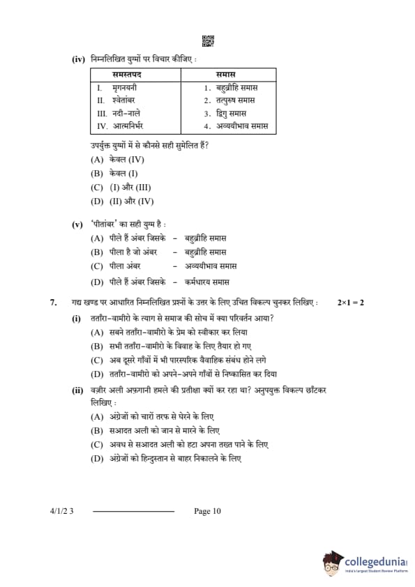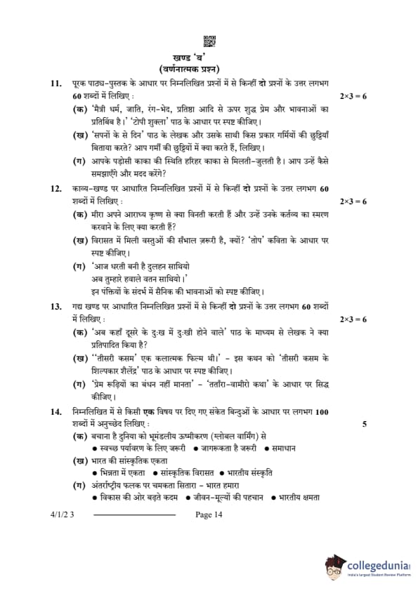 CBSE Class 10 Hindi B Question Paper 2024 (Set 2- 4/1/2) with Answer Key