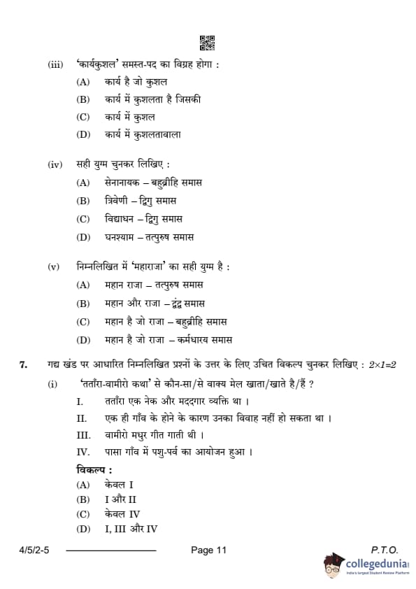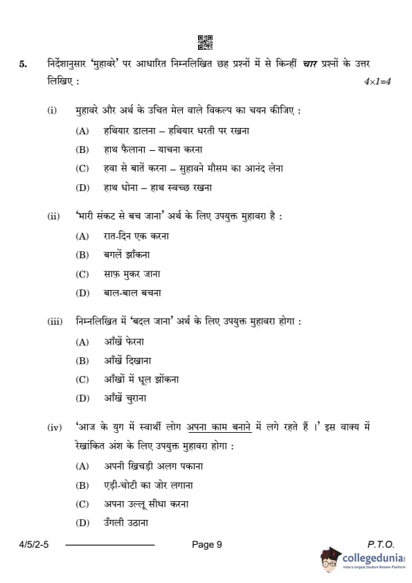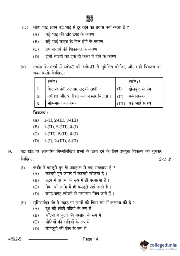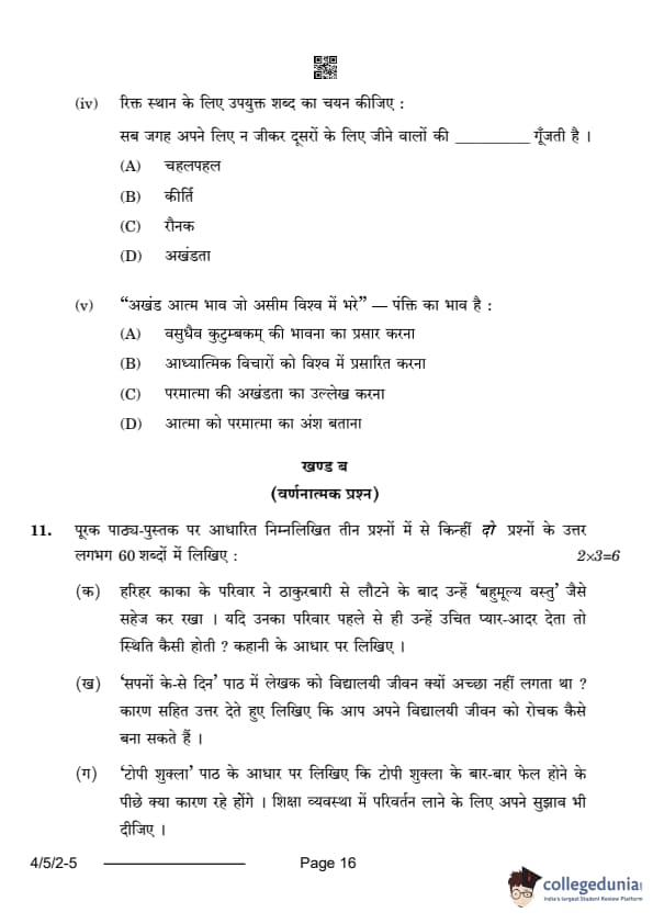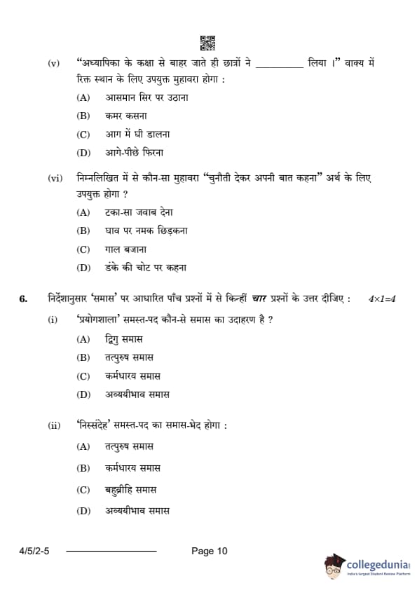 CBSE Class 10 Hindi B Question Paper 2024 (Set 2- 4/5/2) with Answer Key