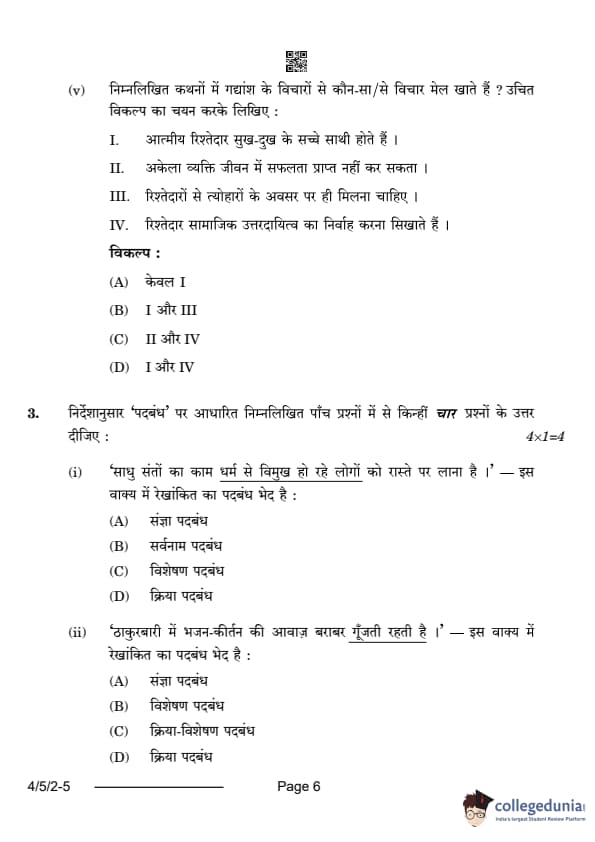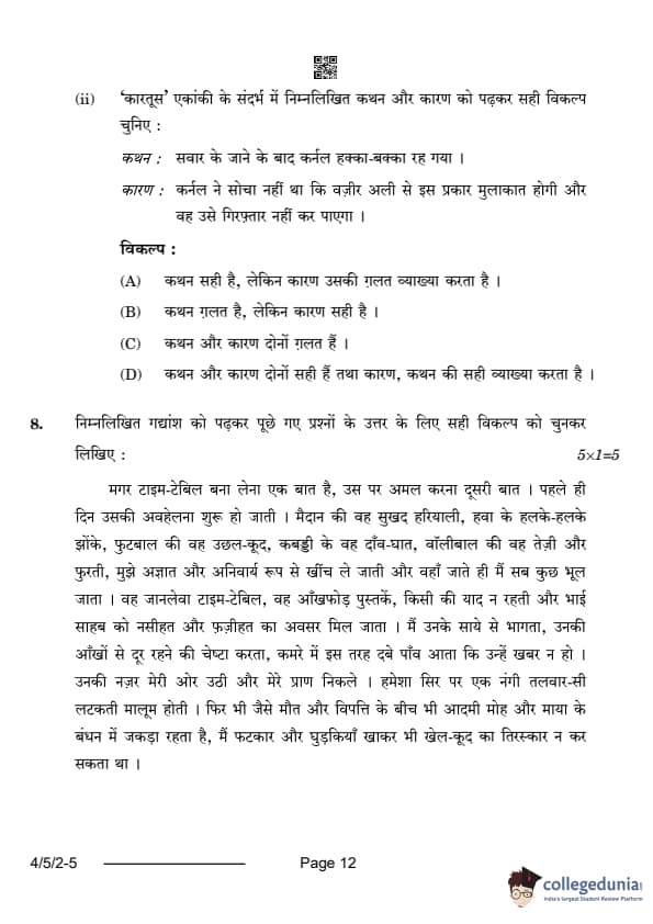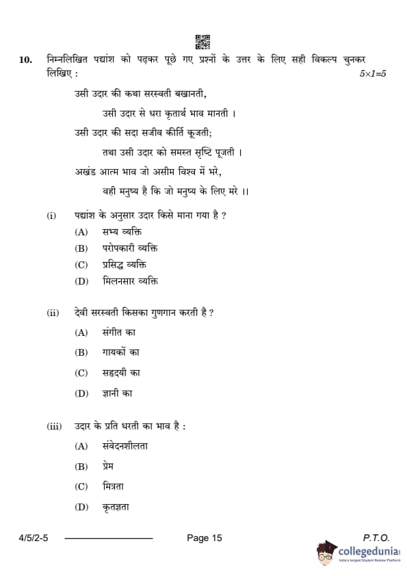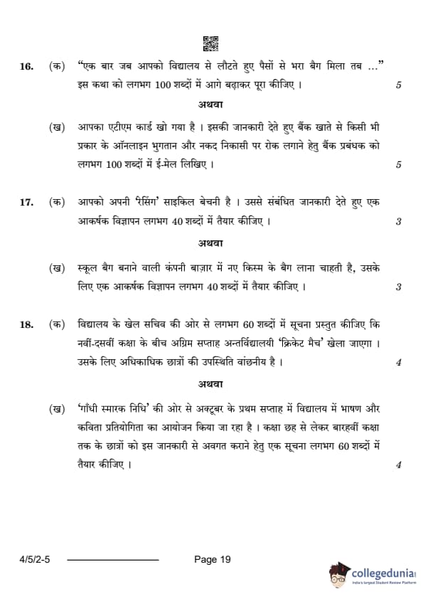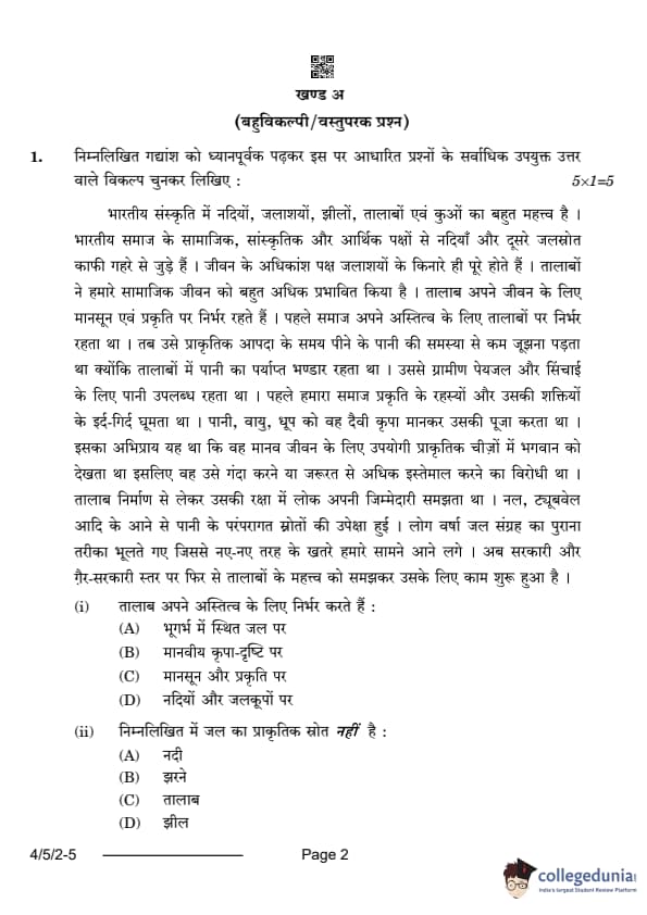 CBSE Class 10 Hindi B Question Paper 2024 PDF (Set 2- 4/5/2) is available for download here. CBSE conducted the Hindi B exam on February 21, 2024 from 10:30 AM to 1:30 PM. The total marks for the theory paper are 80. The question paper contains 20% MCQ-based questions, 40% competency-based questions, and 40% short and long answer type questions.