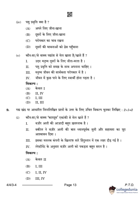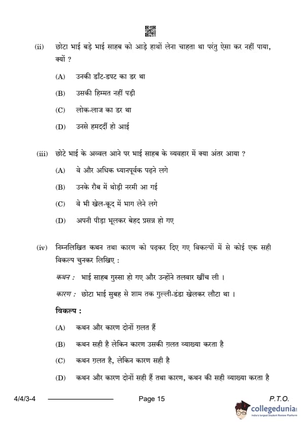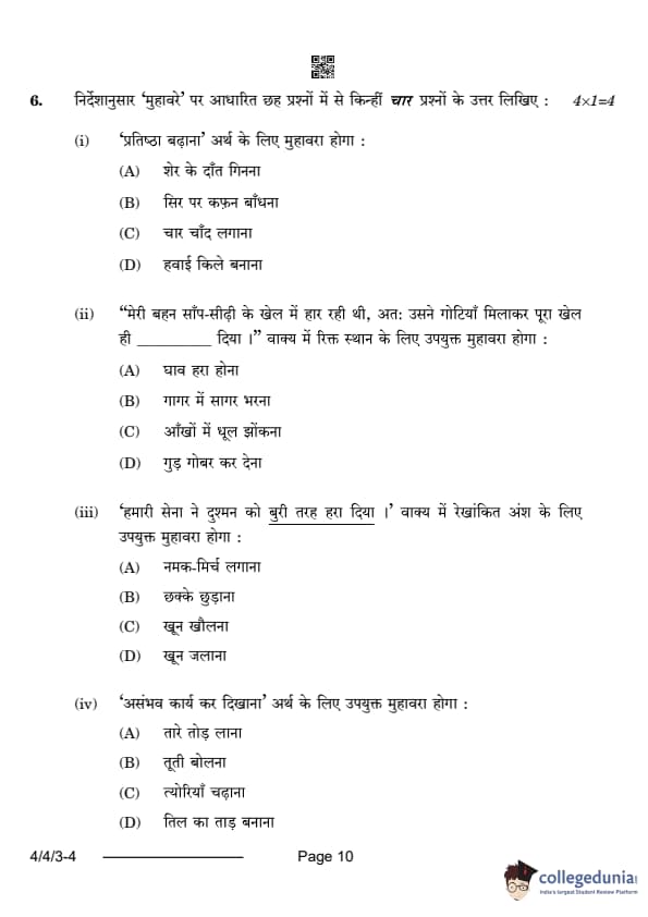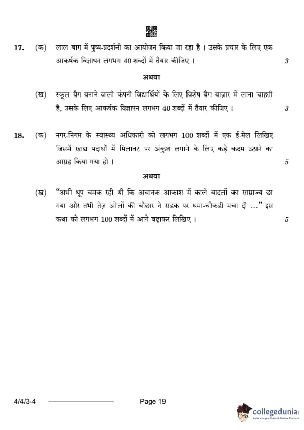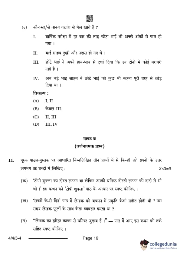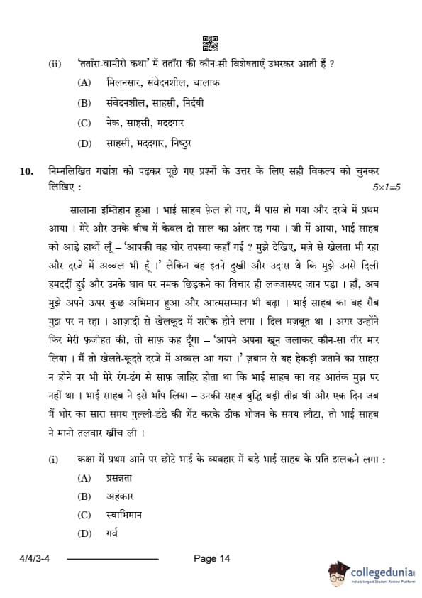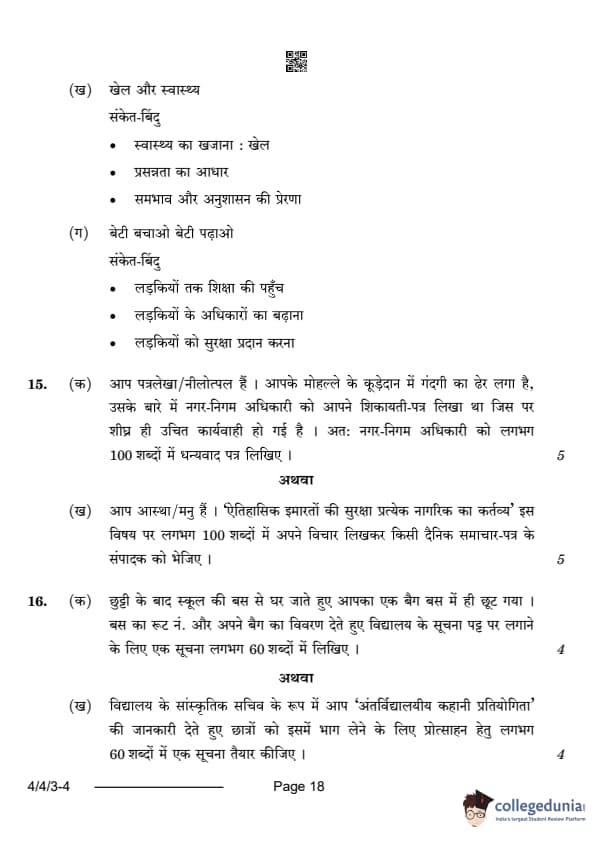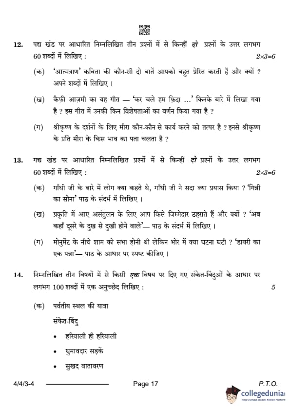 CBSE Class 10 Hindi B Question Paper 2024 (Set 3- 4/4/3) with Answer Key