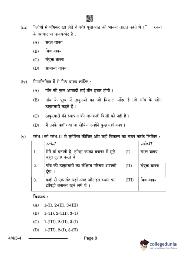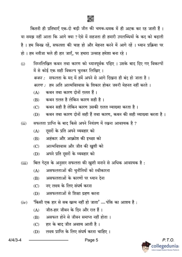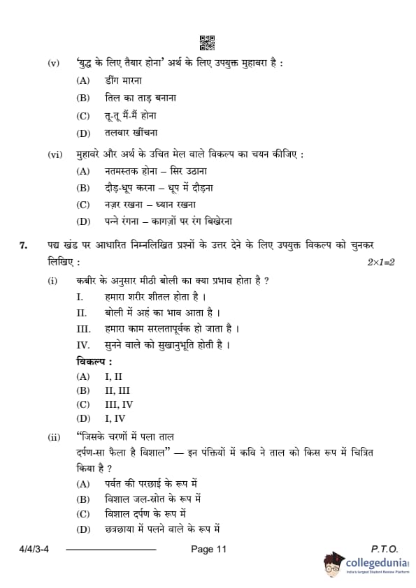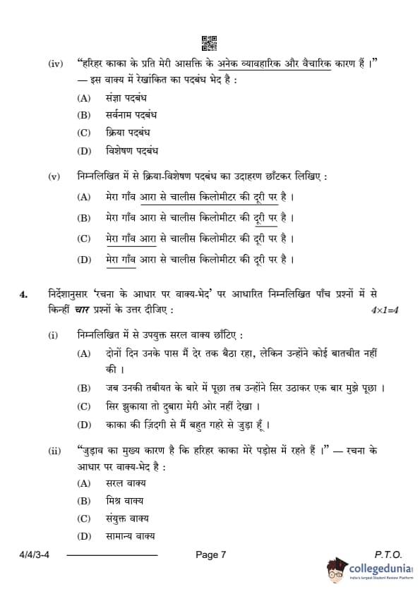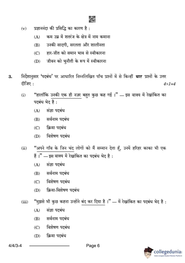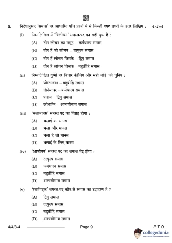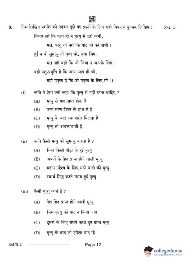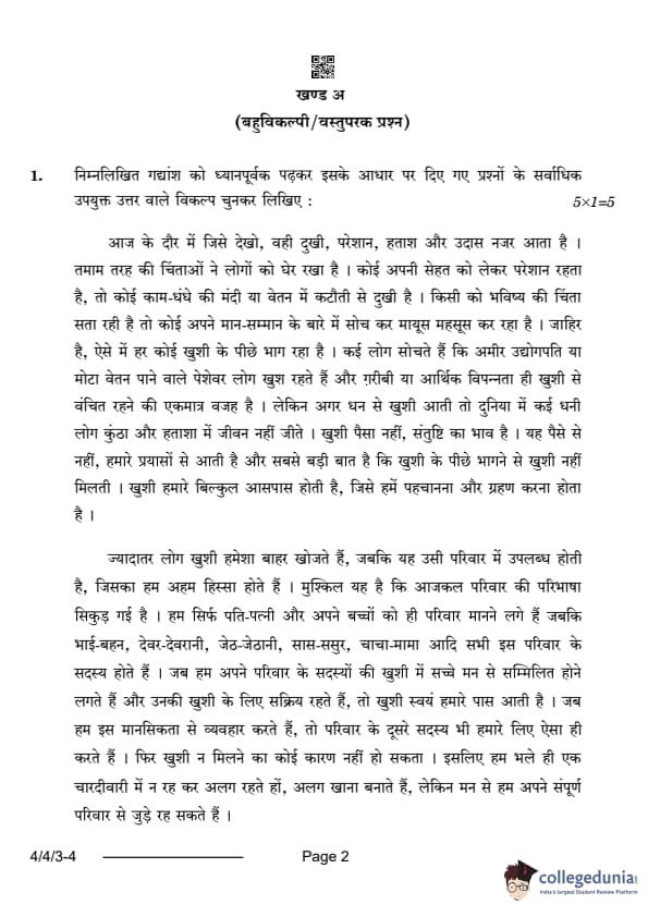 CBSE Class 10 Hindi B Question Paper 2024 (Set 3- 4/4/3) with Answer Key