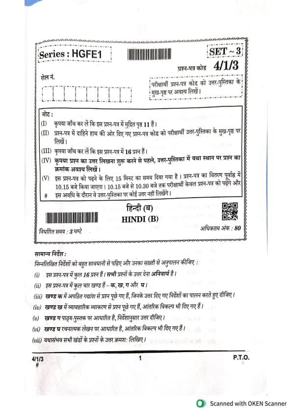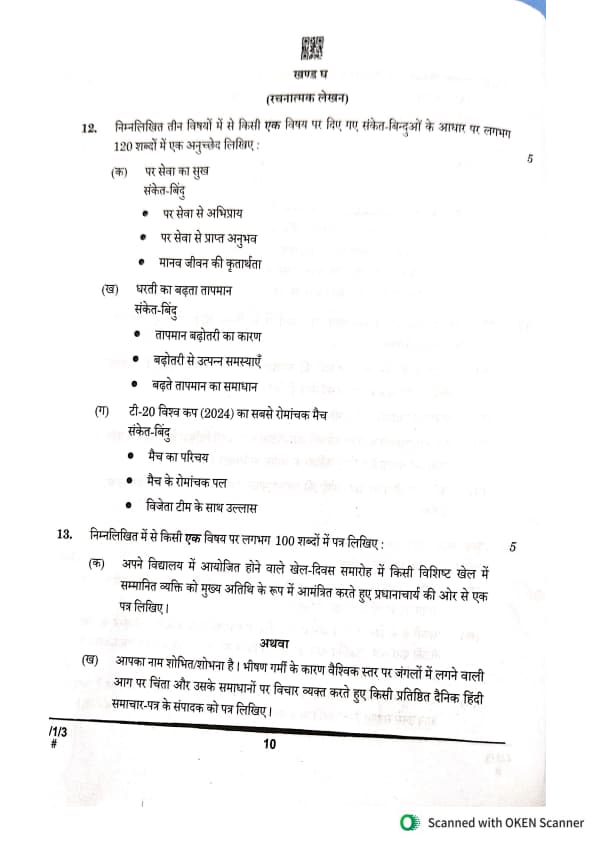 The question paper will include multiple-choice questions, short answers, and long answers to assess students' reading understanding, writing ability, and grammatical usage. After the examination, the CBSE Class 10th Hindi Examination question paper and solution PDF will be available for download here.