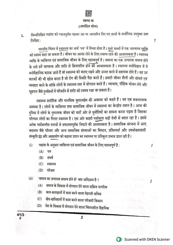 1. गद्यांश के अनुसार व्यक्तिगत एवं सामाजिक जीवन के लिए महत्वपूर्ण है: