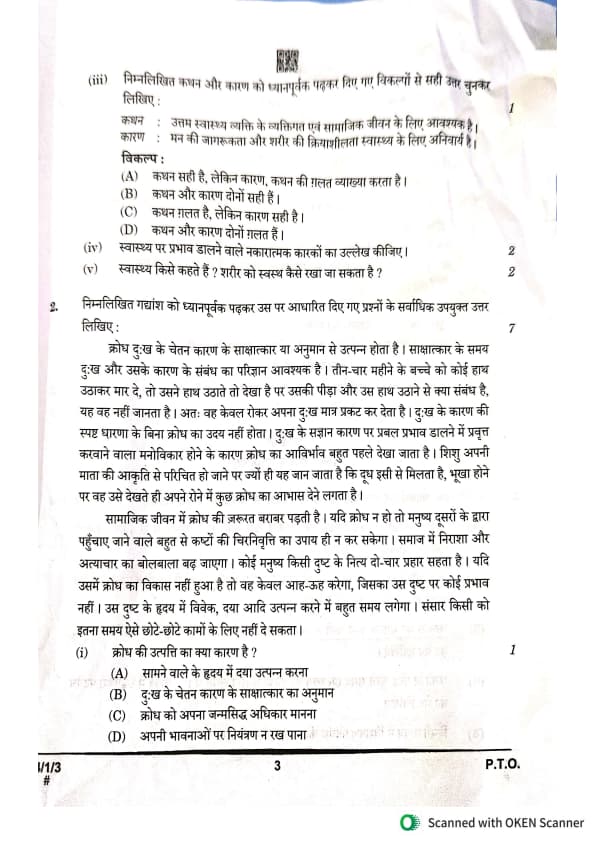 कथन : उत्तम स्वास्थ्य व्यक्ति के व्यक्तिगत एवं सामाजिक जीवन के लिए आवश्यक है।