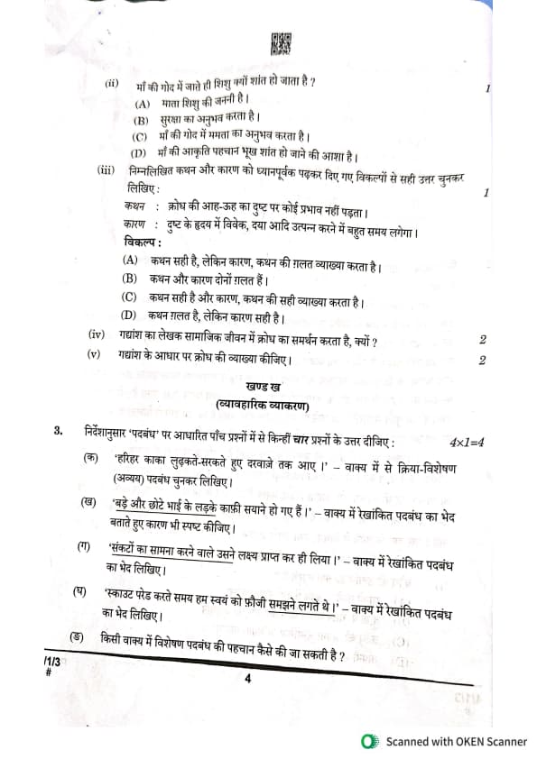 (ii) ‘क्रोधाग्नि’ समस्तपद का विग्रह करते हुए समास का नाम भी लिखिए।
