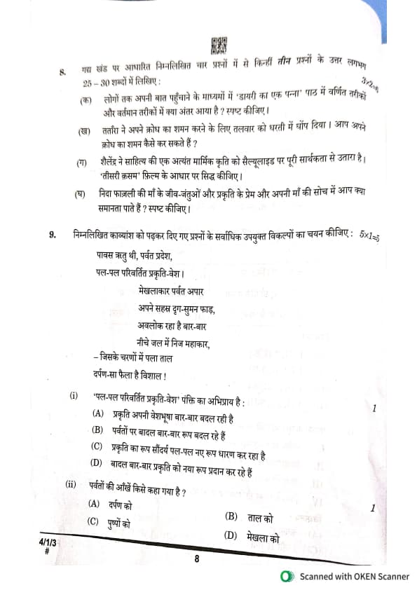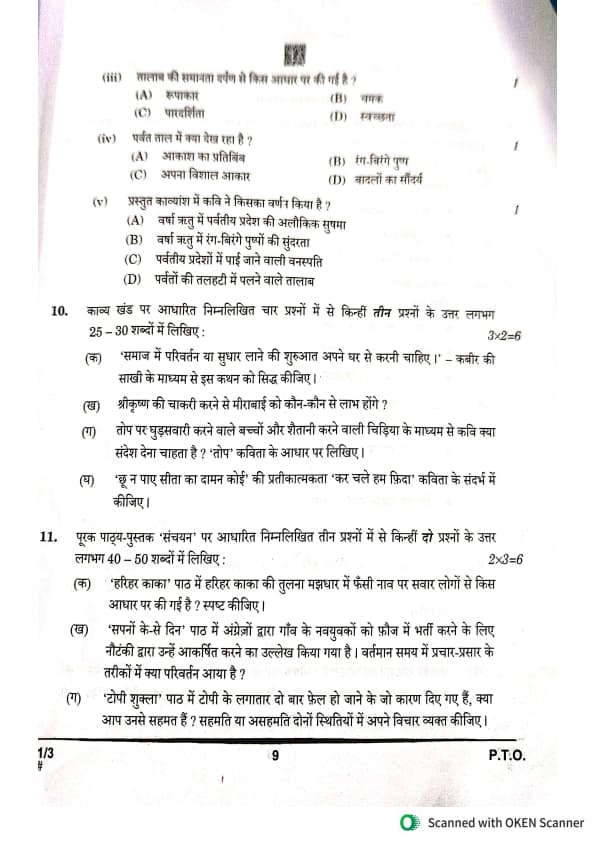 CBSE Class 10 Hindi Question Paper 2025 (Set 3) with Answer Key