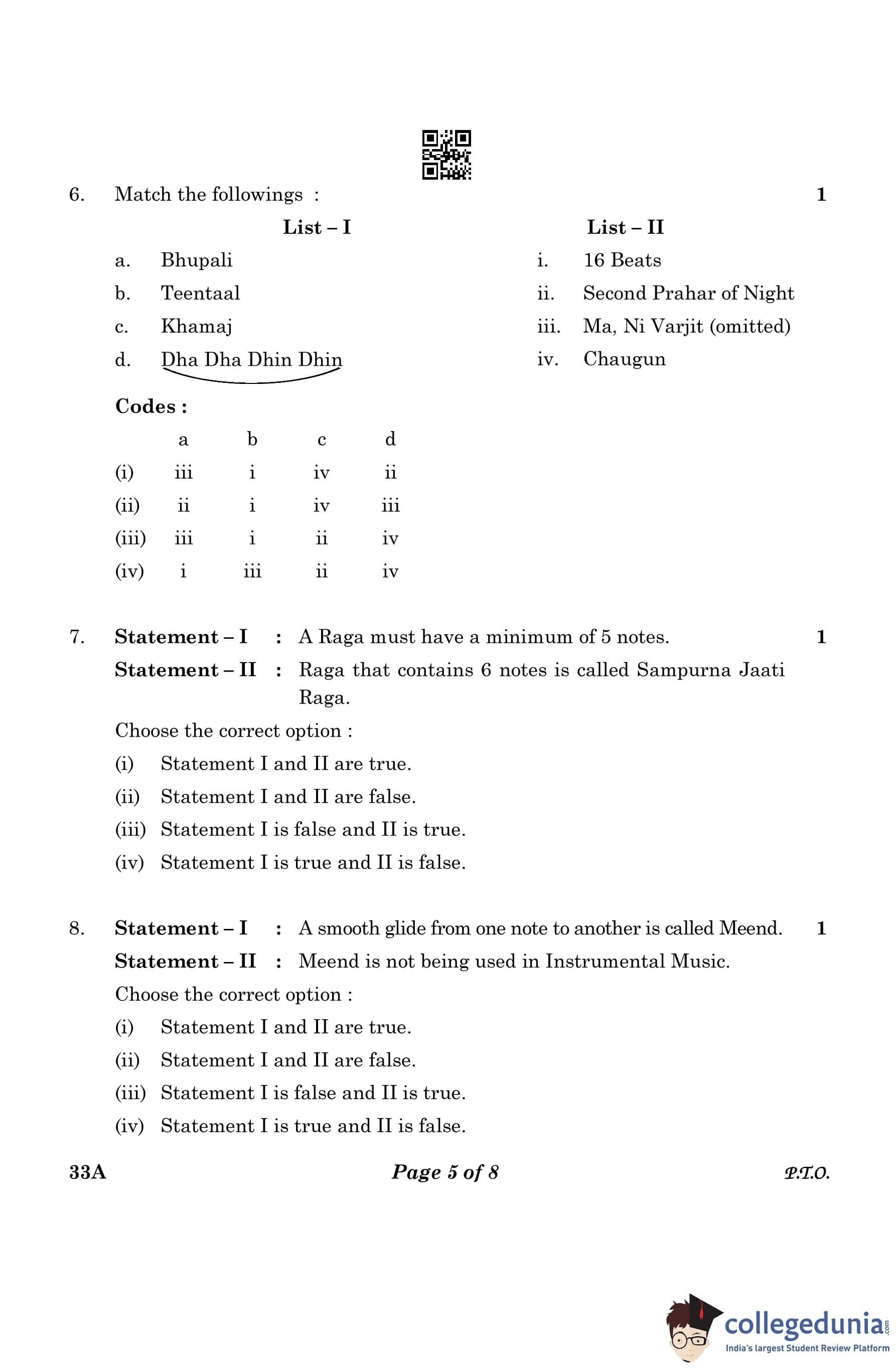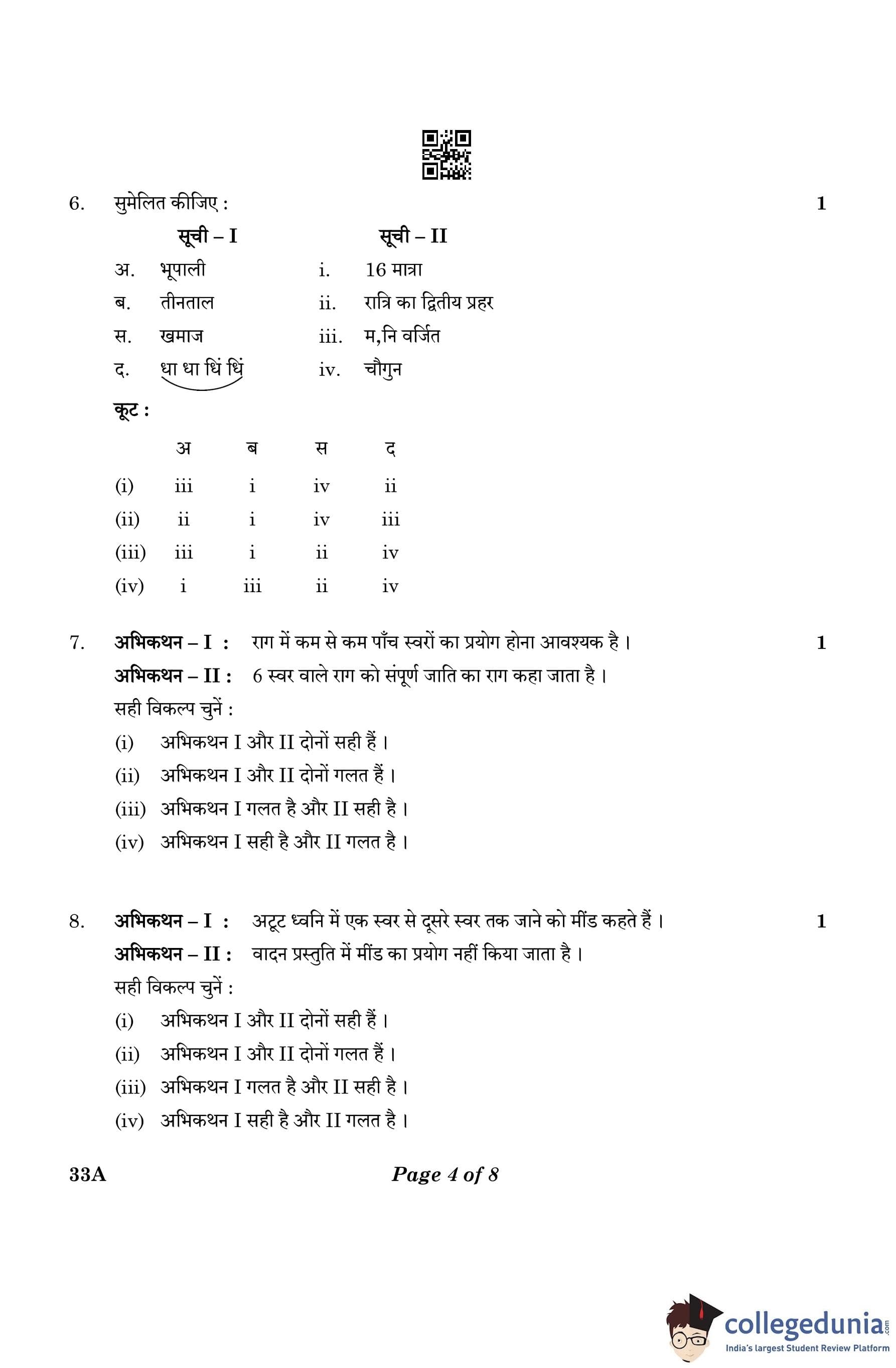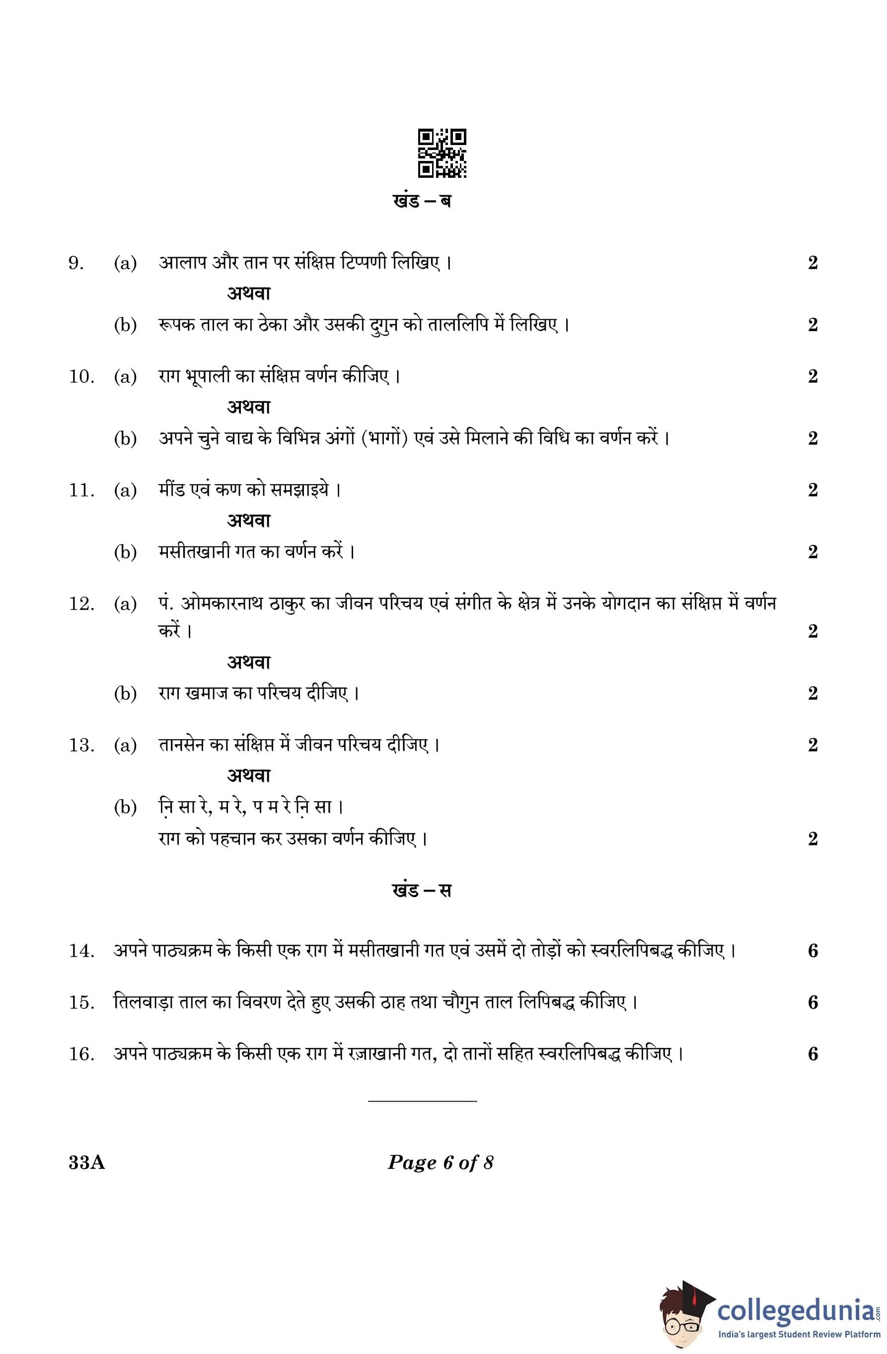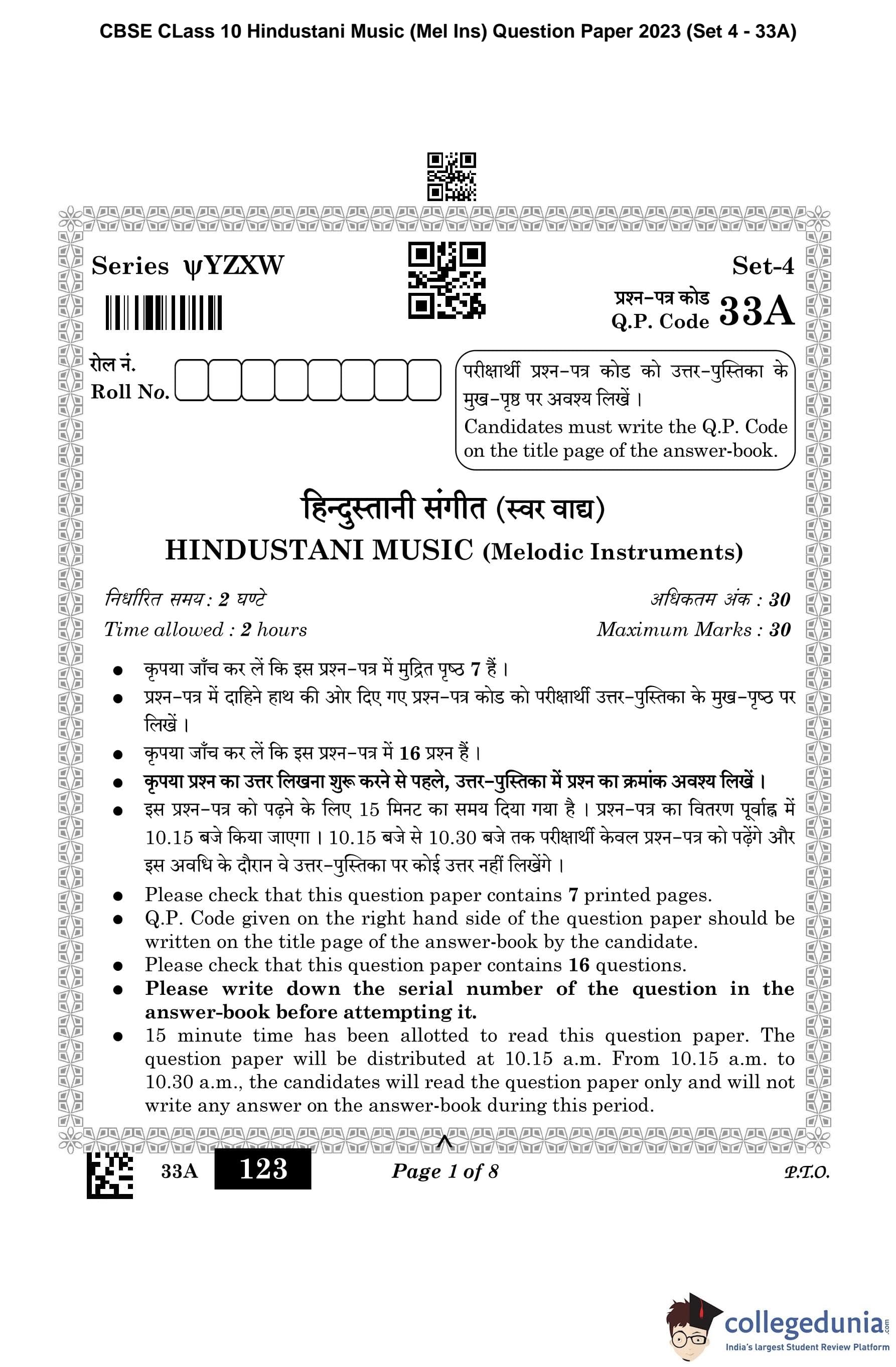 CBSE Class 10 Hindustani Music (Mel Ins) Question Paper 2023 with Answer Key