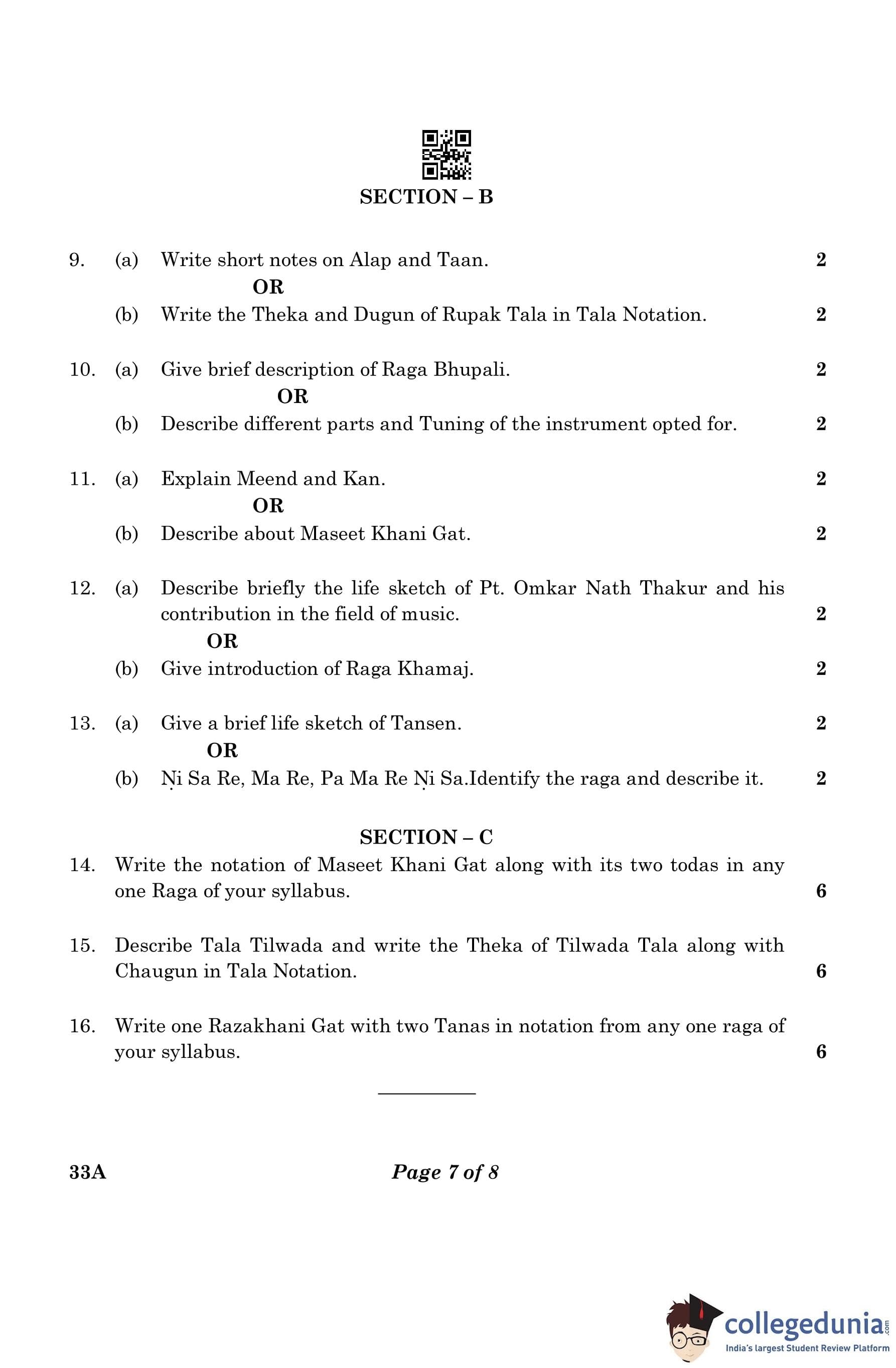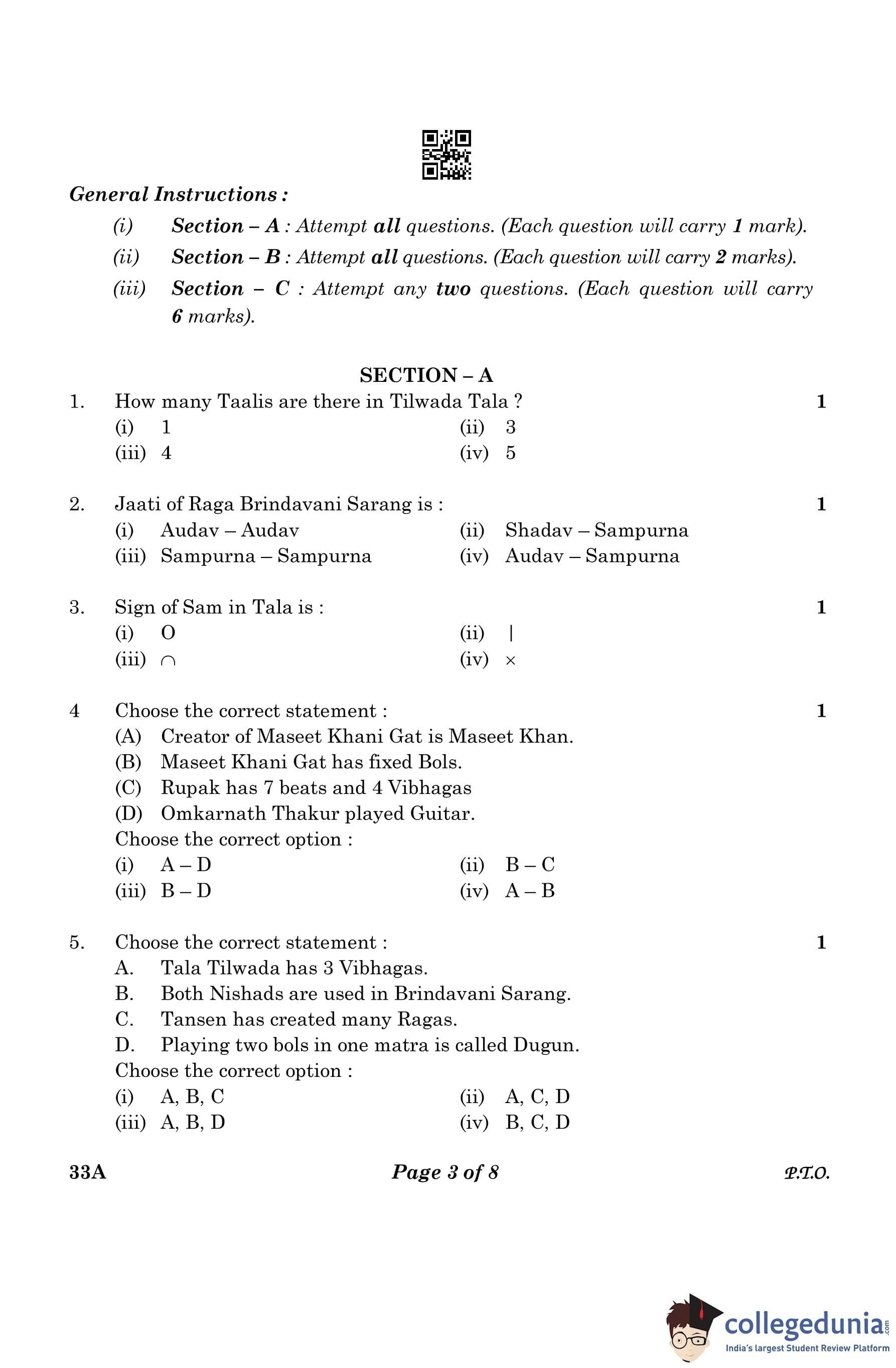 CBSE Class 10 Hindustani Music (Mel Ins) Question Paper 2023 with Answer Key pdf is available for download here. The exam was conducted by Central Board of Secondary Education on February 17, 2023. The question paper comprised a total of 16 questions divided among 3 sections.