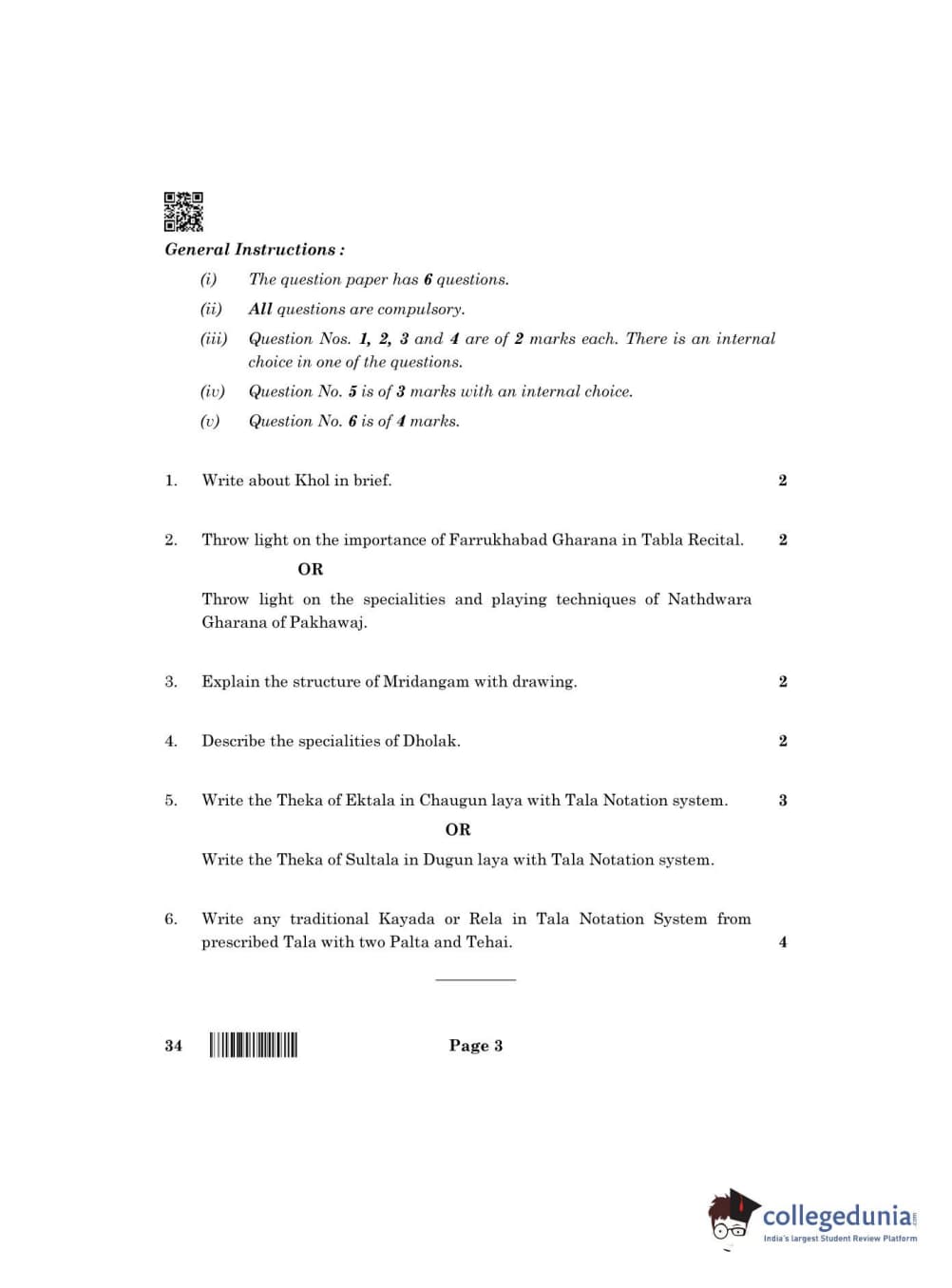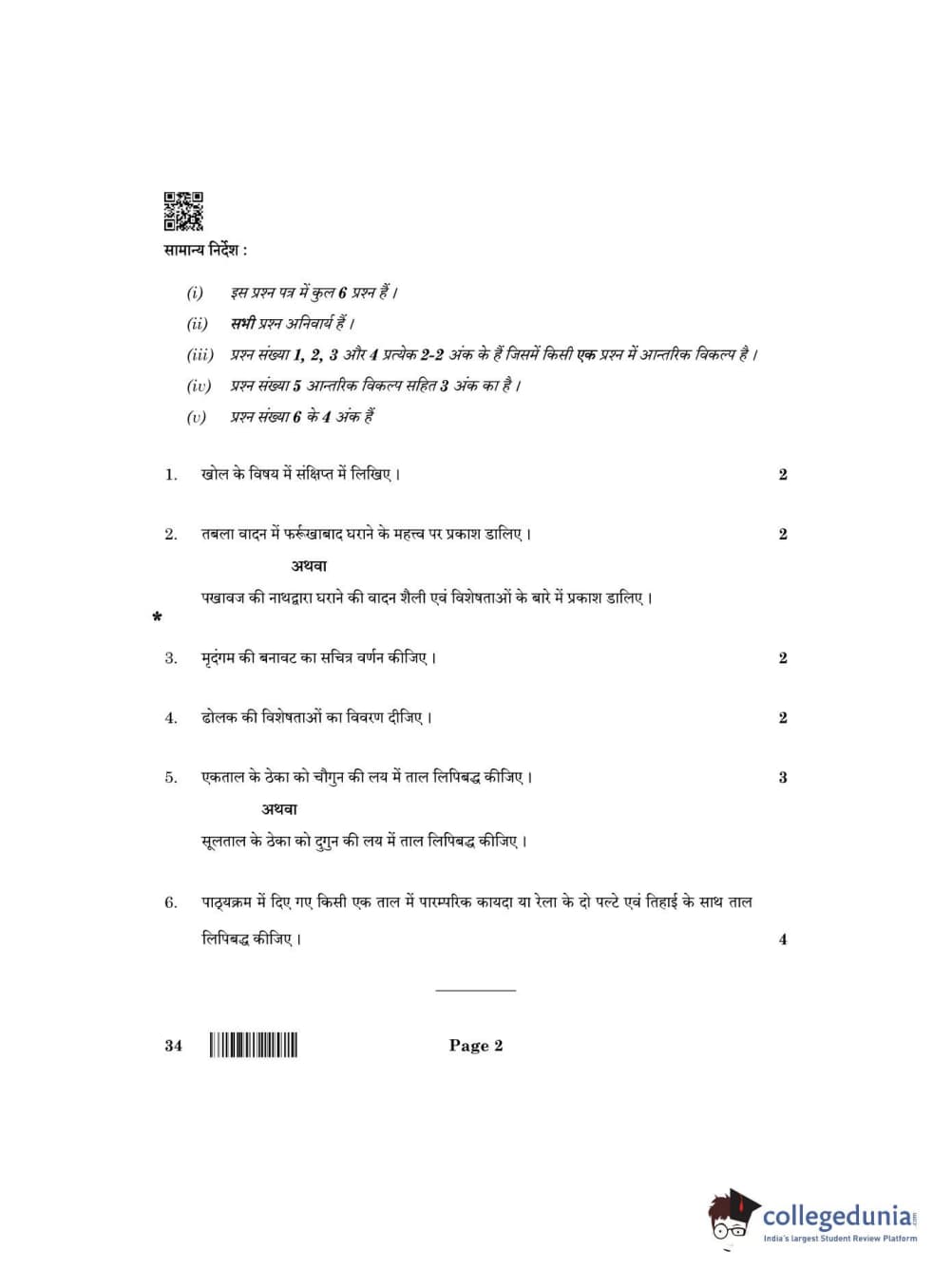 CBSE Class 10 Hindustani Music Per Ins Question Paper 2022 with Answer Key (May 4)