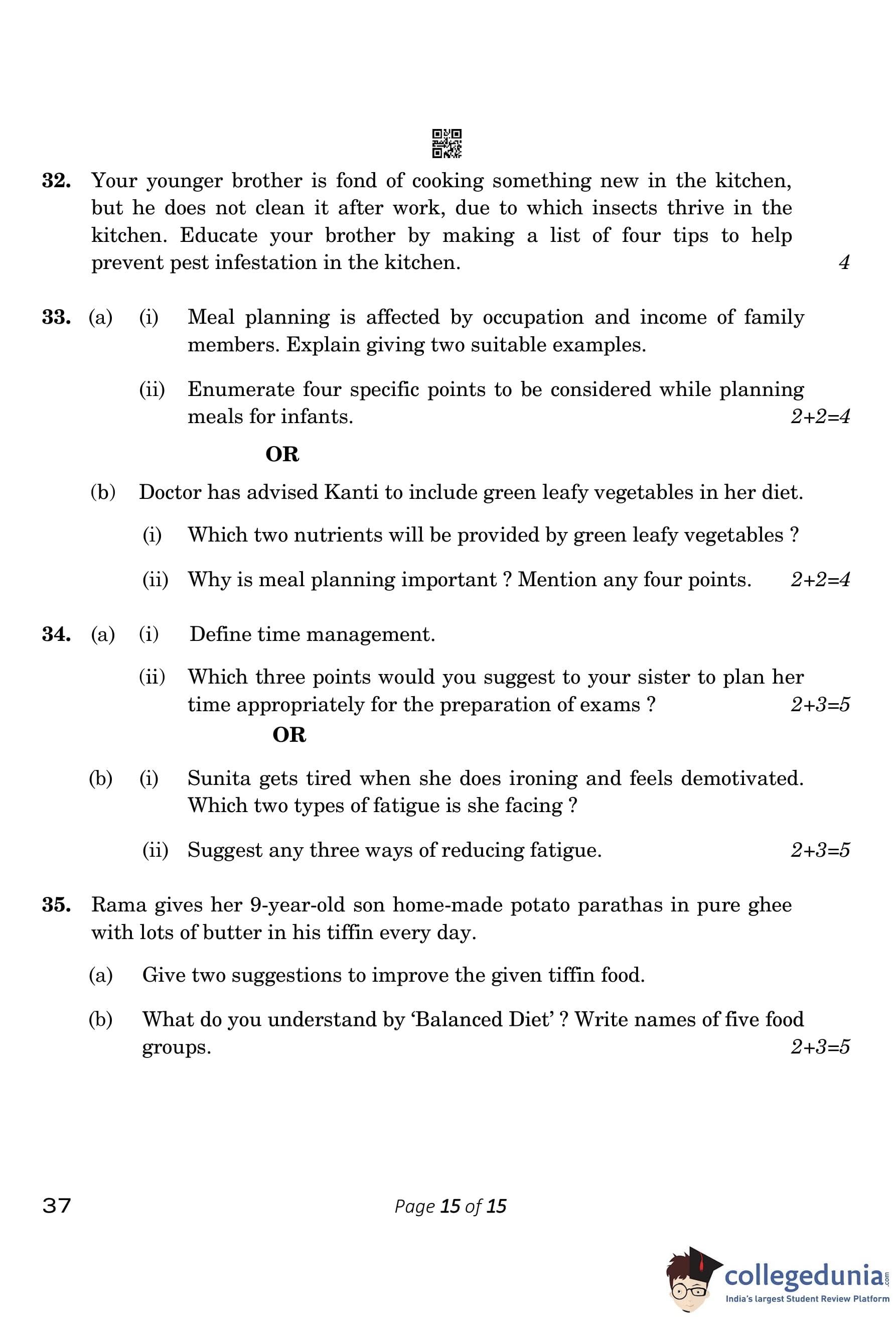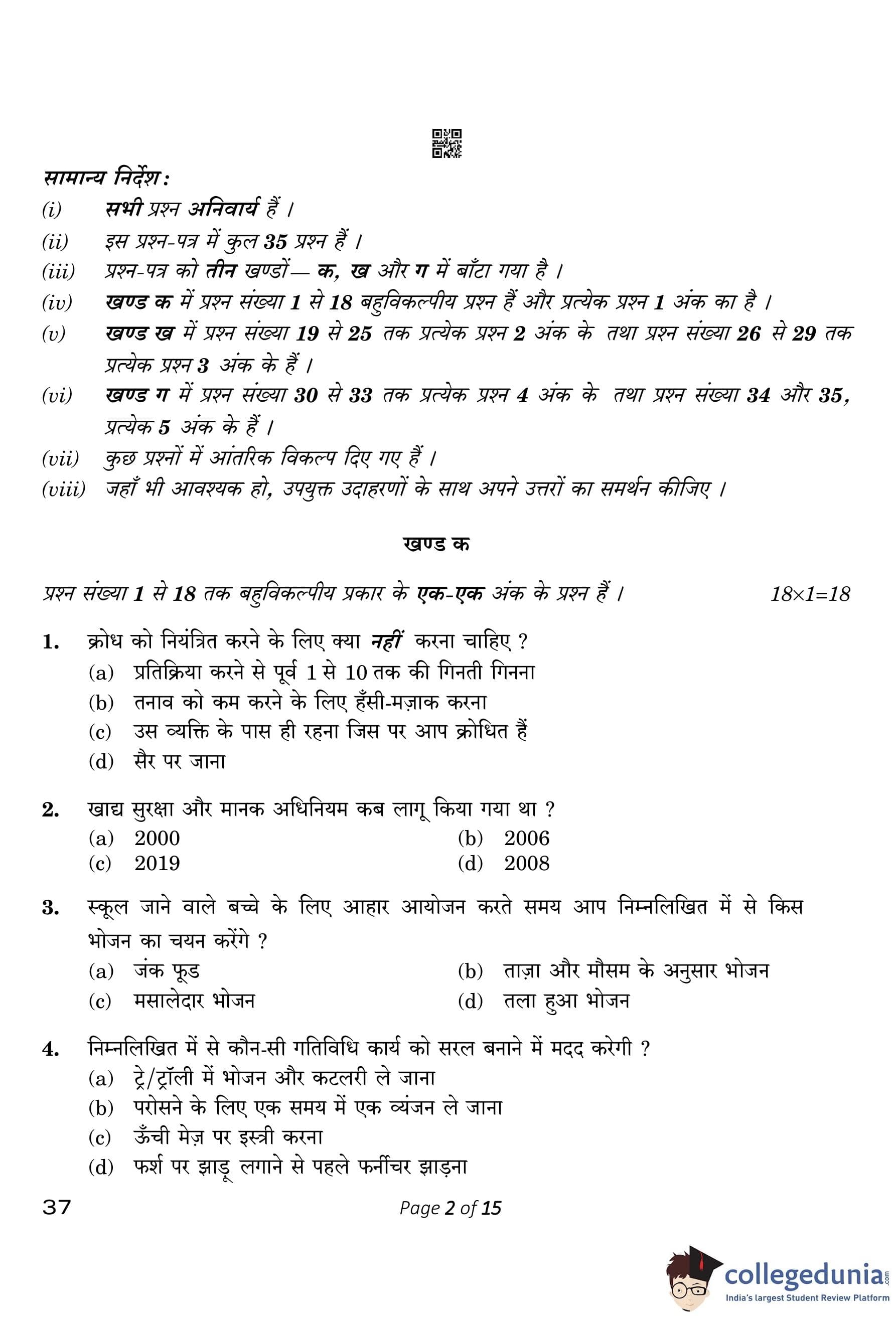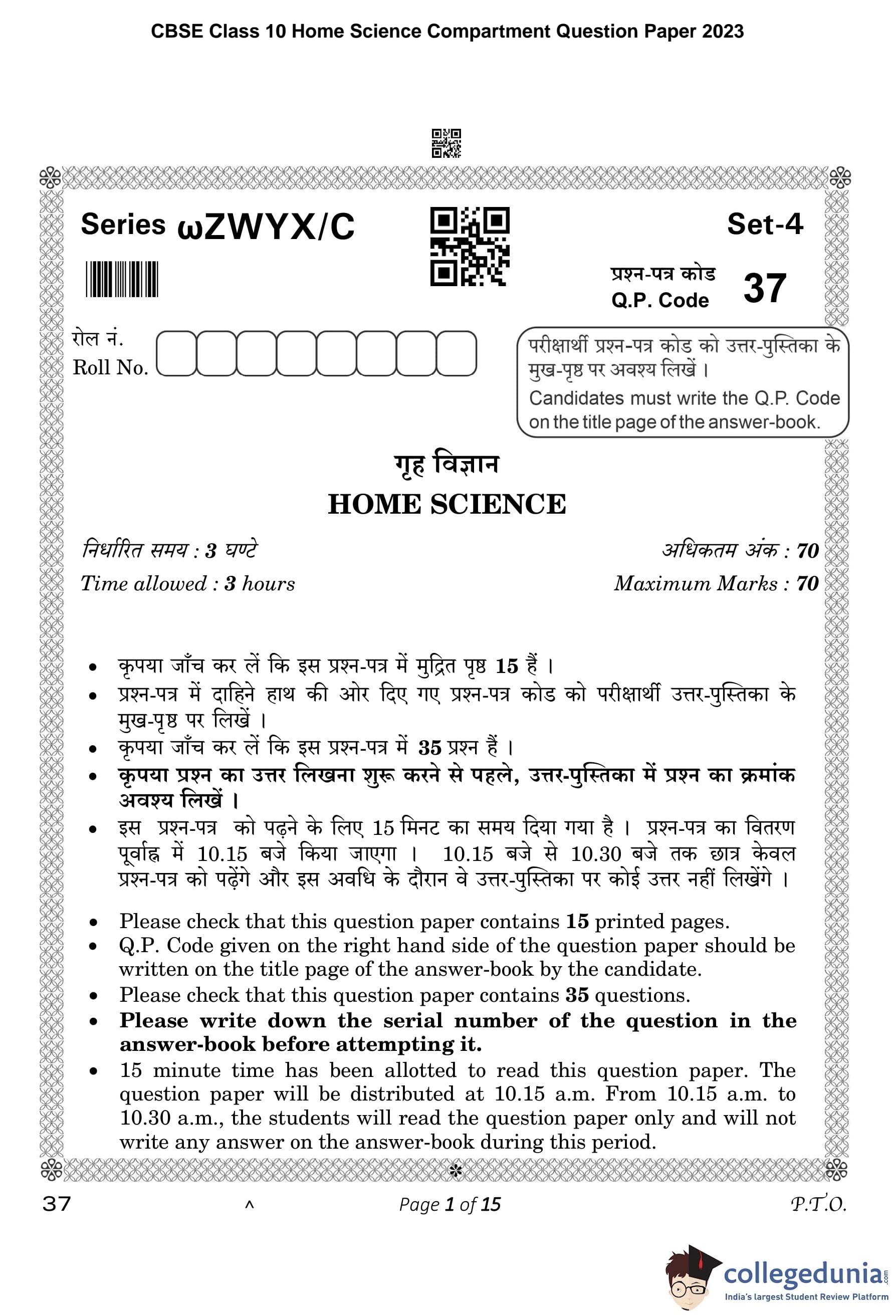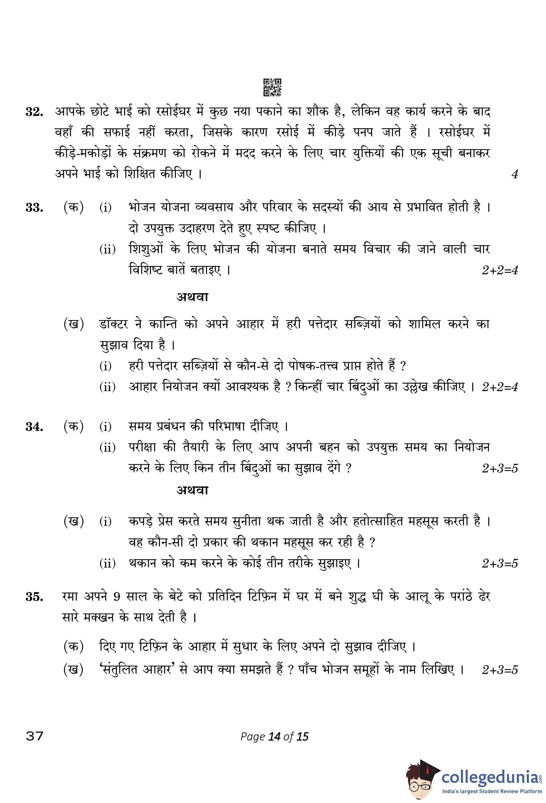 CBSE Class 10 Home Science Compartment Question Paper 2023 with Answer Key