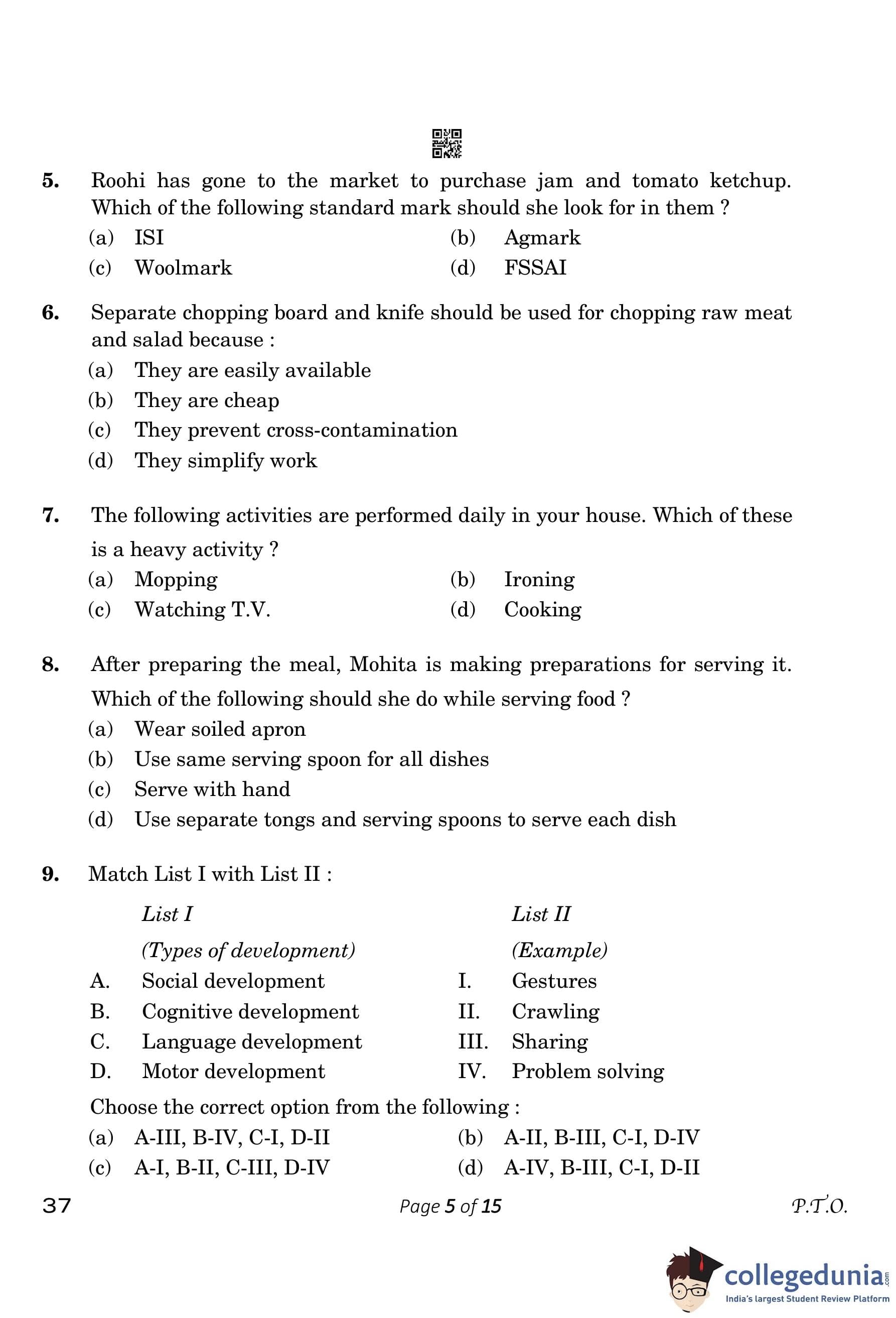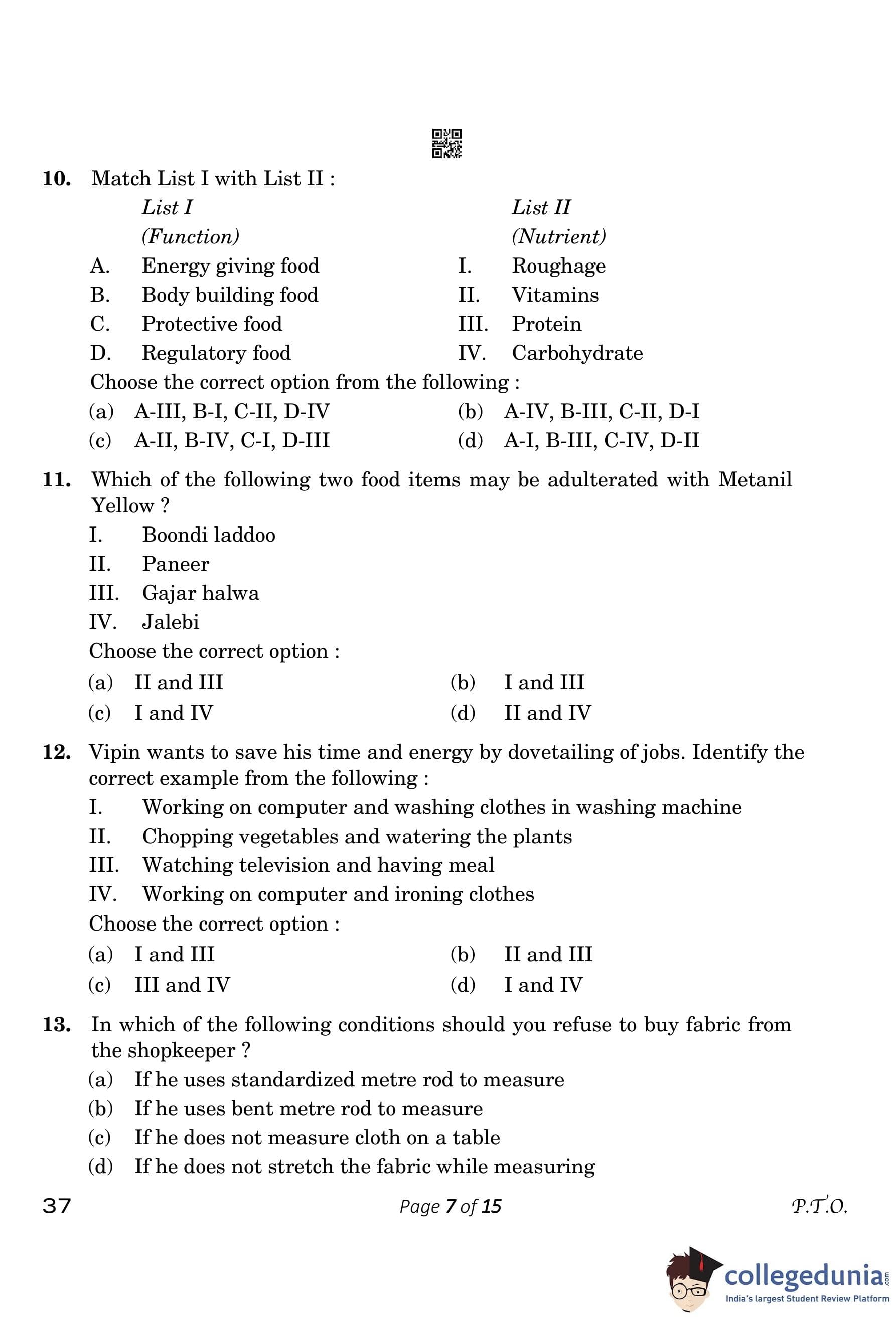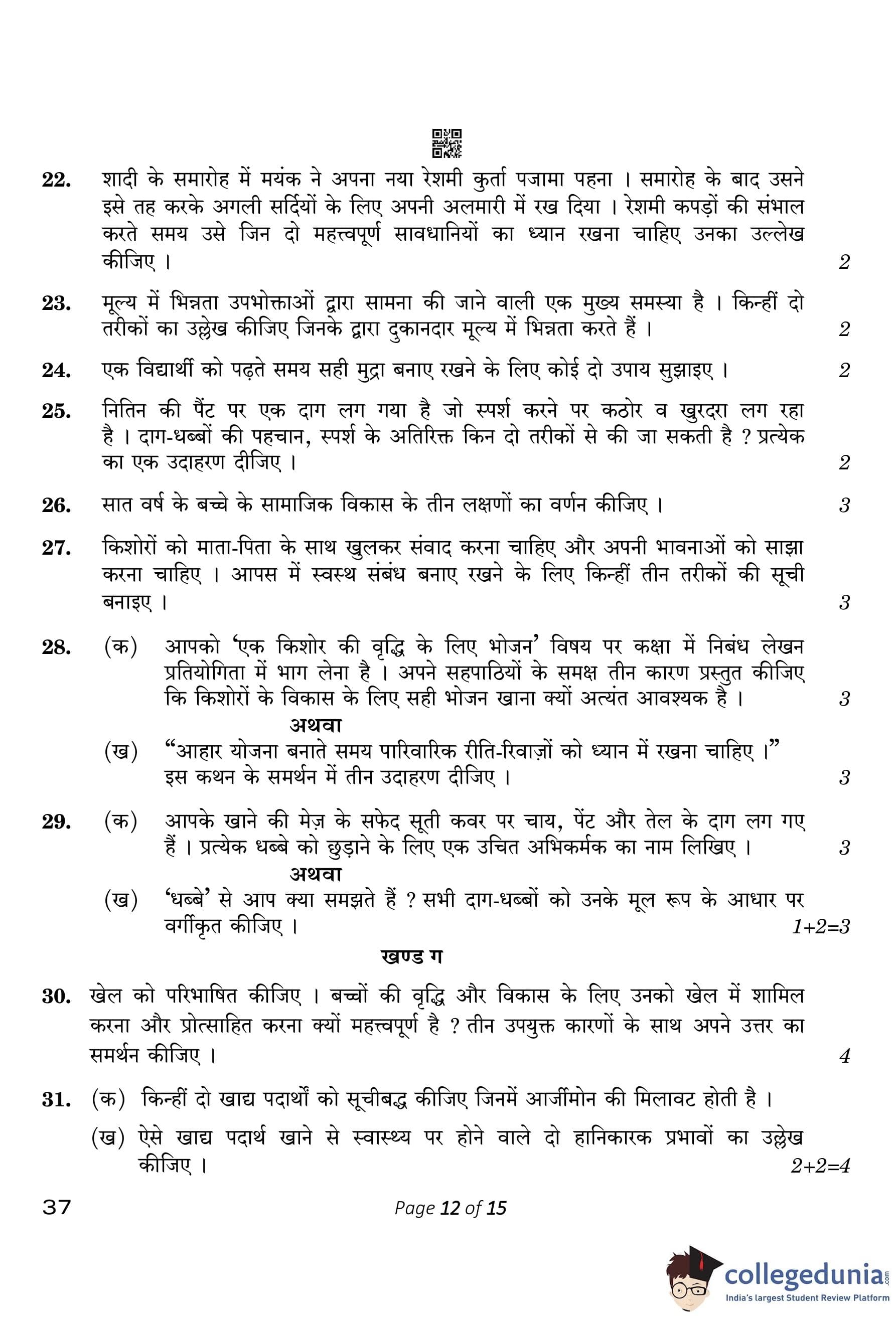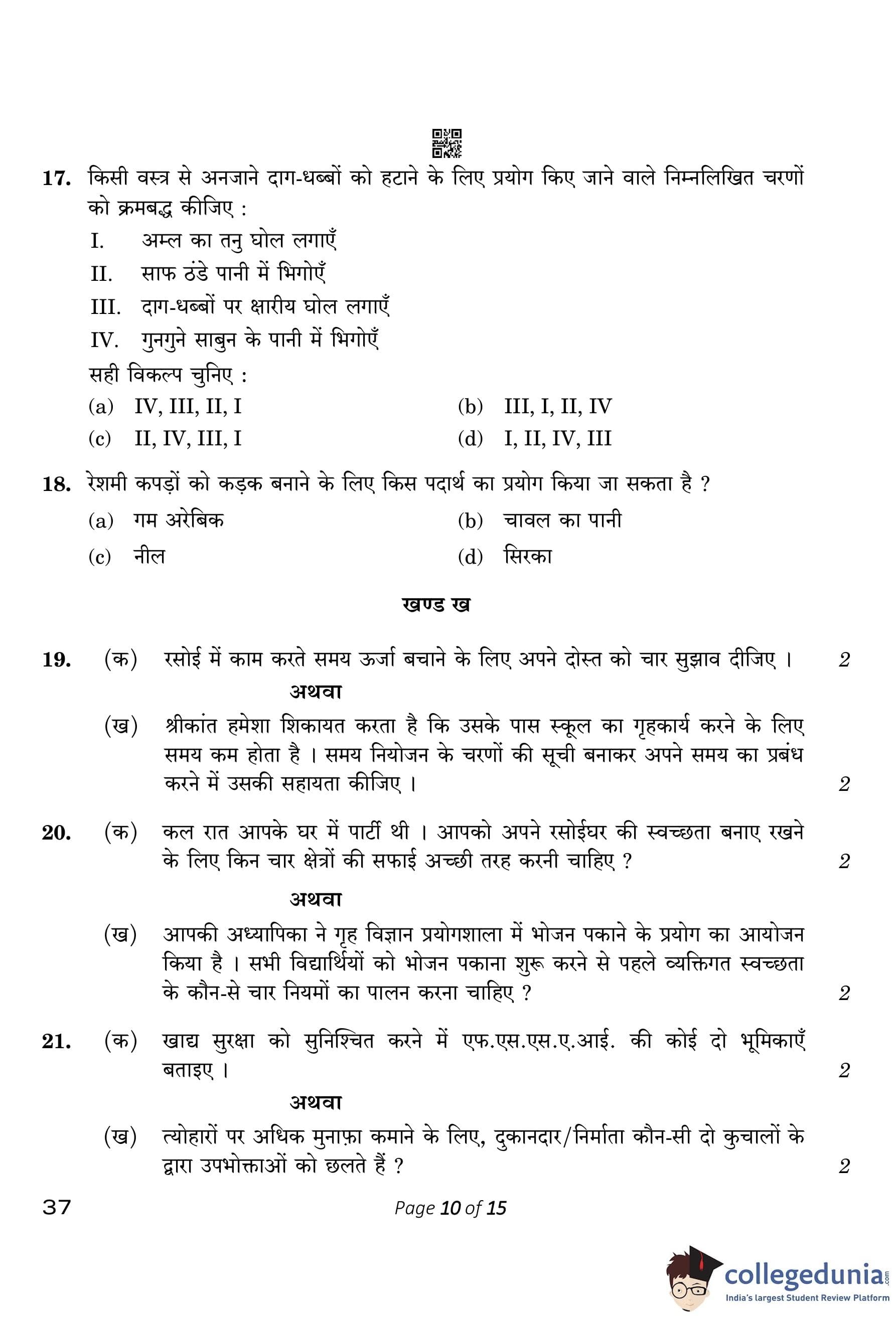 CBSE Class 10 Home Science Compartment Question Paper 2023 with Answer Key