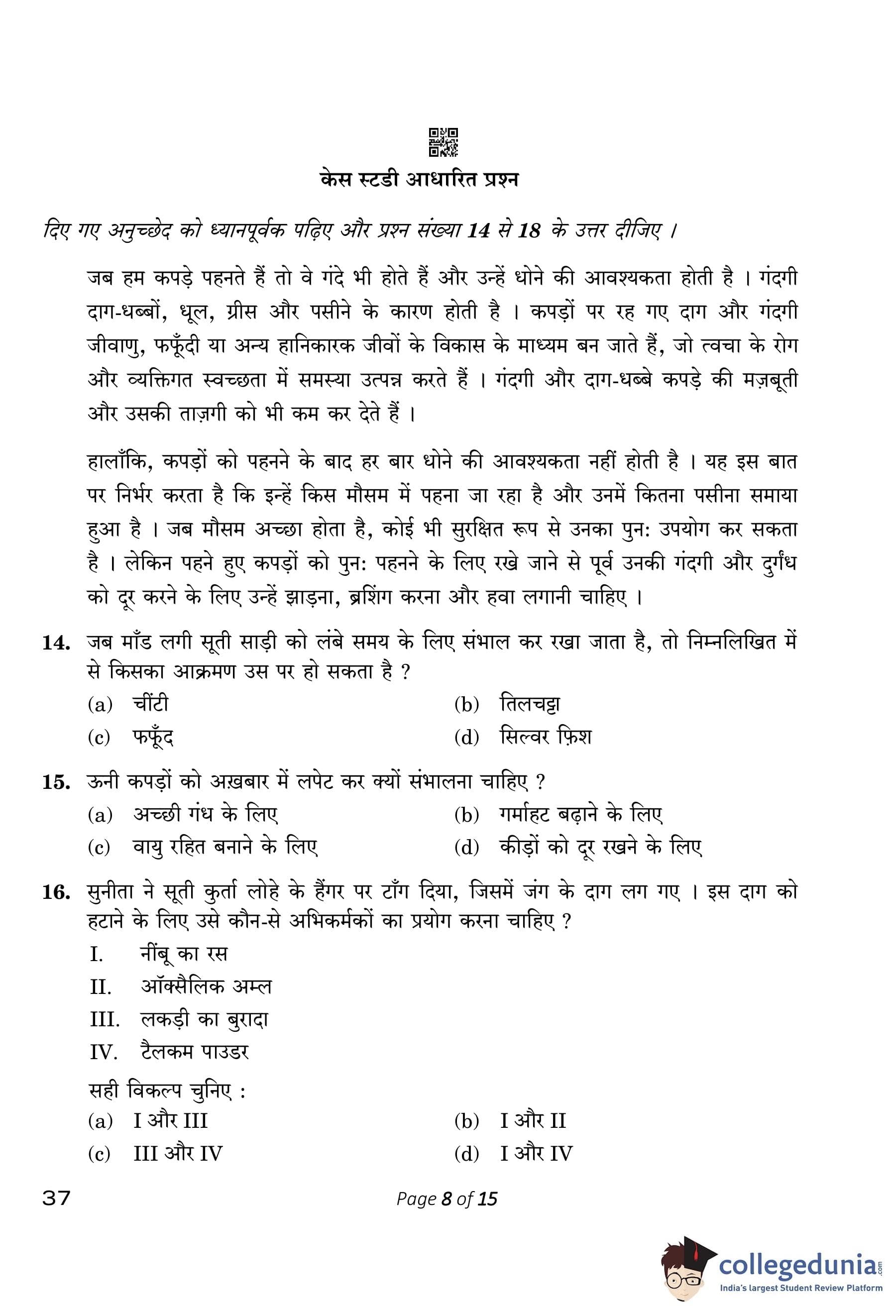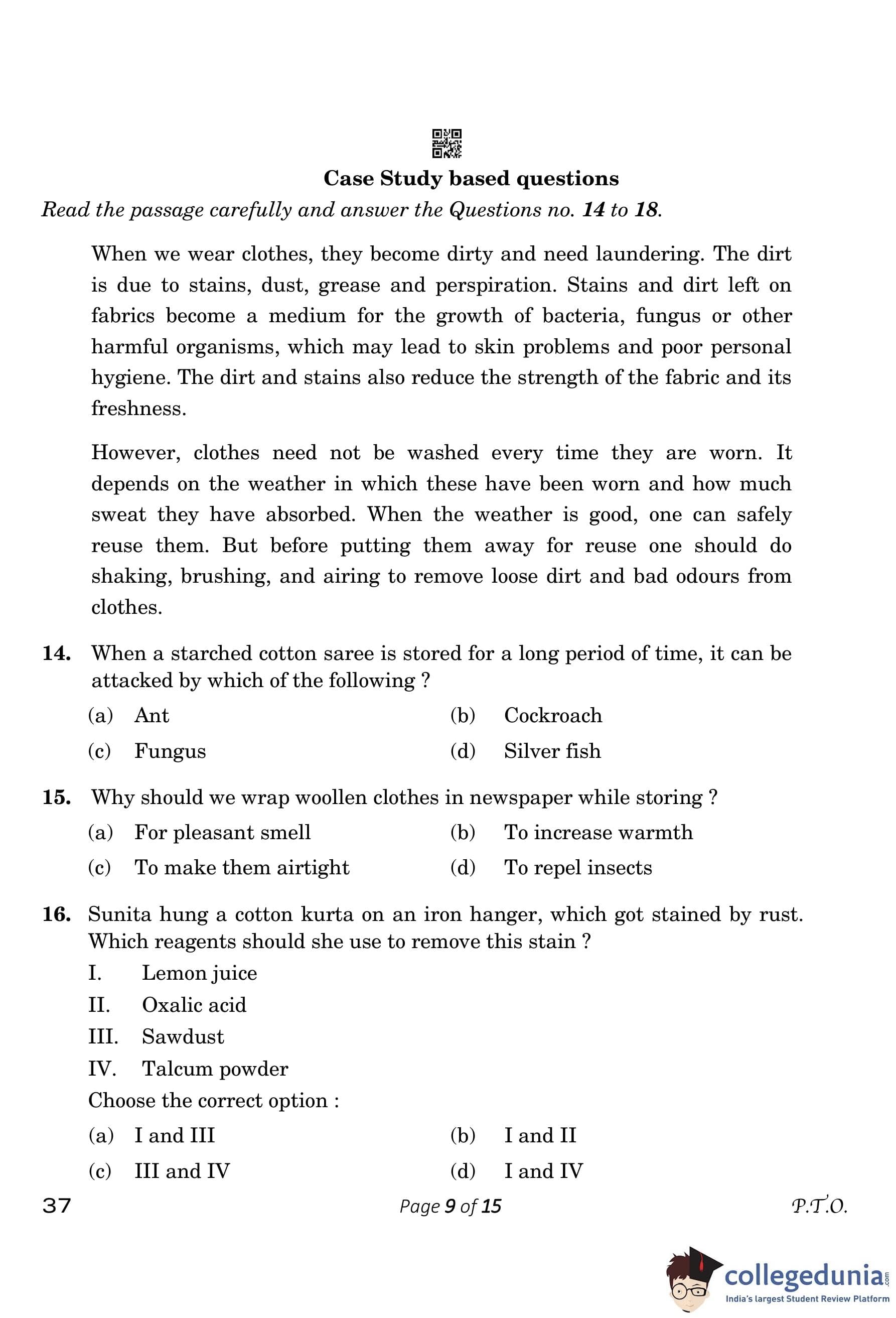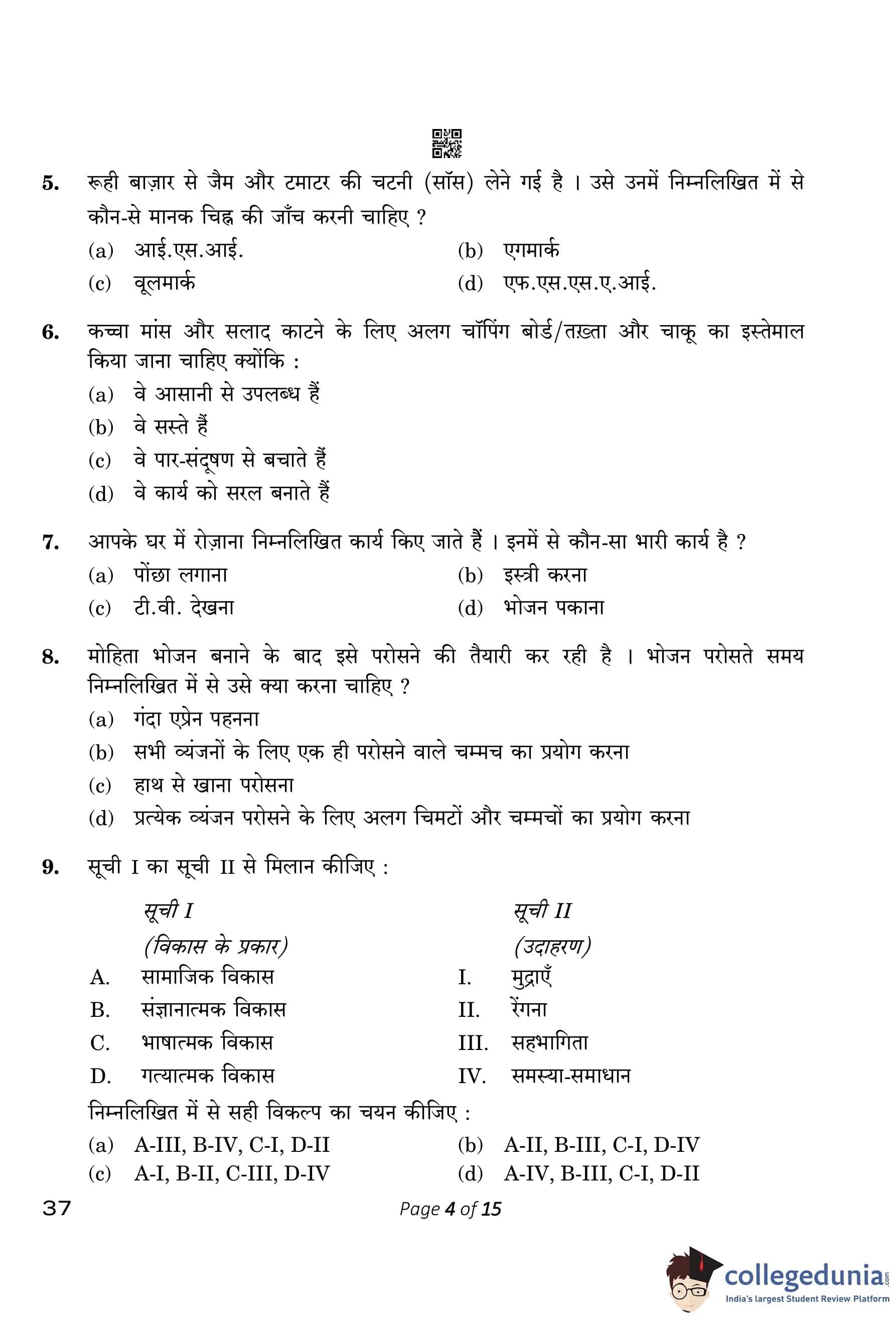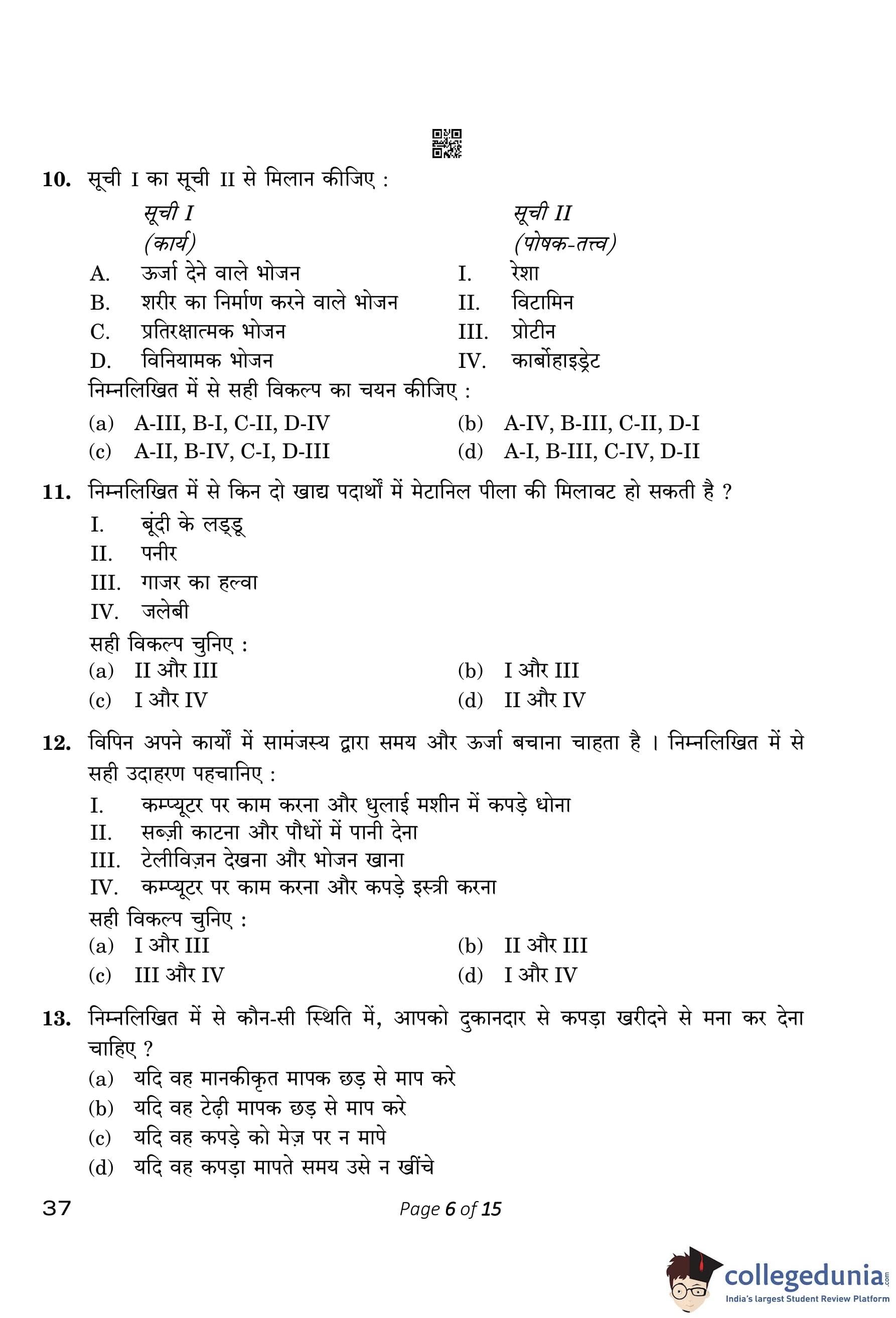 CBSE Class 10 Home Science Compartment Question Paper 2023 with Answer Key