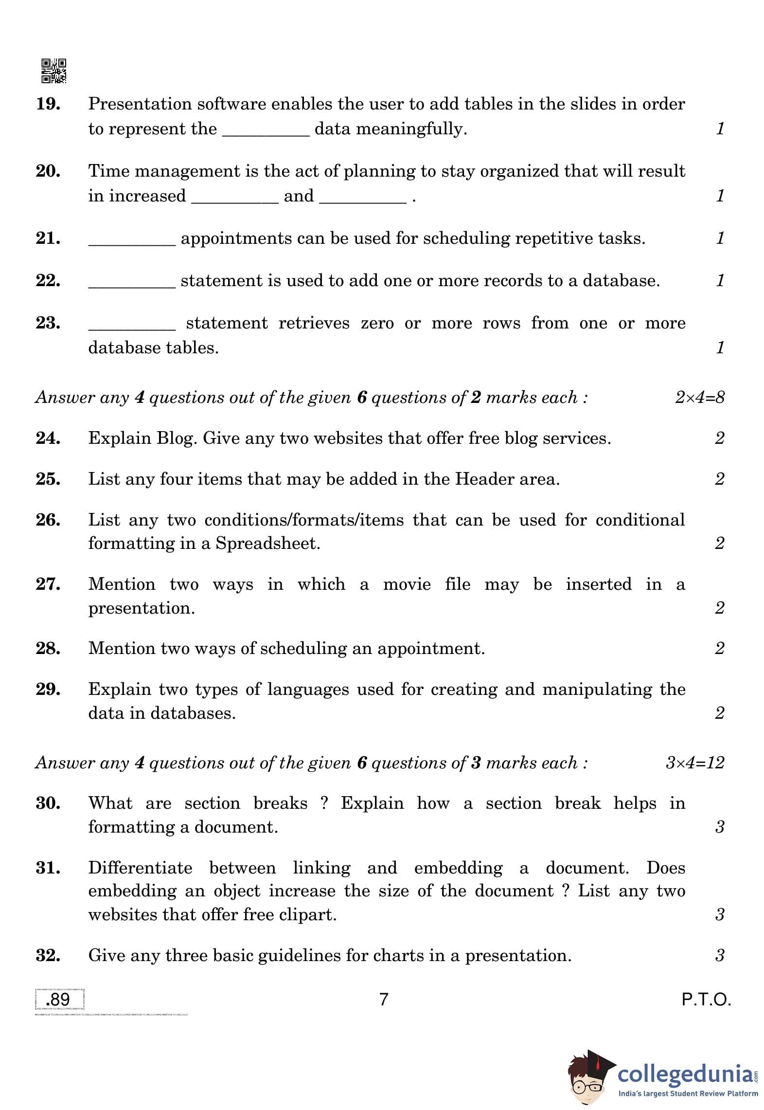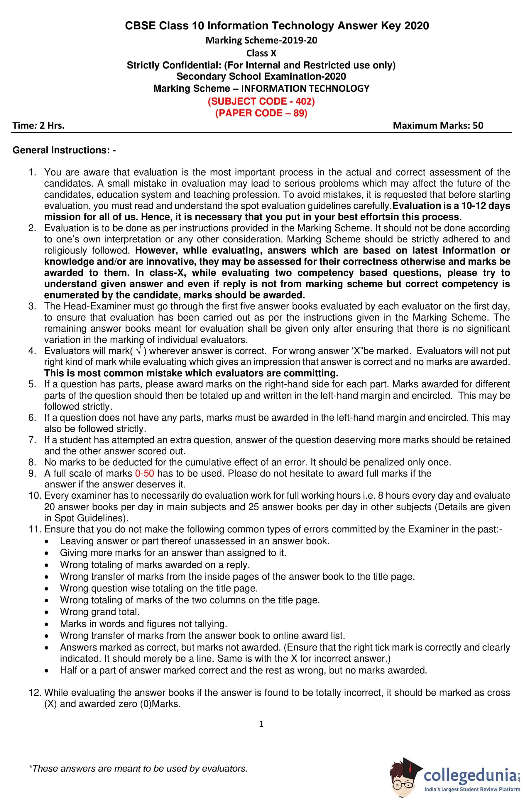 | CBSE Class 10 Information Technology Question Paper 2020 PDF | CBSE Class 10 Information Technology Answer Key 2020 PDF | Detailed Solutions |