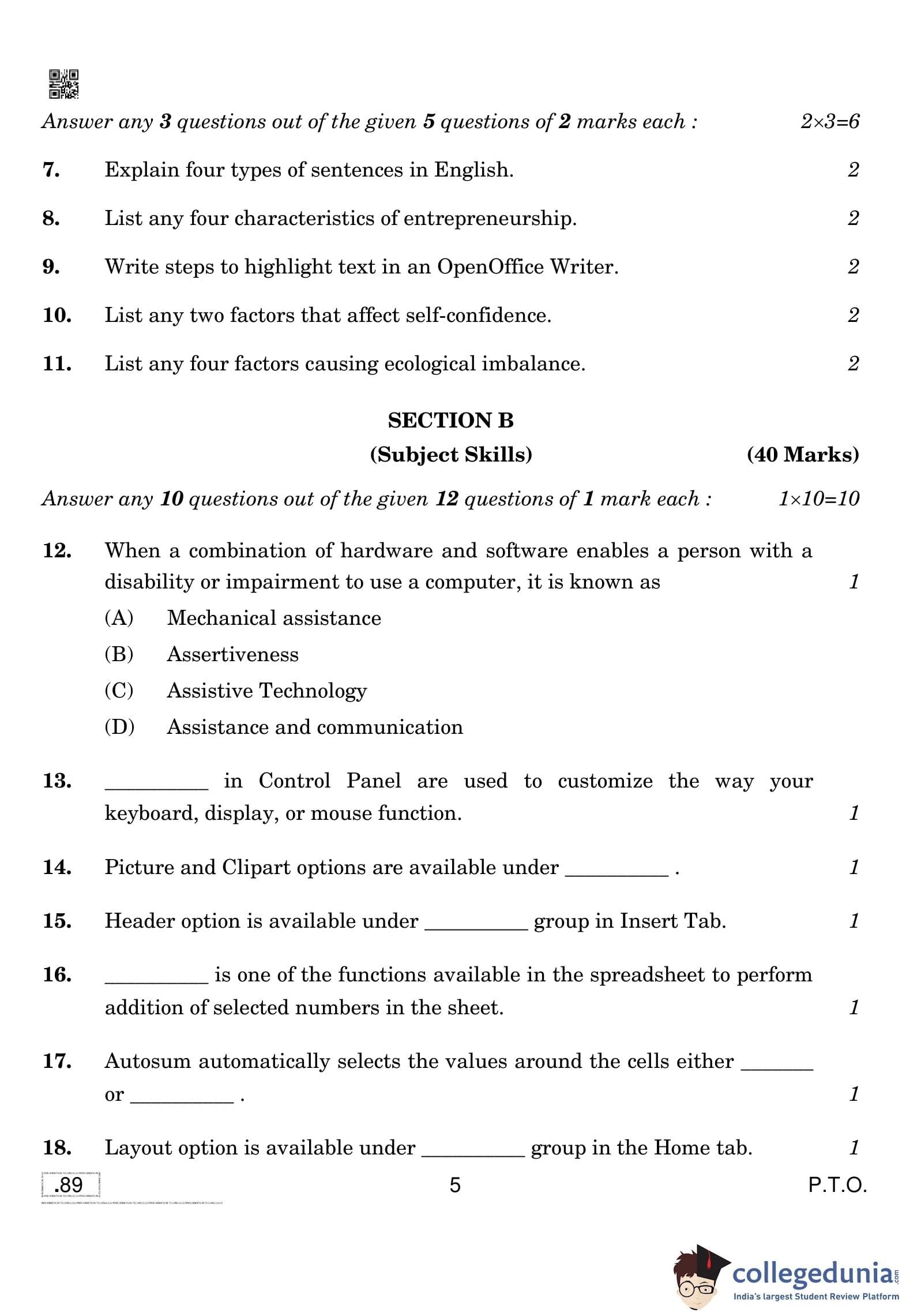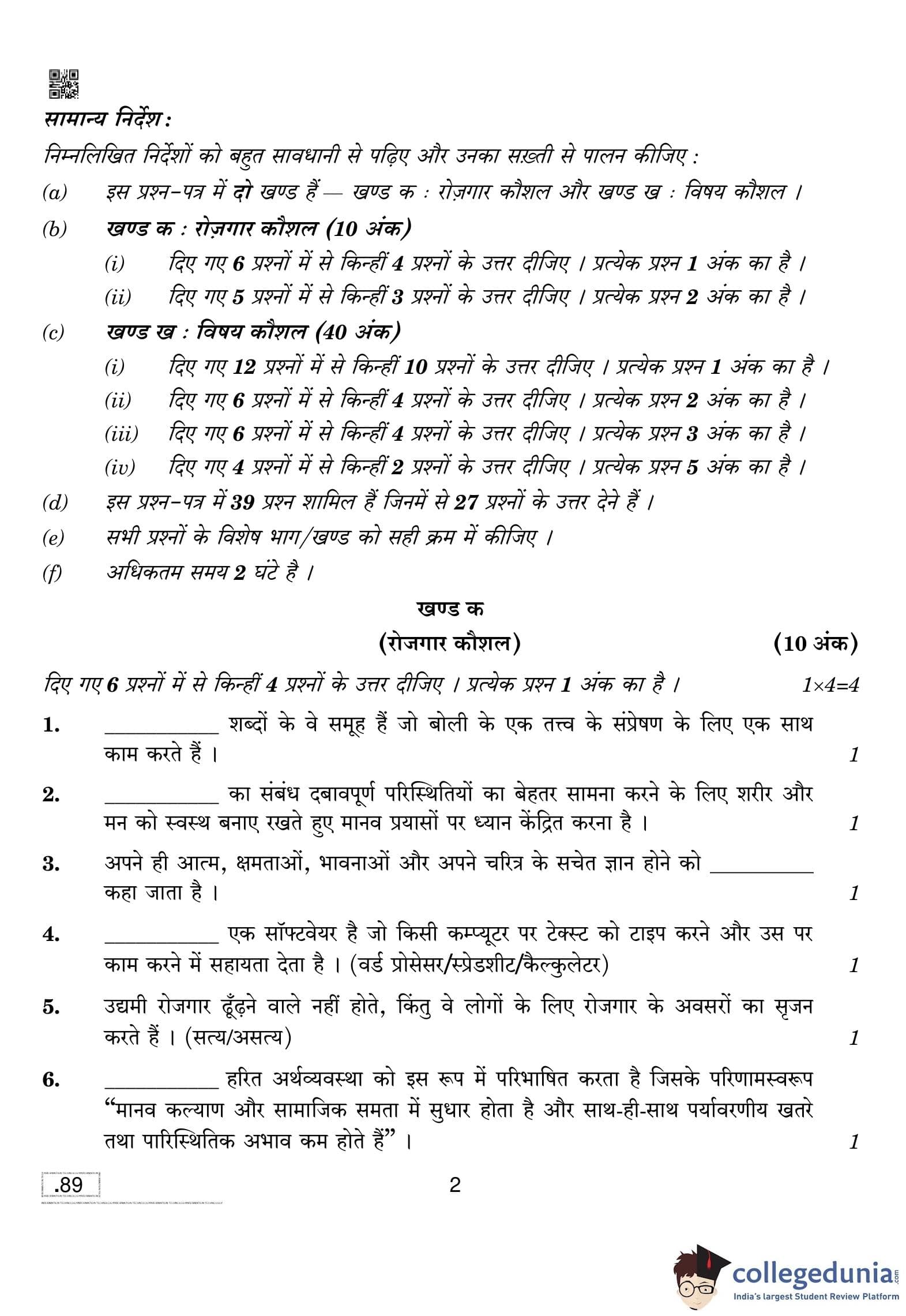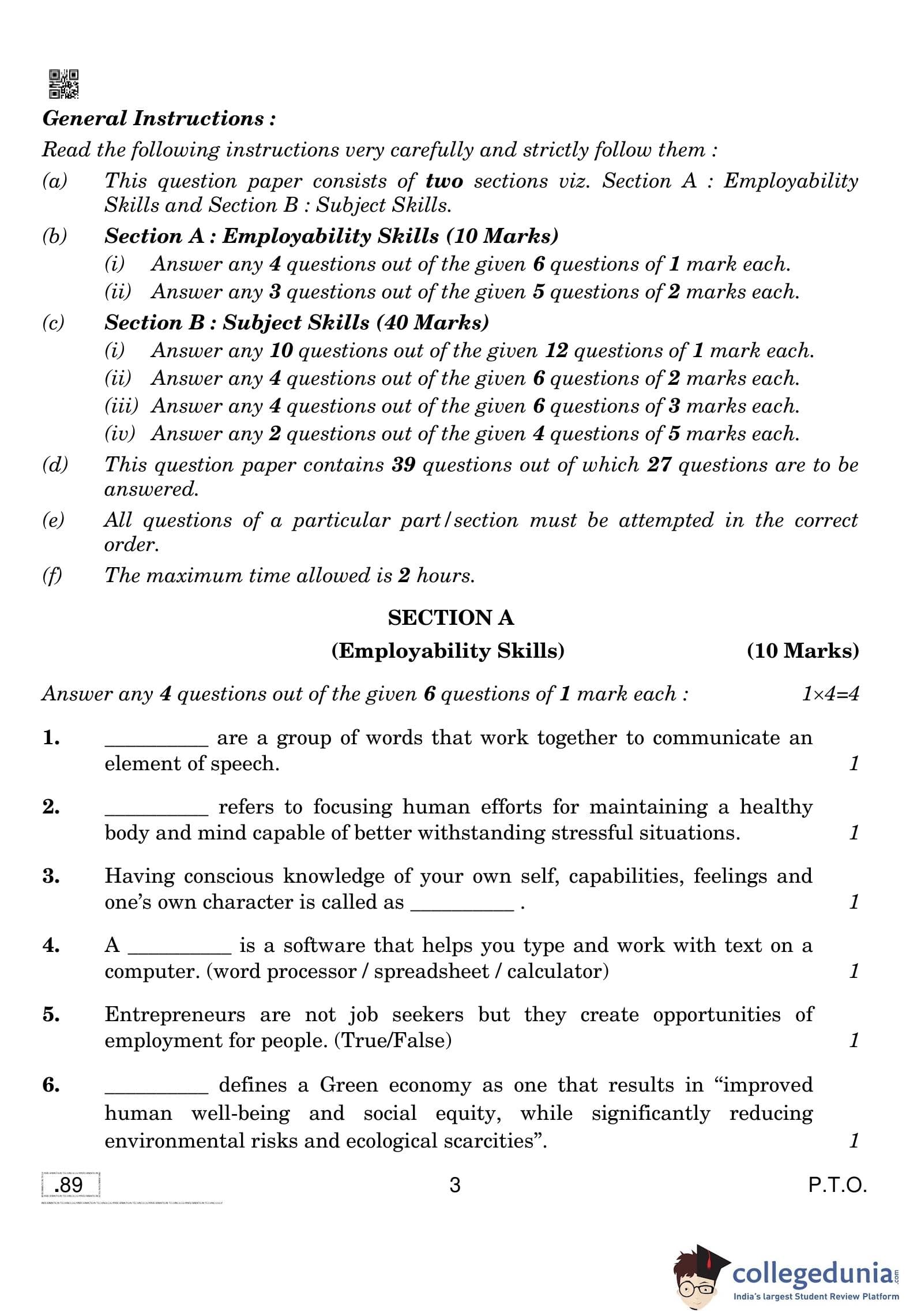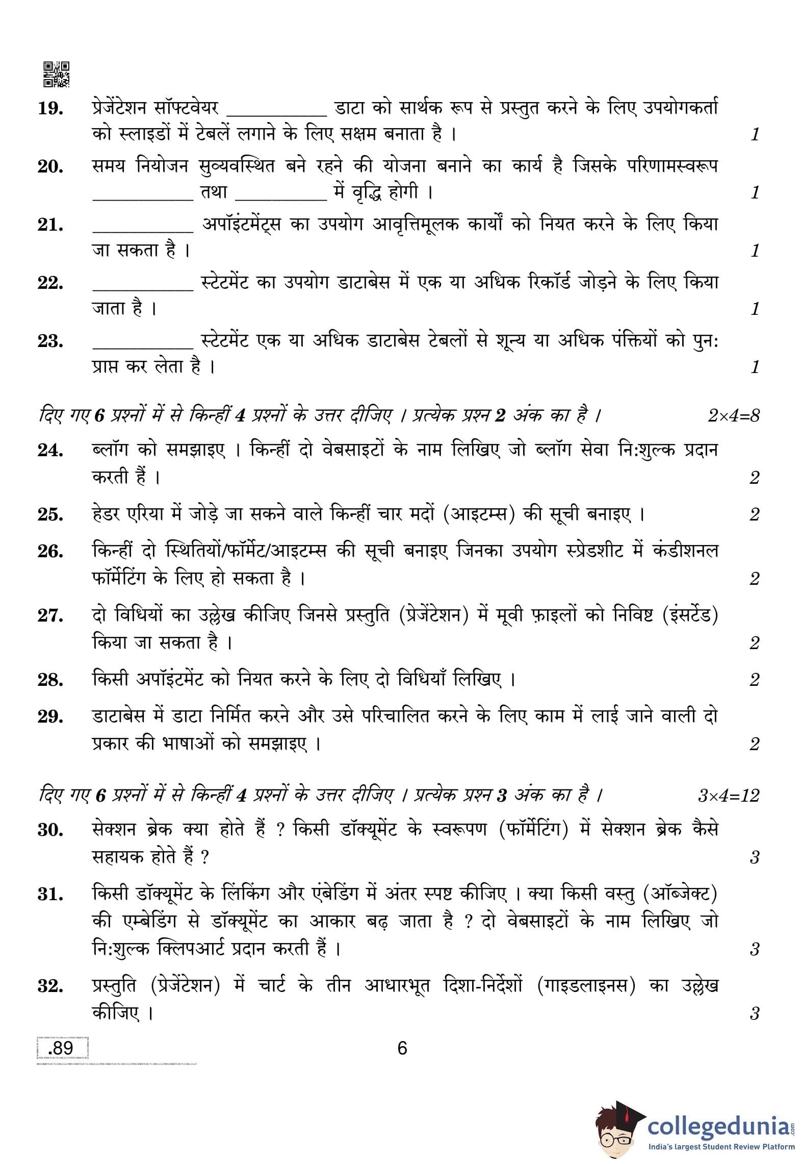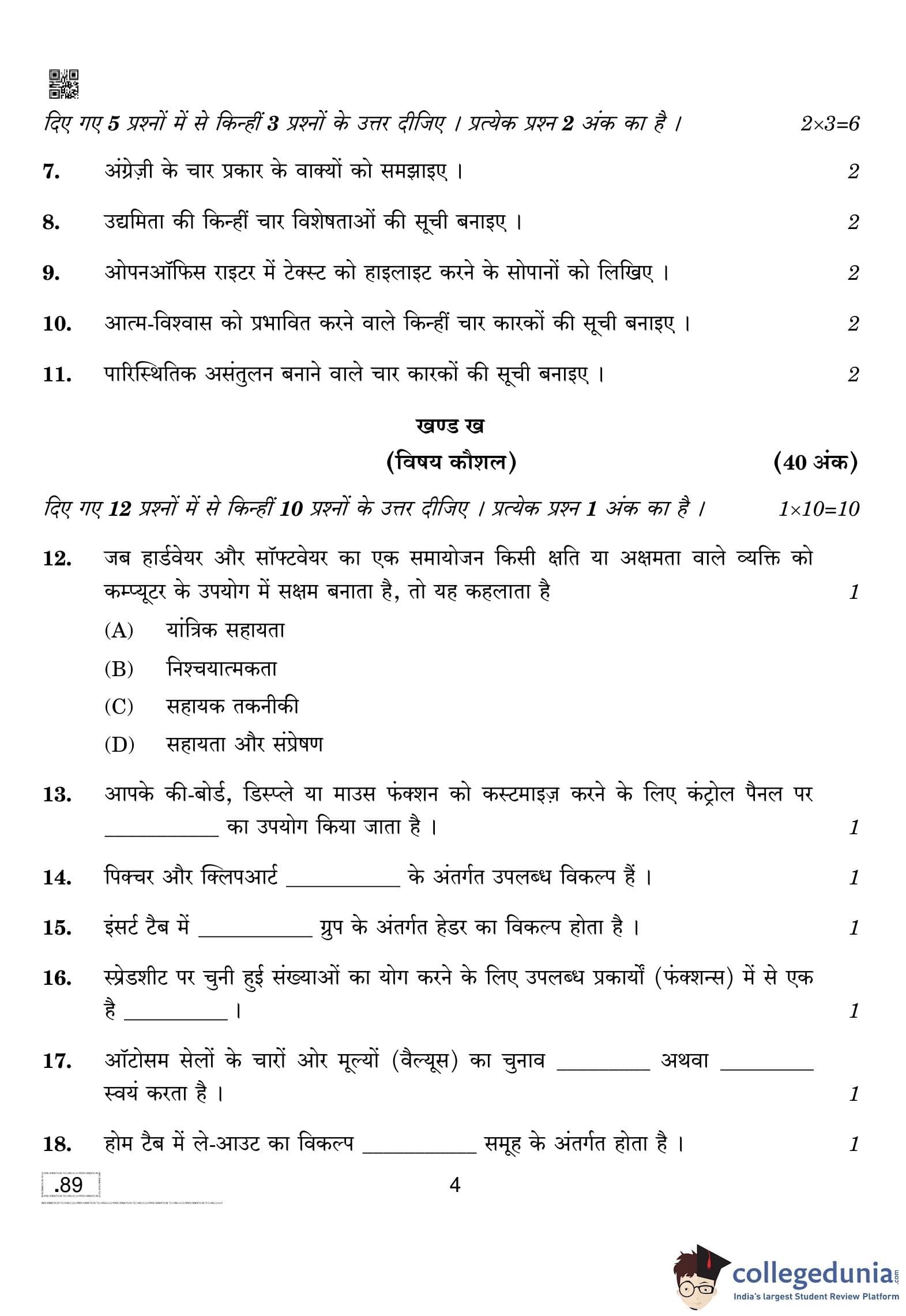 CBSE Class 10 Information Technology Question Paper 2020 with Answer Key Set 4 is available for download. The exam was conducted by the Central Board of Secondary Education on February 20, 2020 in the Morning Session 10:30 AM to 12:30 PM. The medium of paper was English and Hindi. The question paper comprised a total of 39 questions divided among 2 sections.