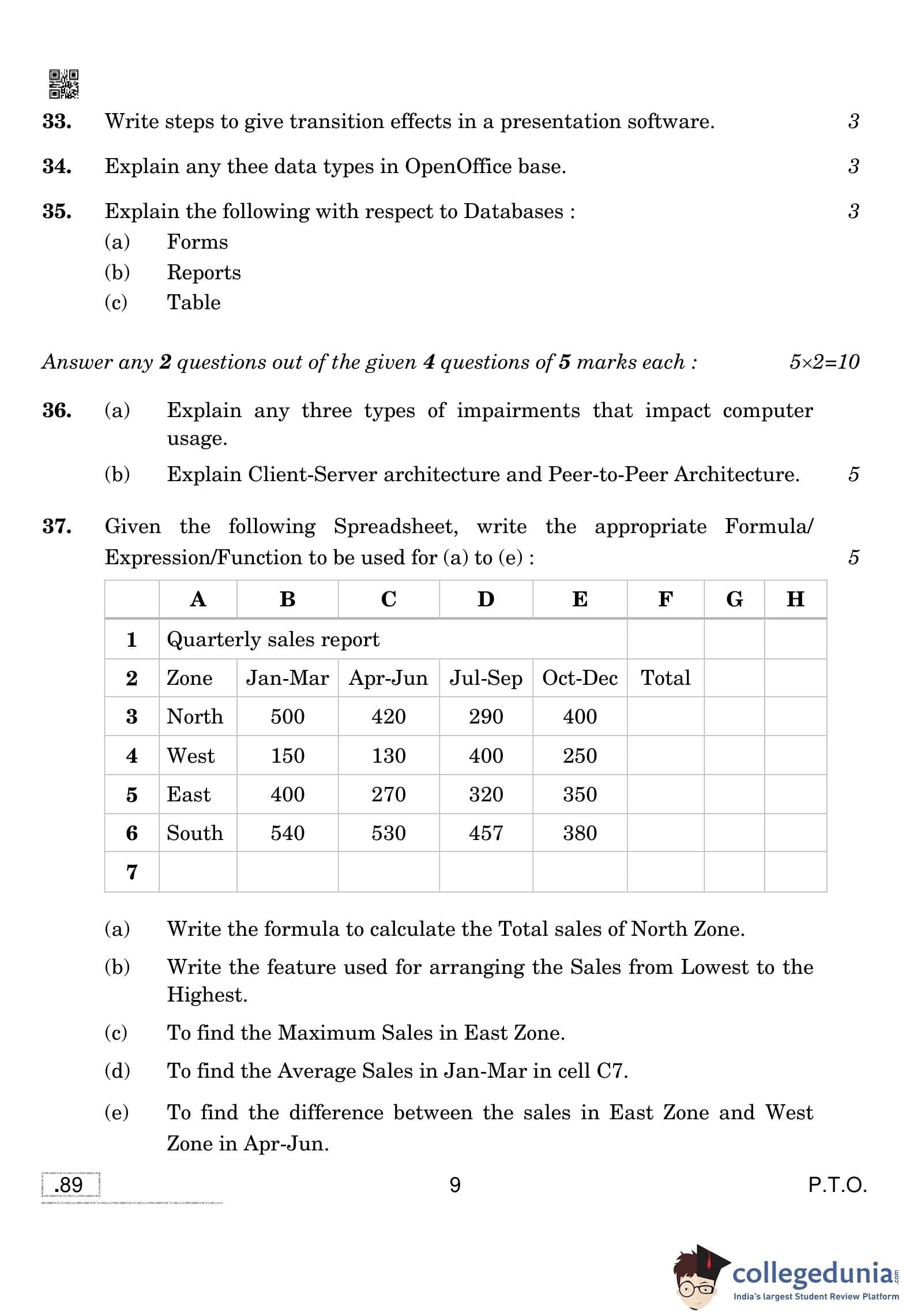 CBSE Class 10 Information Technology Question Paper 2020 with Answer Key (February 20)