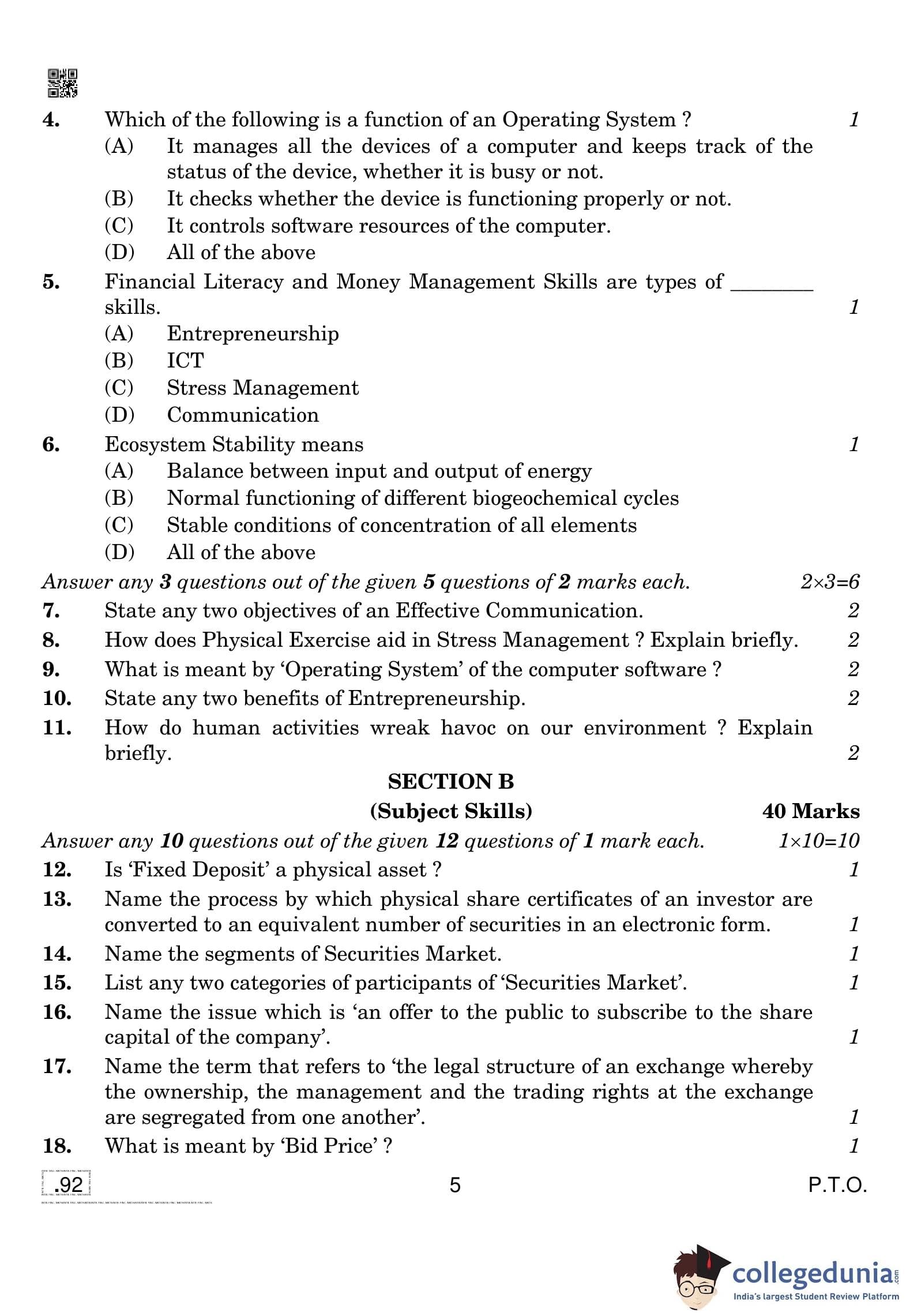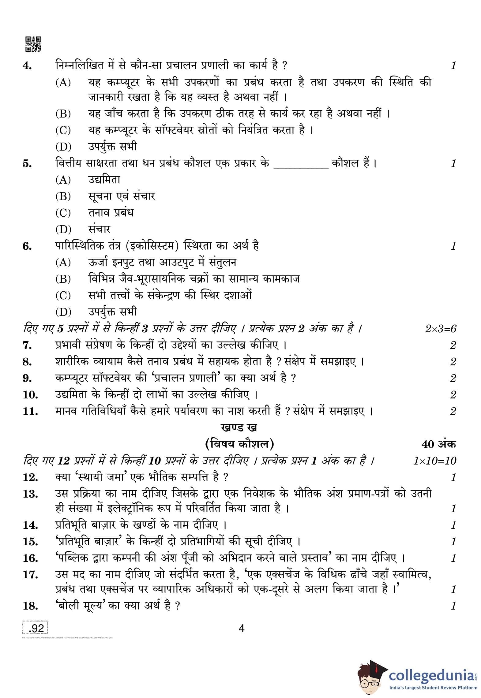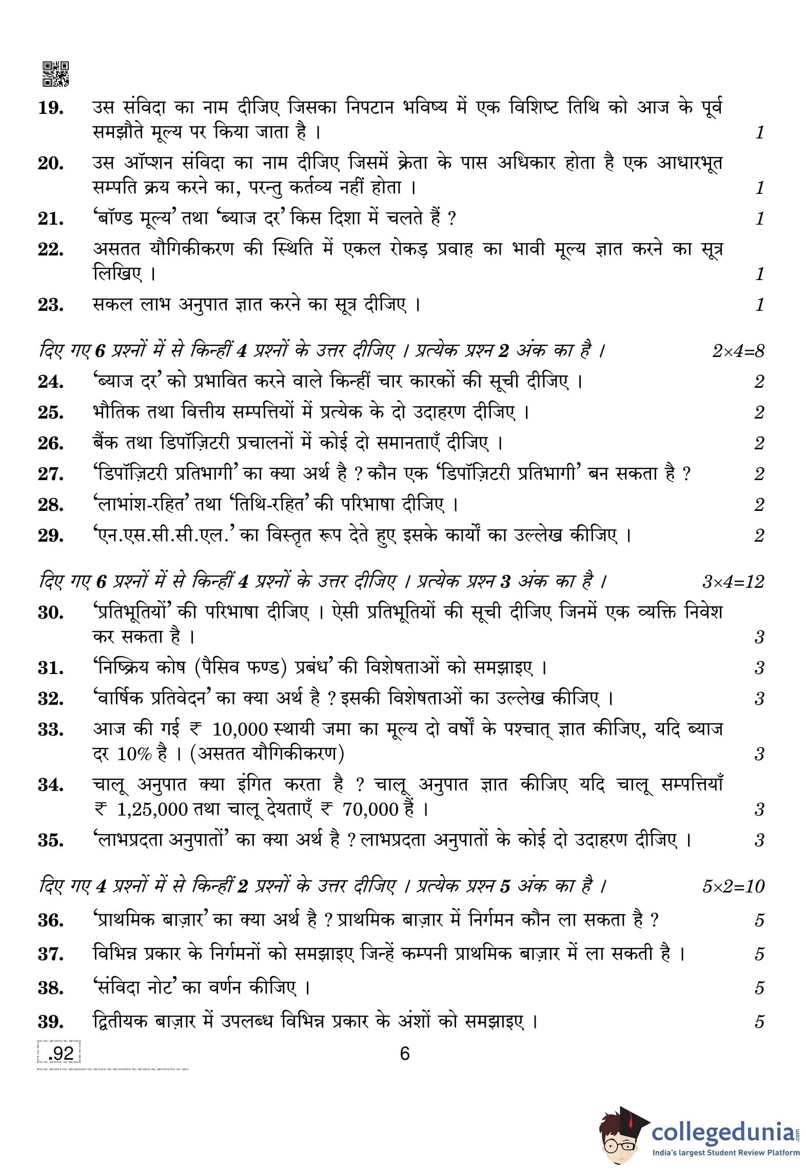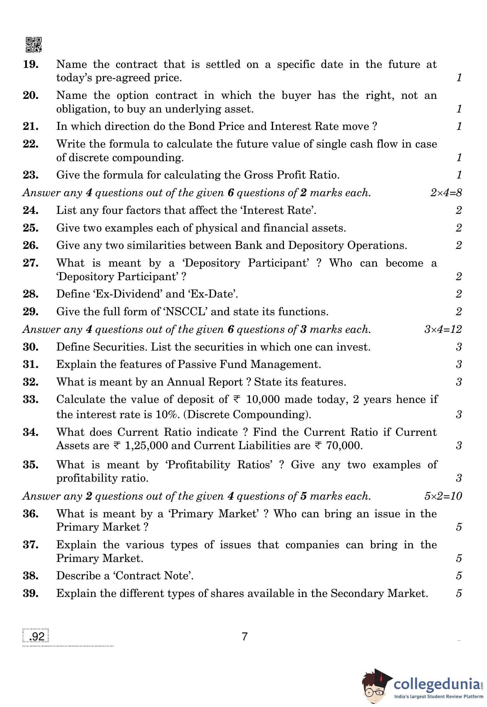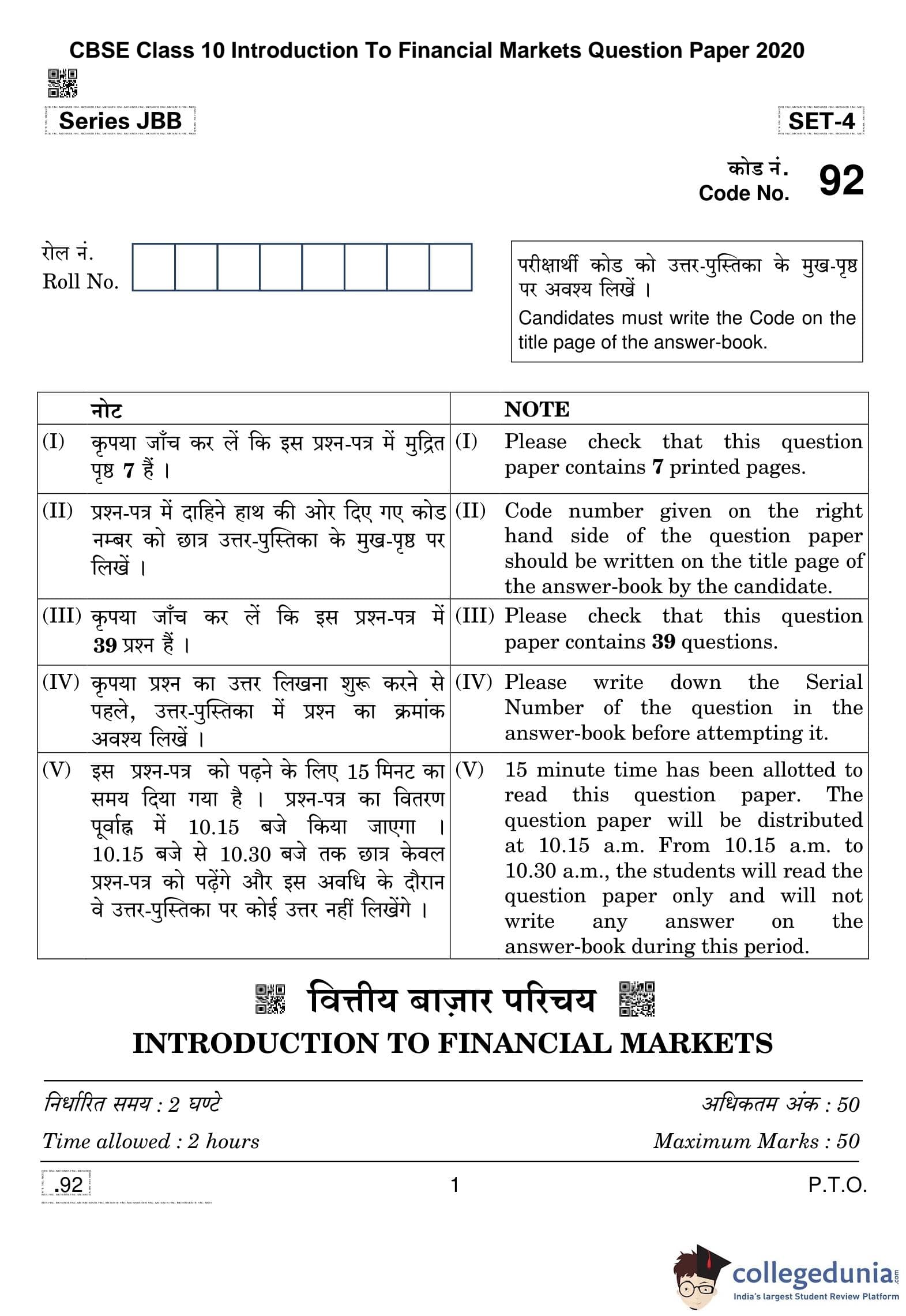 CBSE Class 10 Introduction To Financial Markets Question Paper 2020 with Answer Key (February 15)