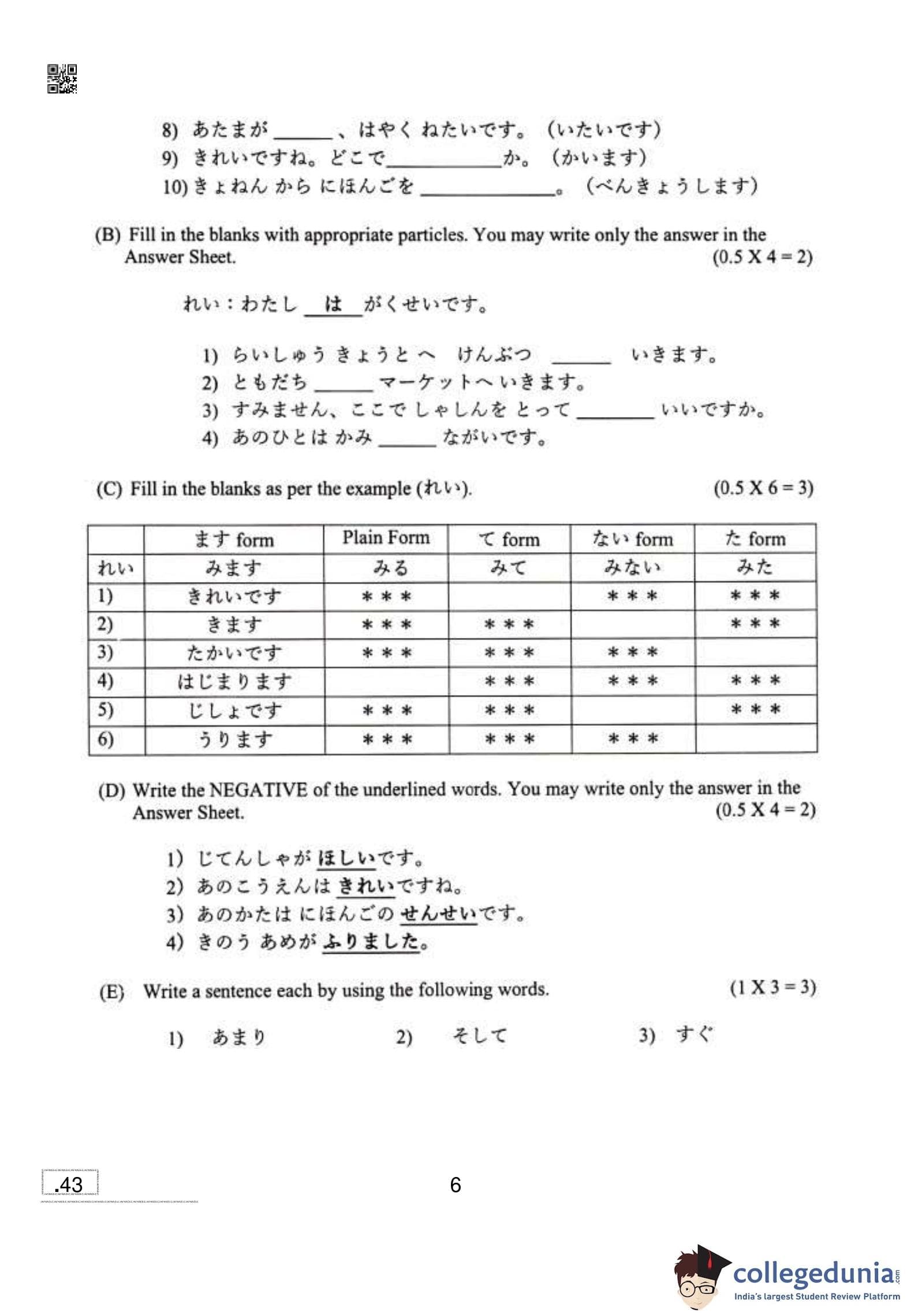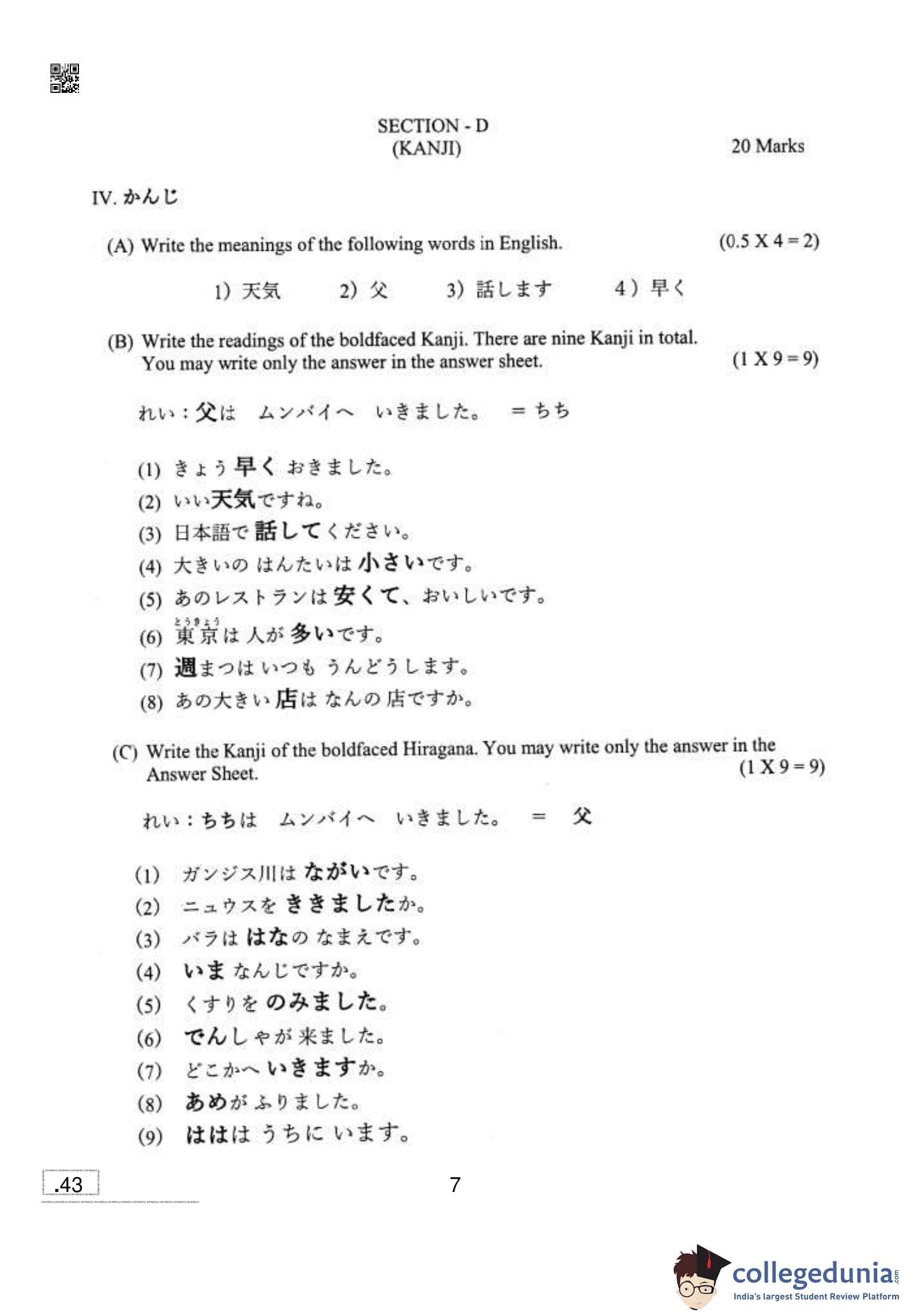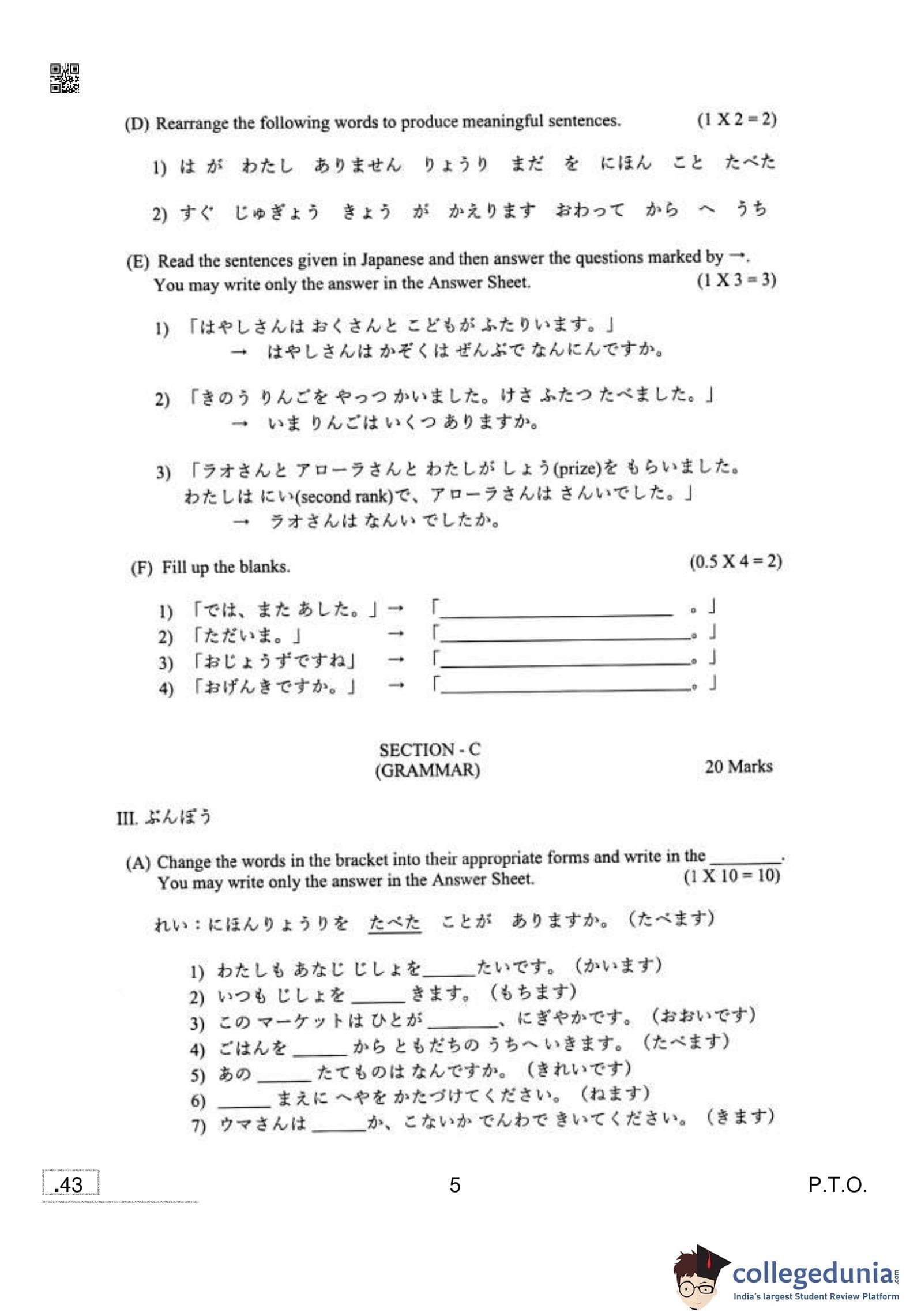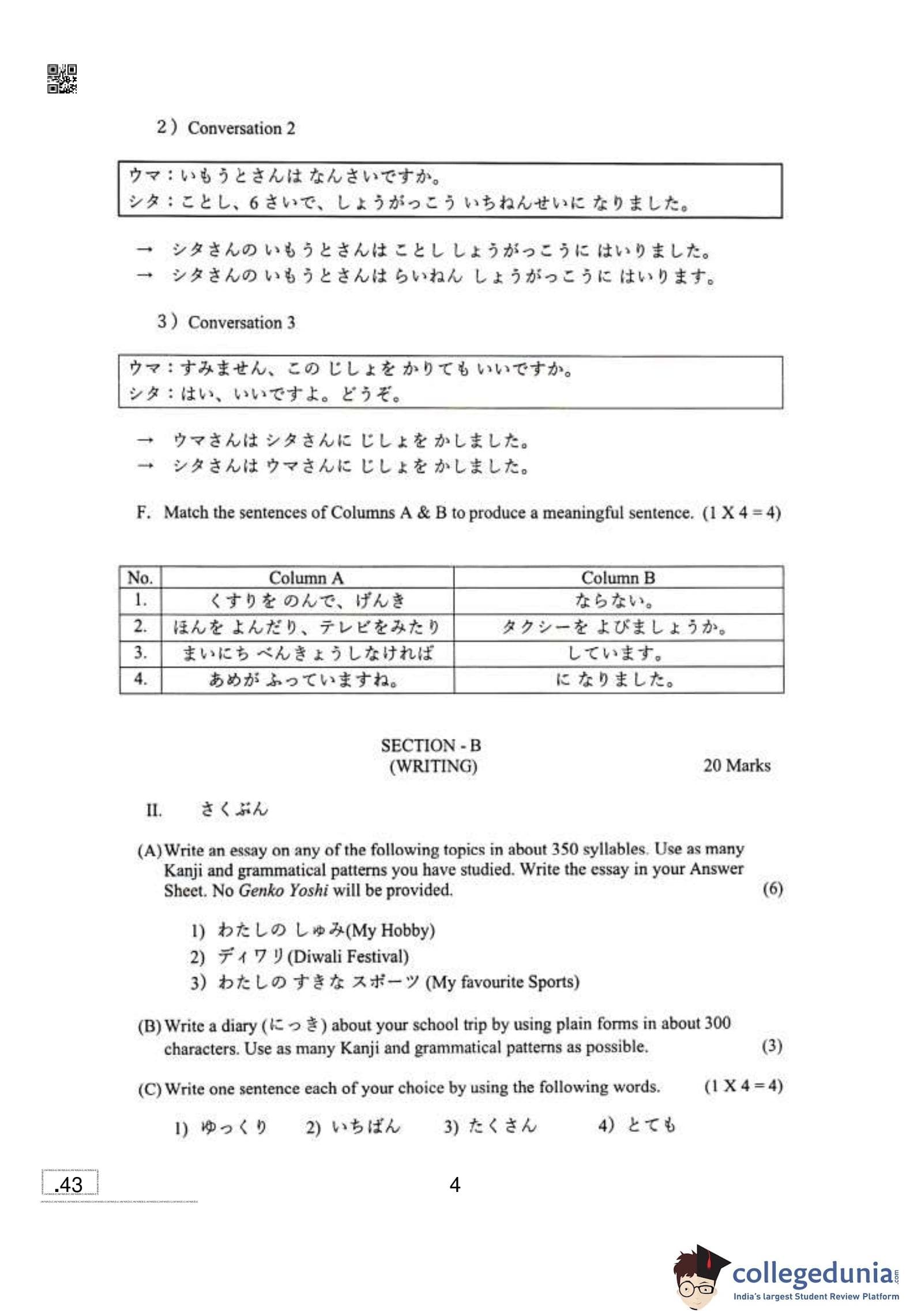 CBSE Class 10 Japanese Question Paper 2020 with Answer Key (February 22)