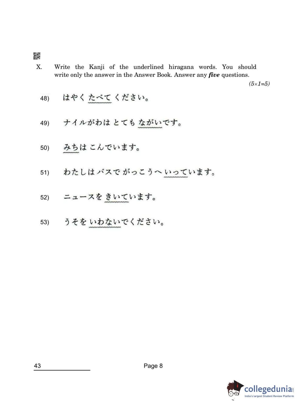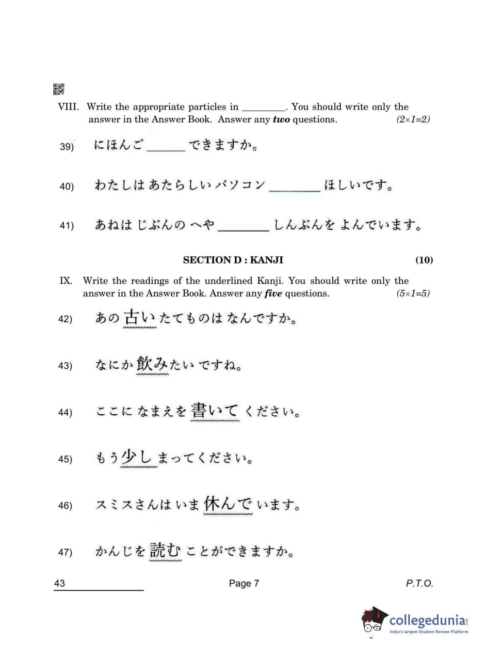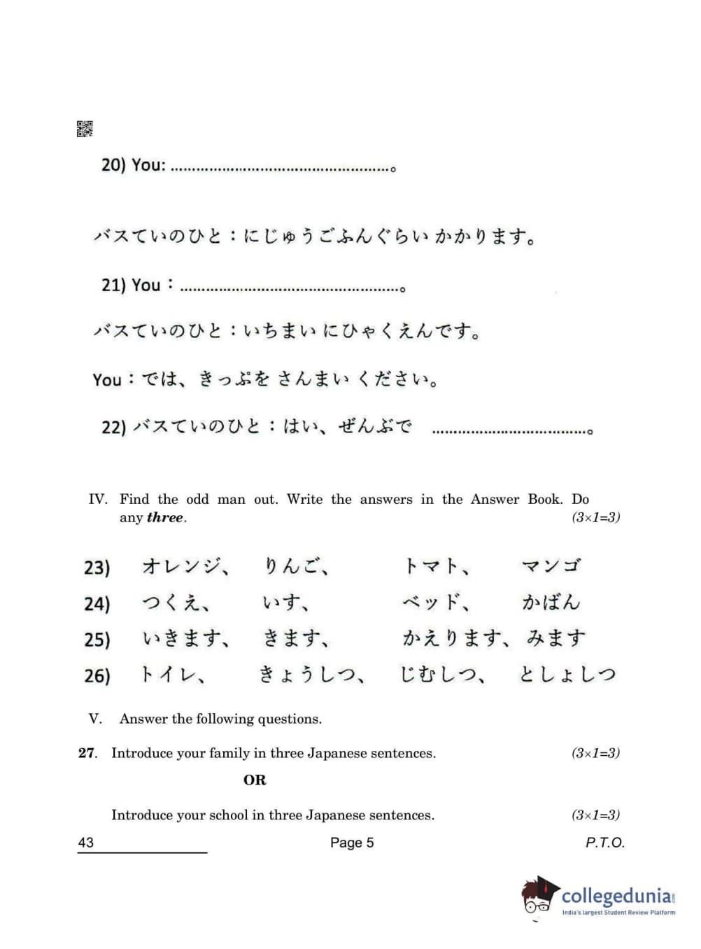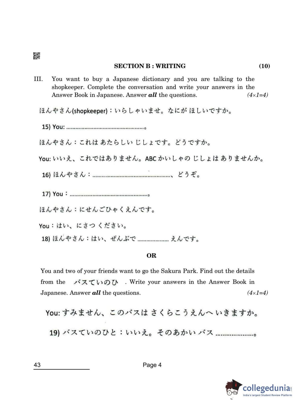 CBSE Class 10 Japanese Question Paper 2022 with Answer Key (May 17)