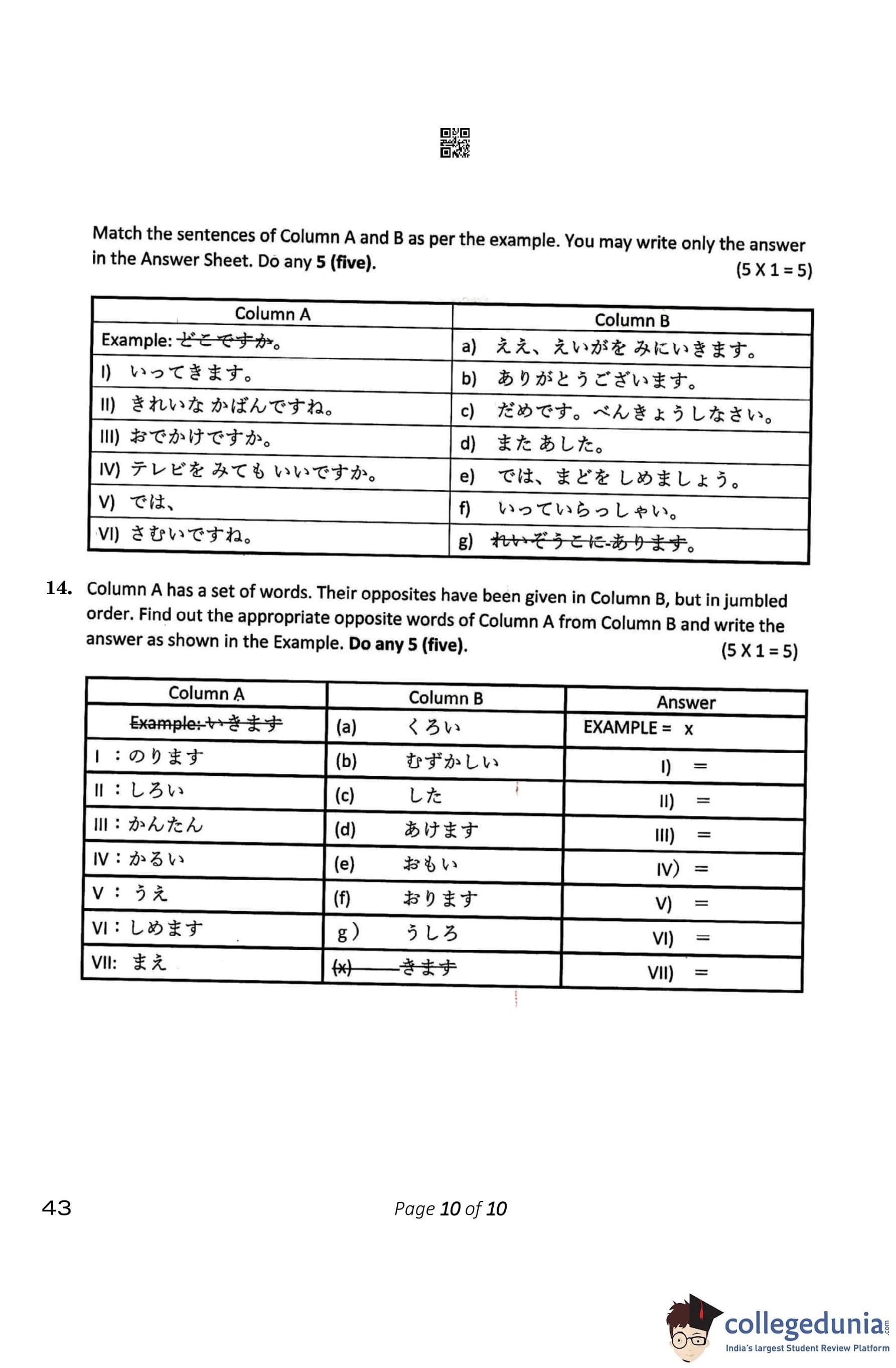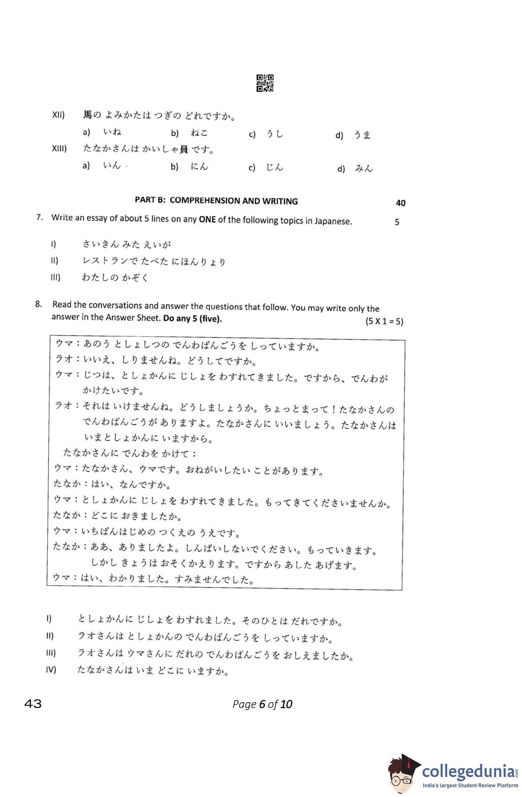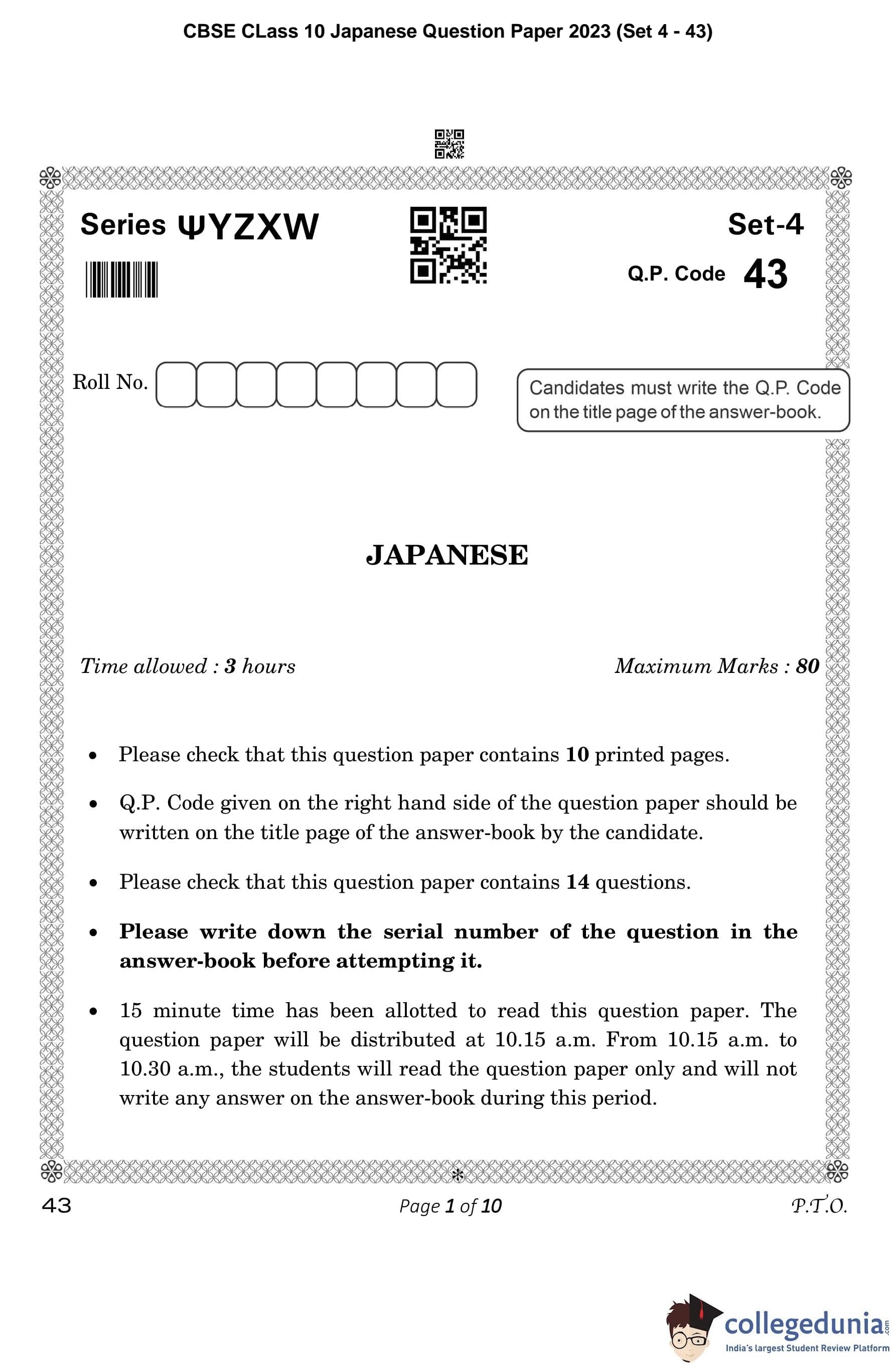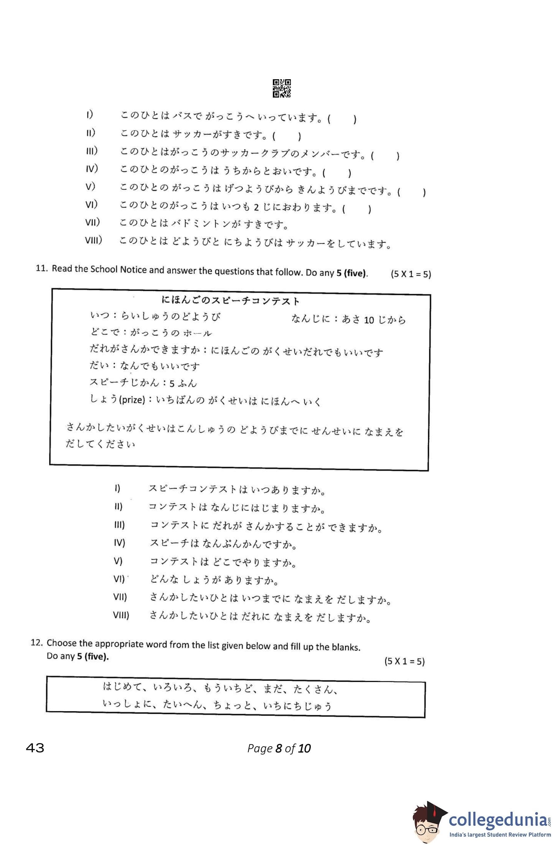CBSE Class 10 Japanese Question Paper 2023 with Answer Key