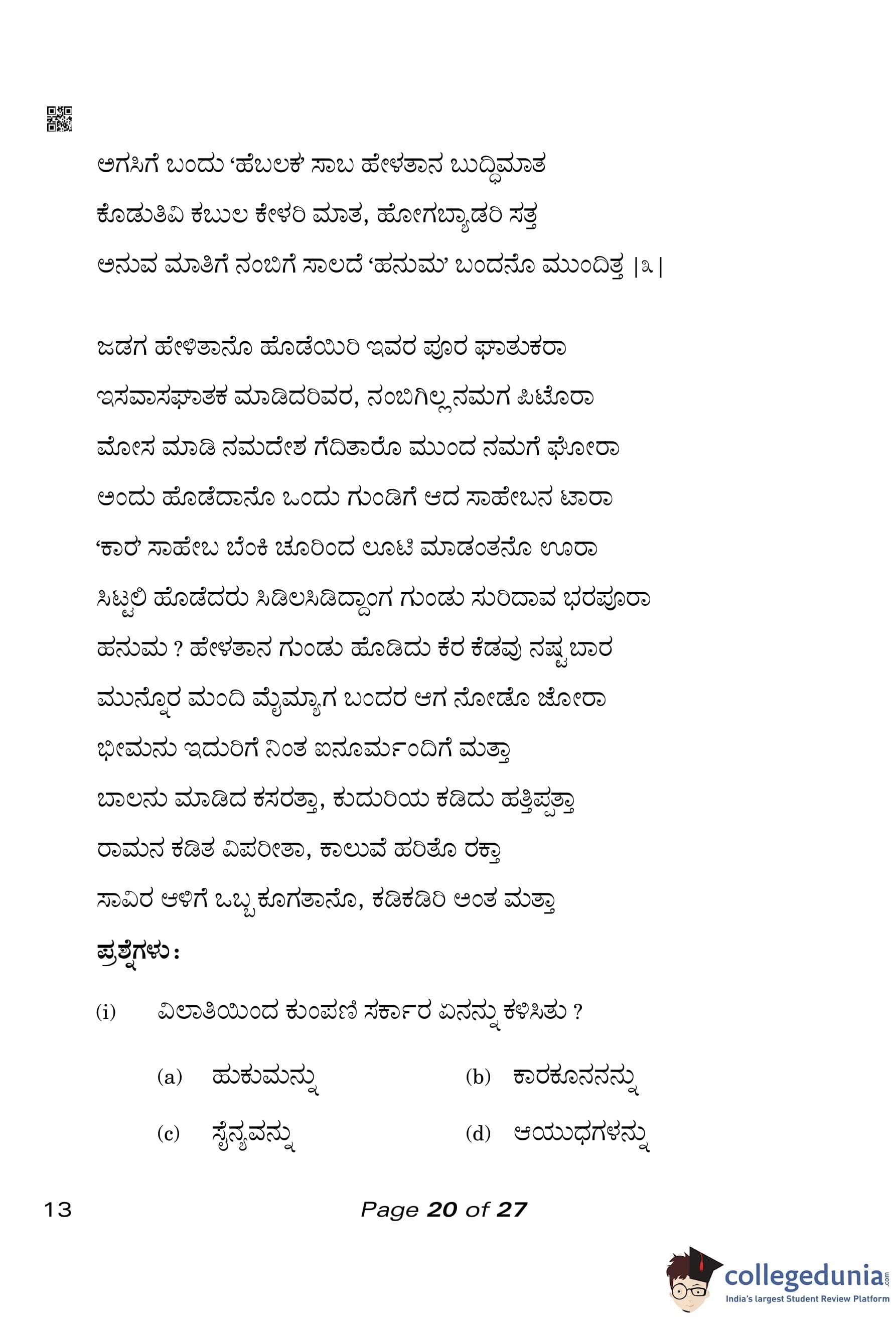 CBSE Class 10 Kannada Compartment Question Paper 2023 with Answer Key pdf is available for download here. The exam was conducted by Central Board of Secondary Education on July 21, 2023 in the Morning Session 10:30 AM to 1:30 PM. The question paper comprised a total of 17 questions divided among 4 sections.