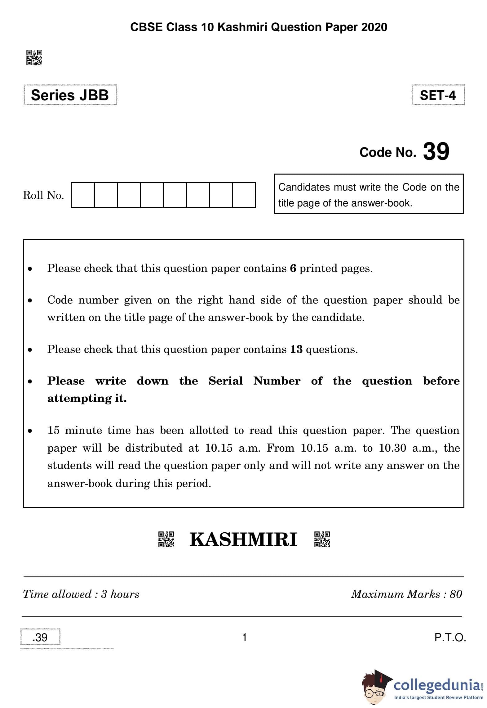 | CBSE Class 10 Kashmiri Question Paper 2020 PDF | CBSE Class 10 Kashmiri Answer Key 2020 PDF |